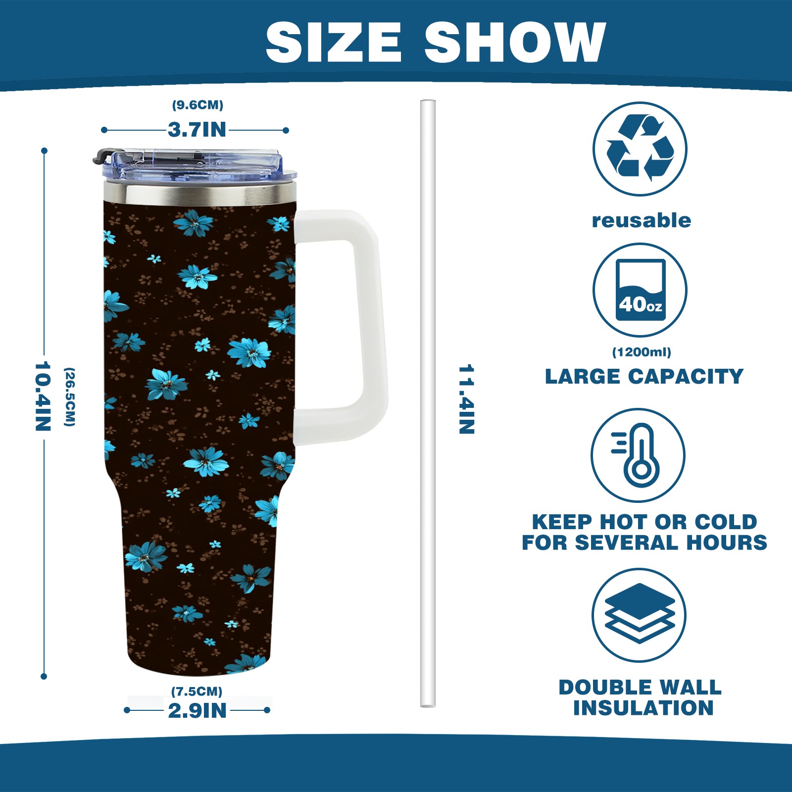 • С большой емкостью 40 унций, он обеспечивает вас гидратацией в течение всего дня, идеально подходит для воды, кофе, сока или других напитков. Эргономичный дизайн идеально вписывается в автомобильные держатели для бутылок, а прочный, герметичный колпачок предотвращает утечки во время передвижения. Путешествие. Антискользящее основание обеспечивает устойчивость, а гладкие поверхности делают уборку легкой — просто мойте вручную или кладите в посудомоечную машину (рекомендуется верхний поддон).