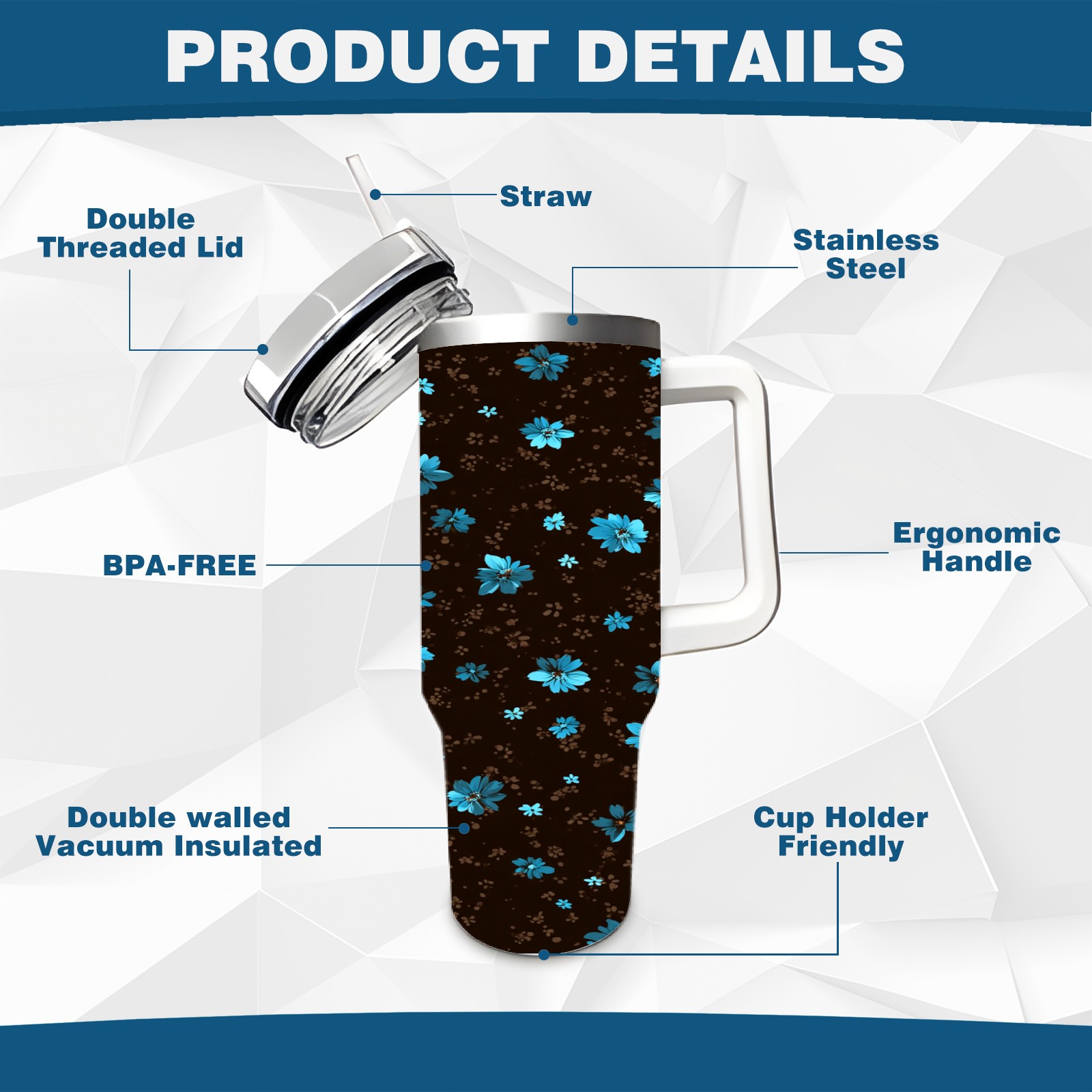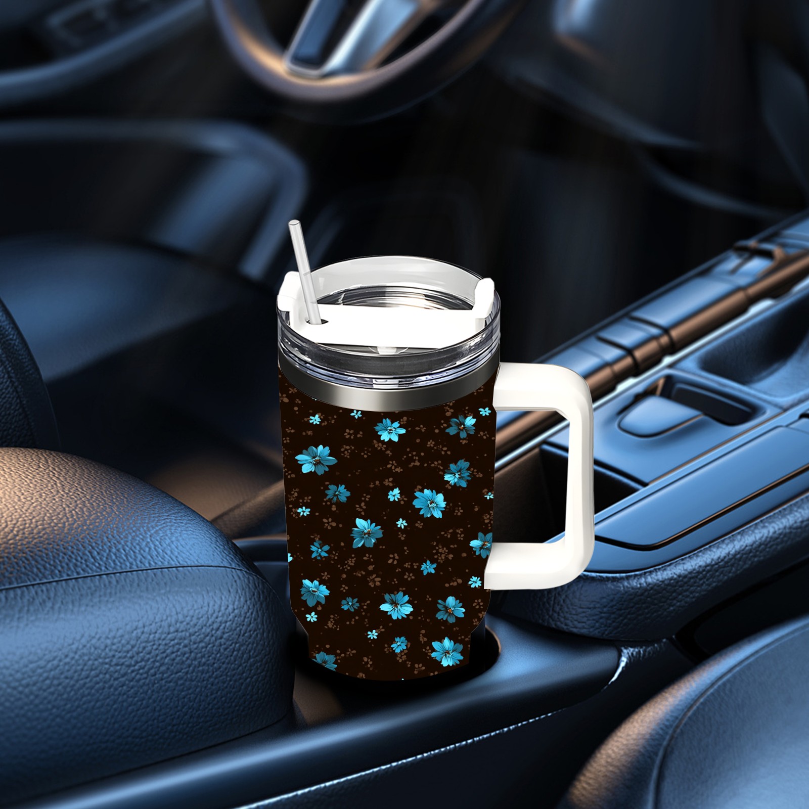 40 унций полностью напечатанный автомобильный стакан Elegant Flower Brown