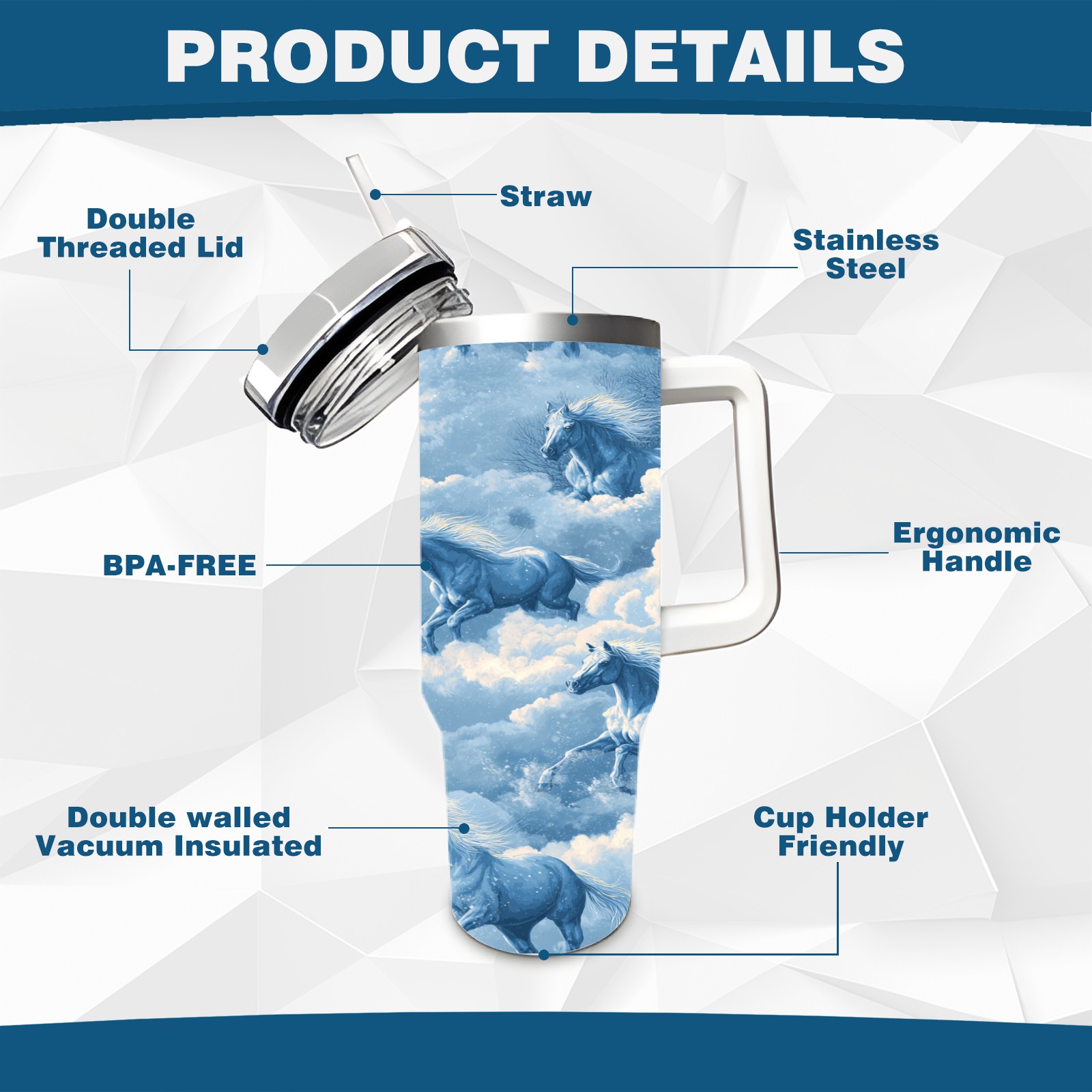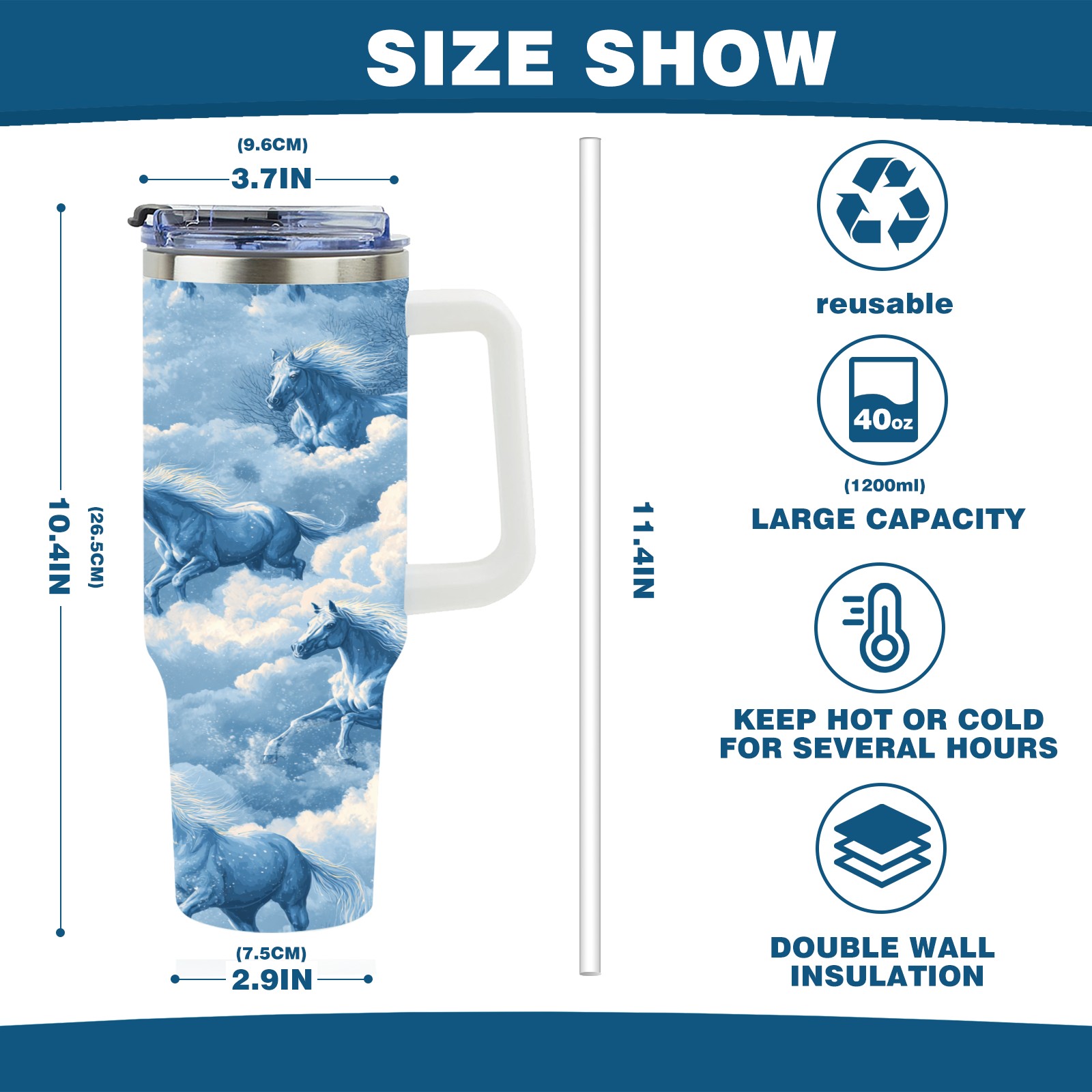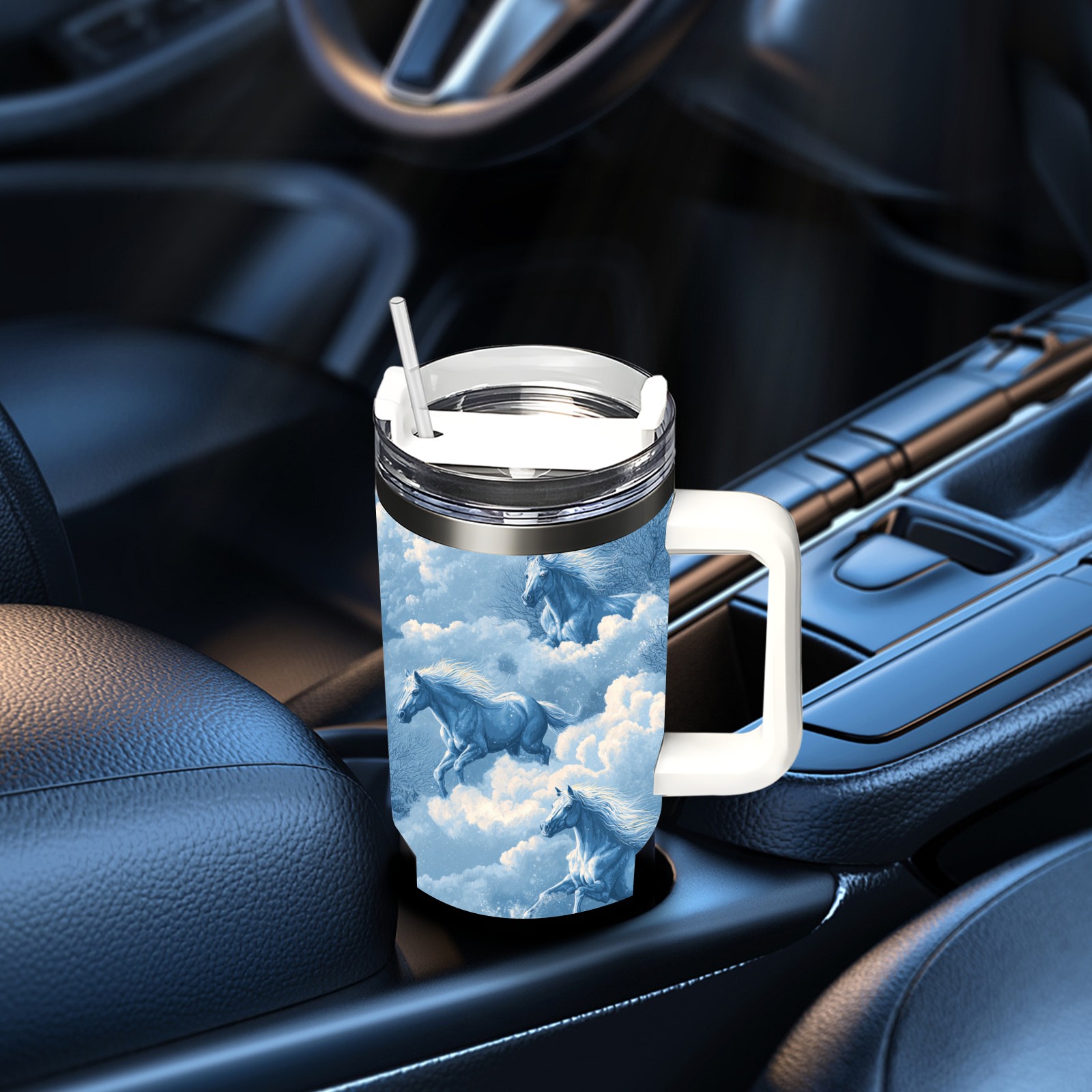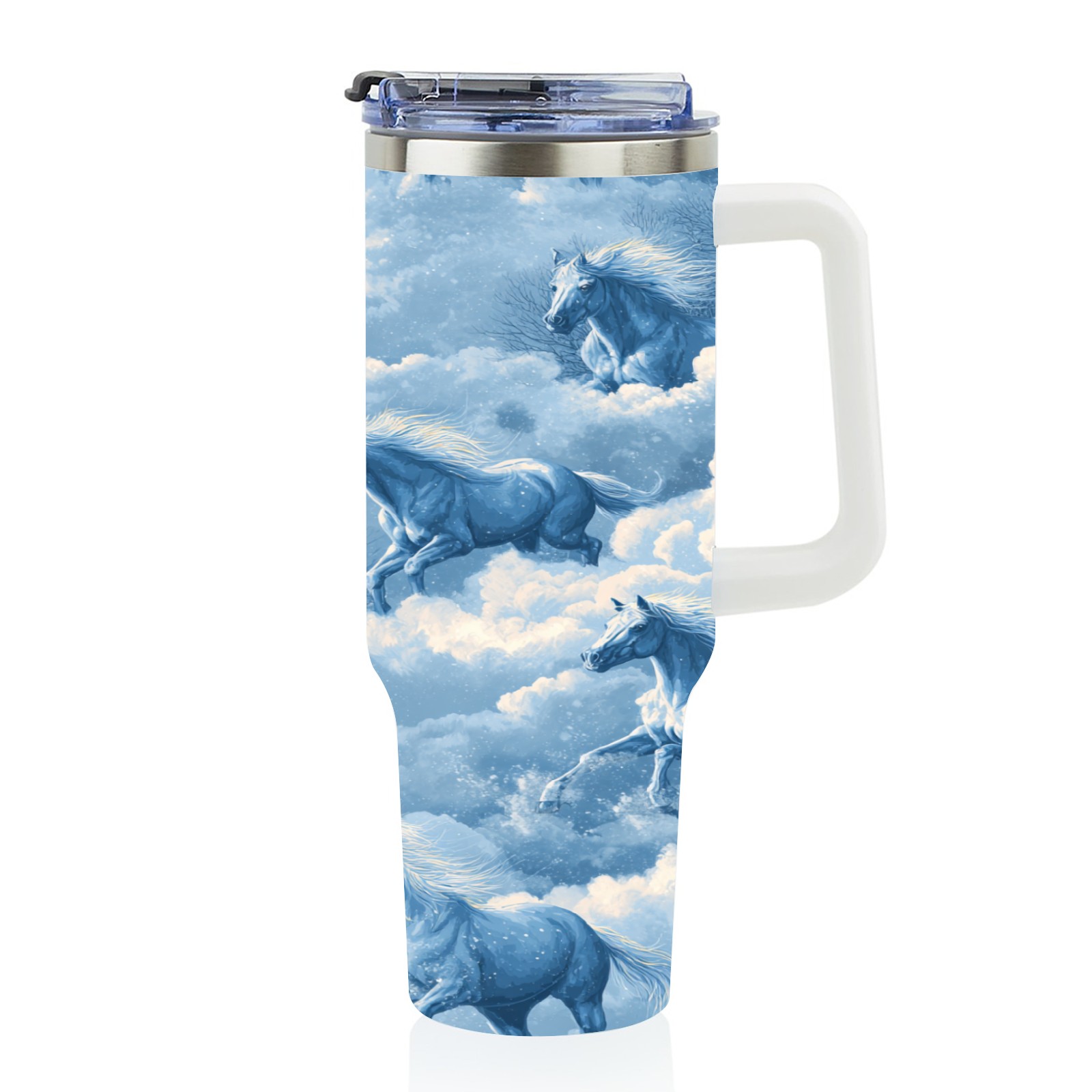 40 унций полностью напечатанный автомобильный стакан Dreamy Horse Blue
