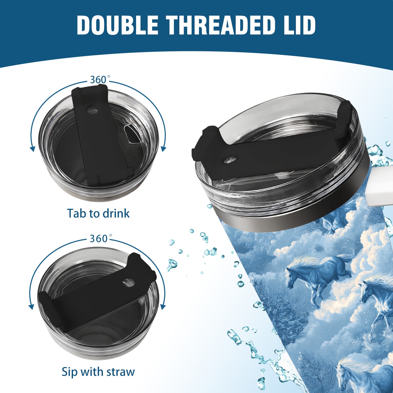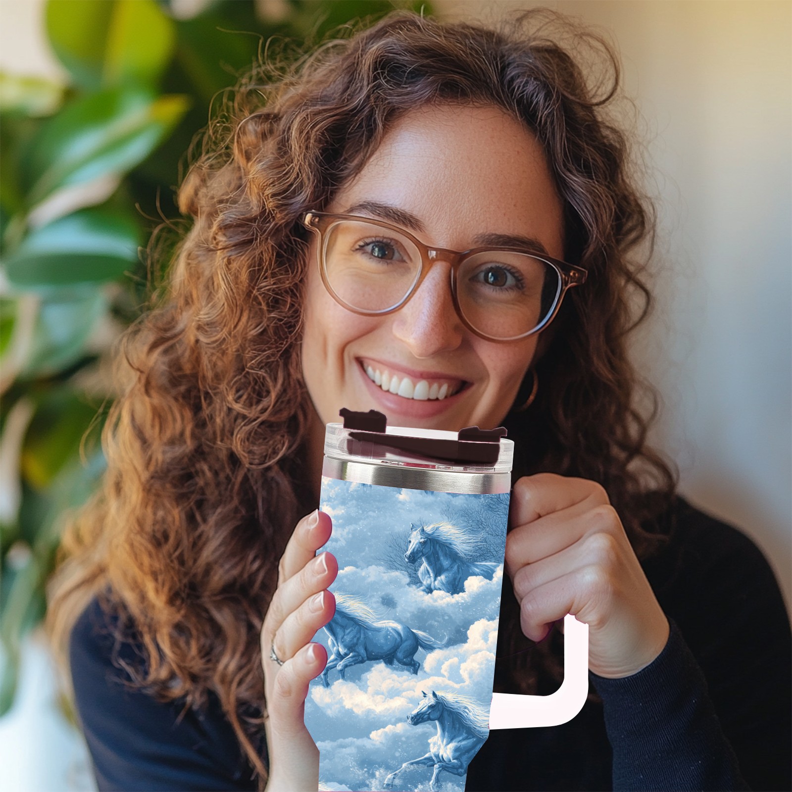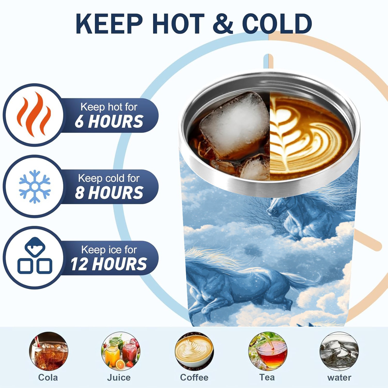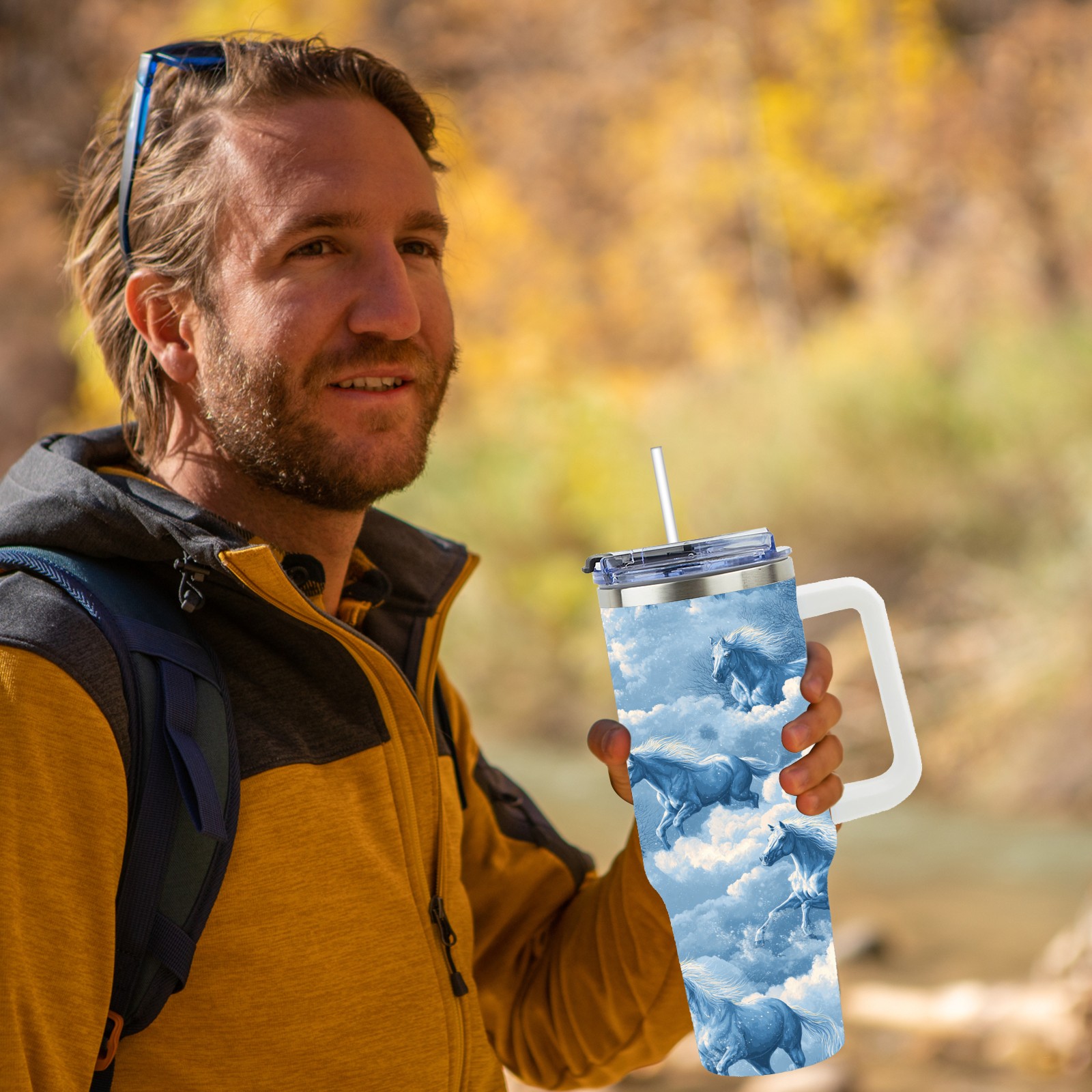 40 унций полностью напечатанный автомобильный стакан Dreamy Horse Blue