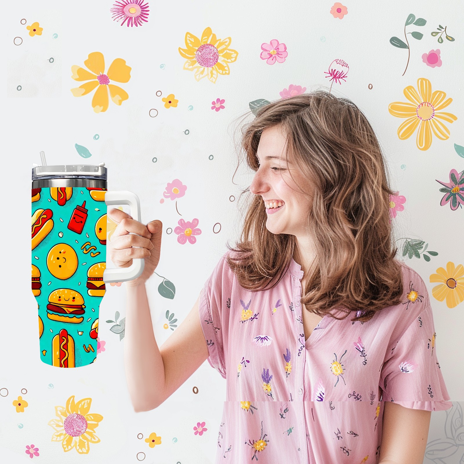 40 унций полностью напечатанный автомобильный стакан Colorful Food Blue