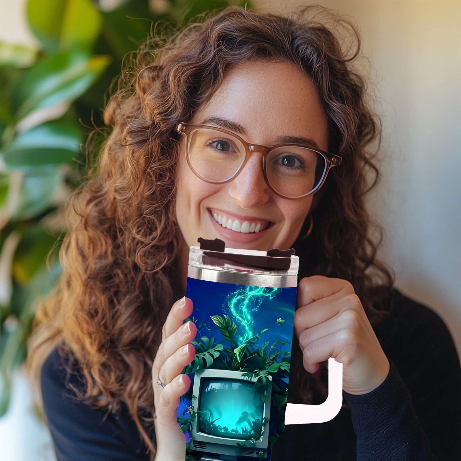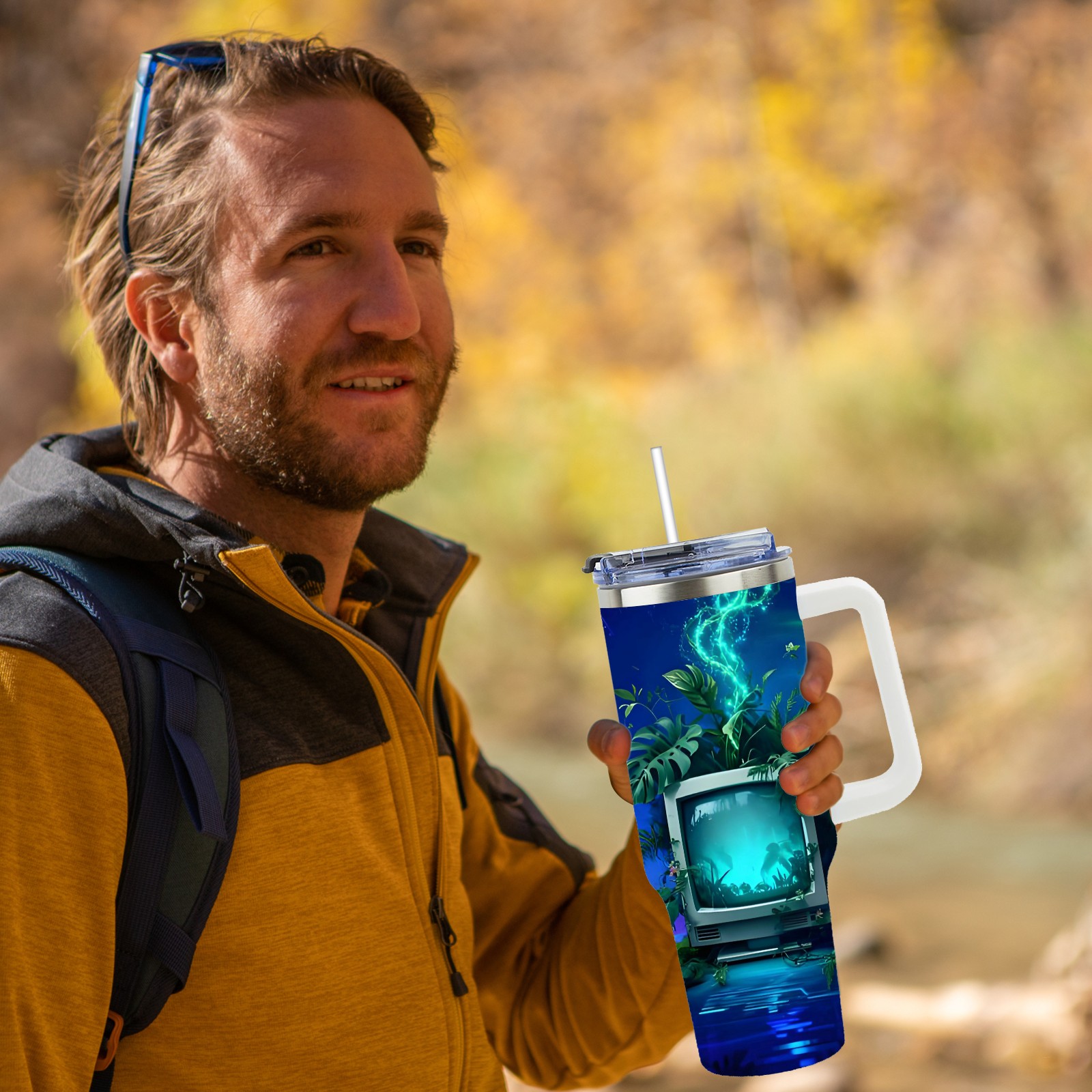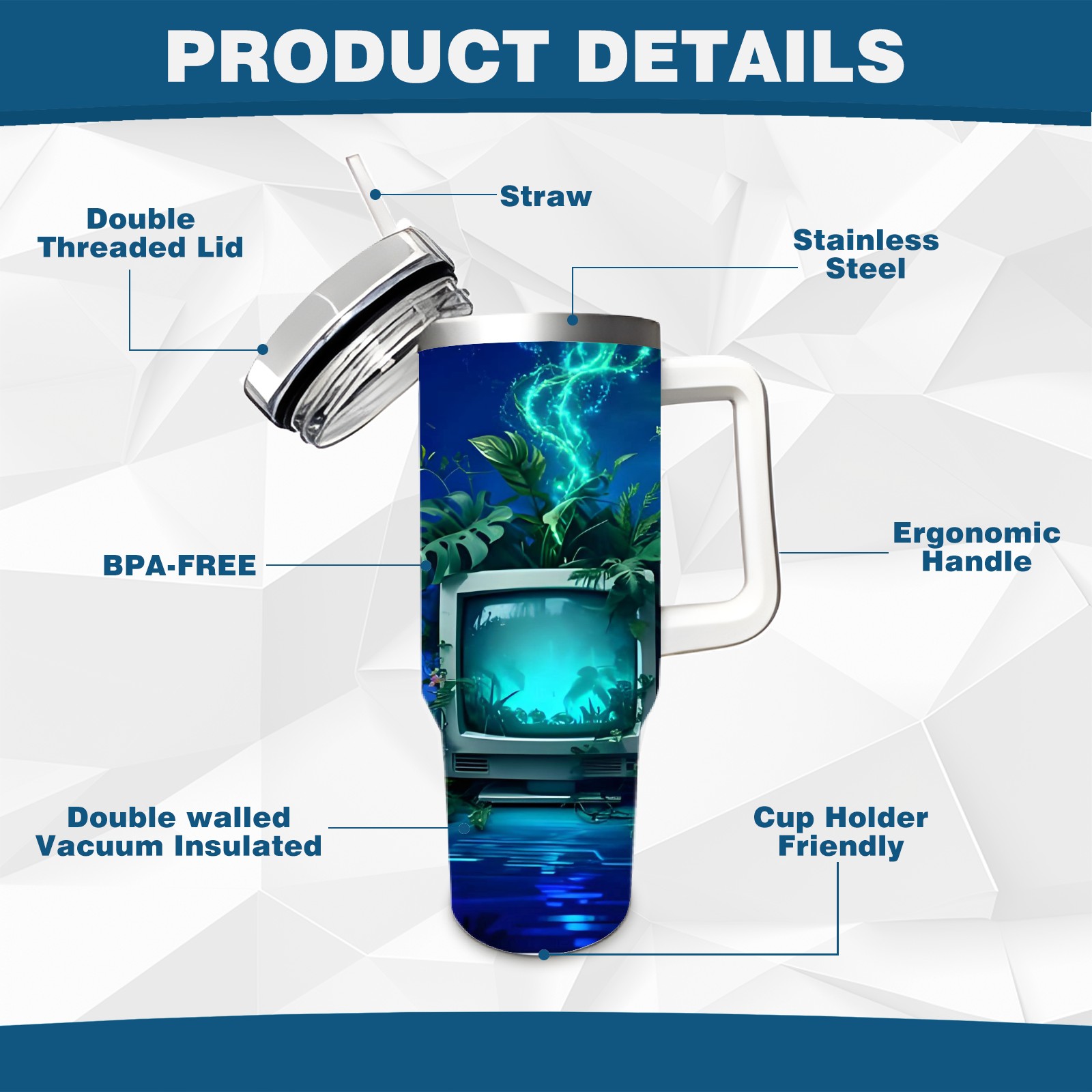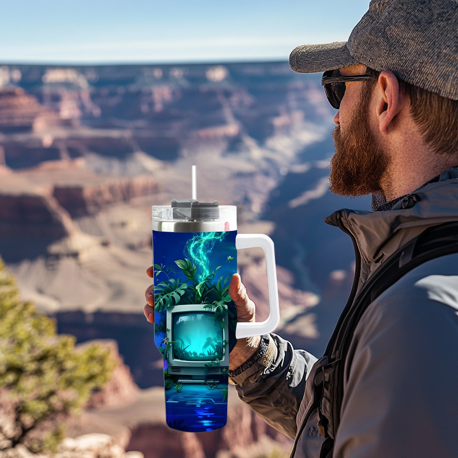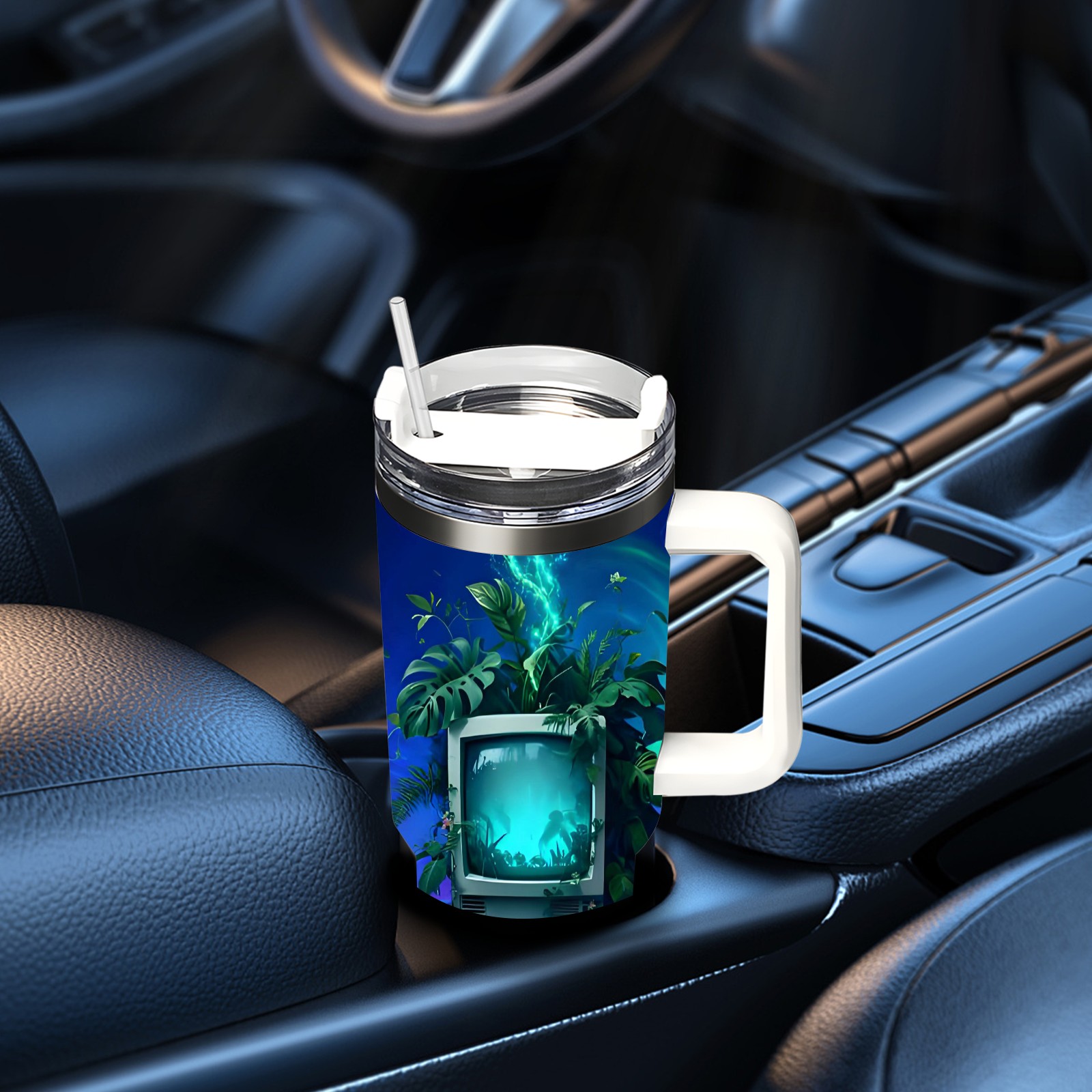 40 унций полностью напечатанный автомобильный стакан Cyber TV Purple