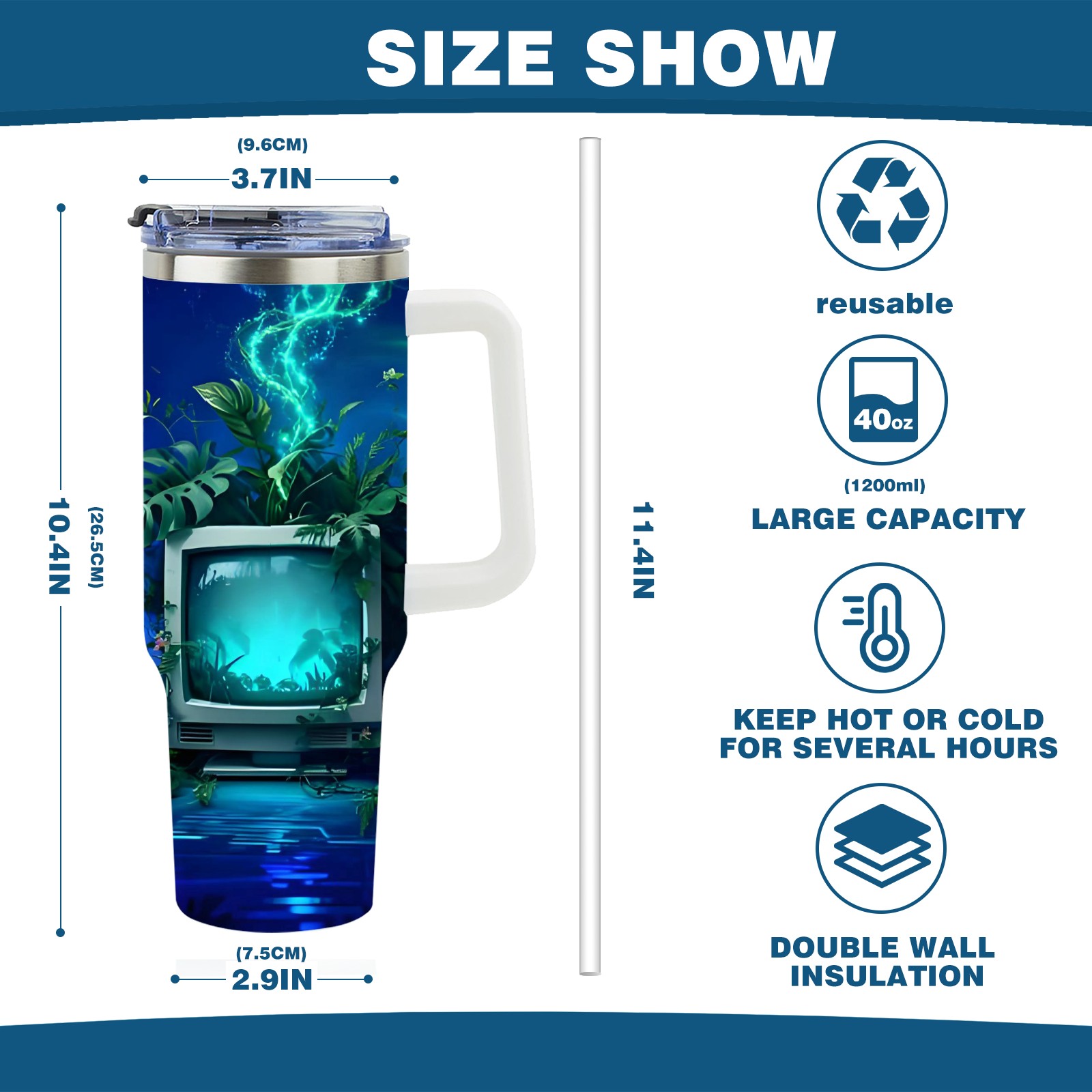 • С большой емкостью 40 унций, он обеспечивает вас гидратацией в течение всего дня, идеально подходит для воды, кофе, сока или других напитков. Эргономичный дизайн идеально вписывается в автомобильные держатели для бутылок, а прочный, герметичный колпачок предотвращает утечки во время передвижения. Путешествие. Антискользящее основание обеспечивает устойчивость, а гладкие поверхности делают уборку легкой — просто мойте вручную или кладите в посудомоечную машину (рекомендуется верхний поддон).