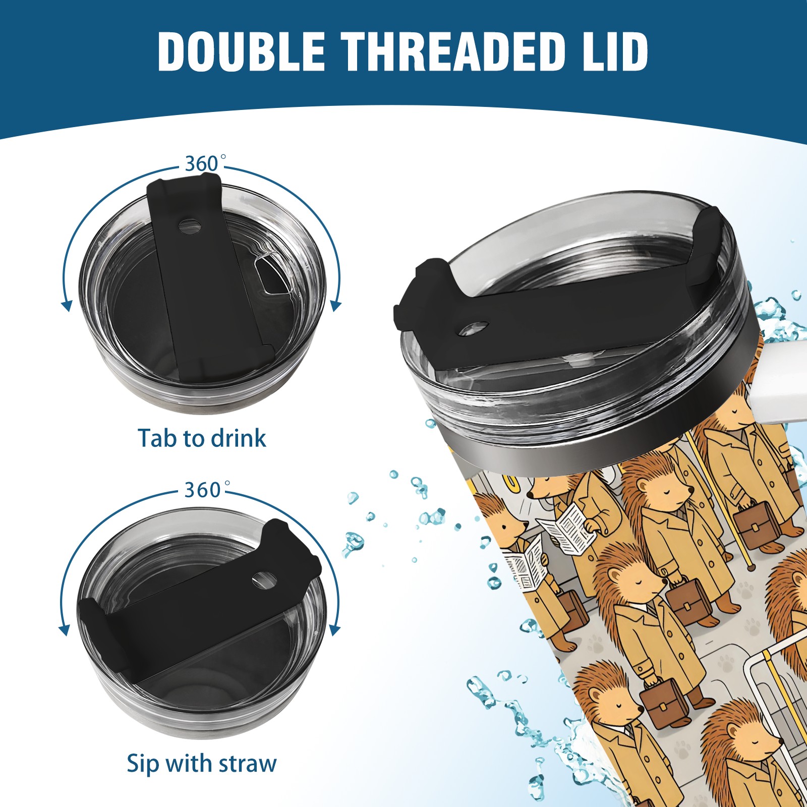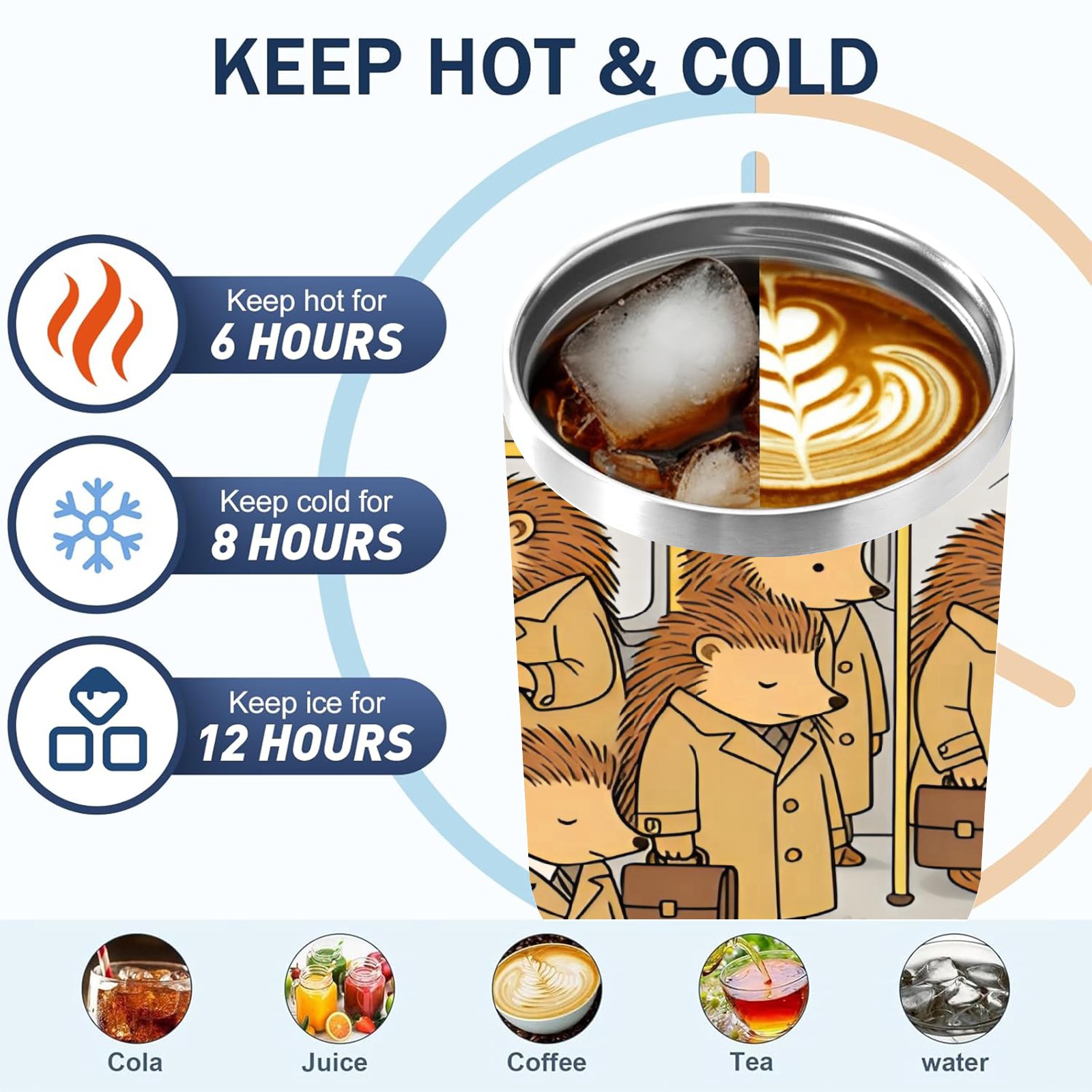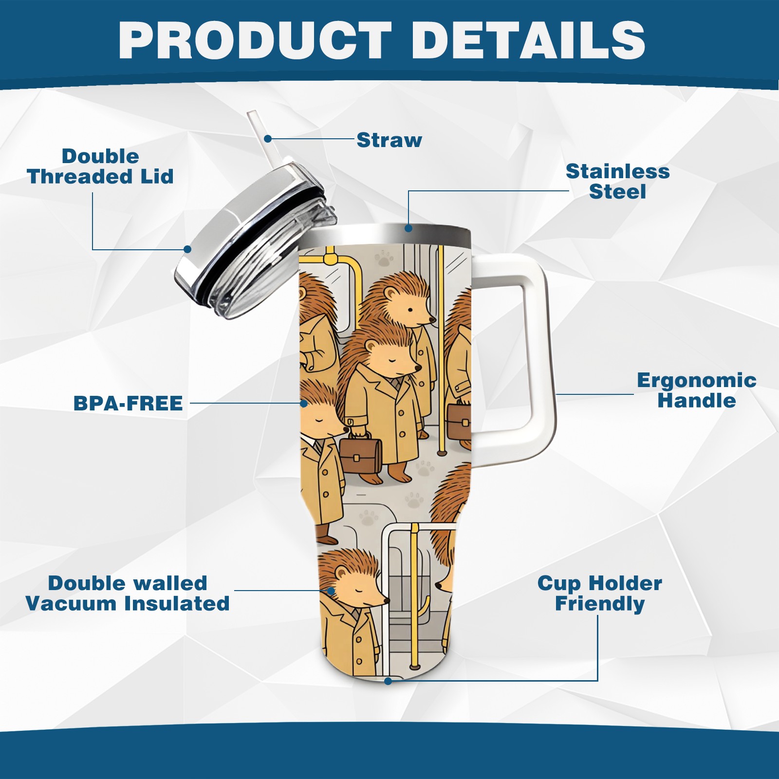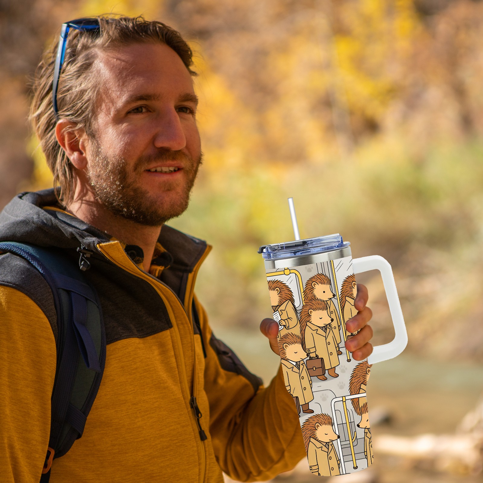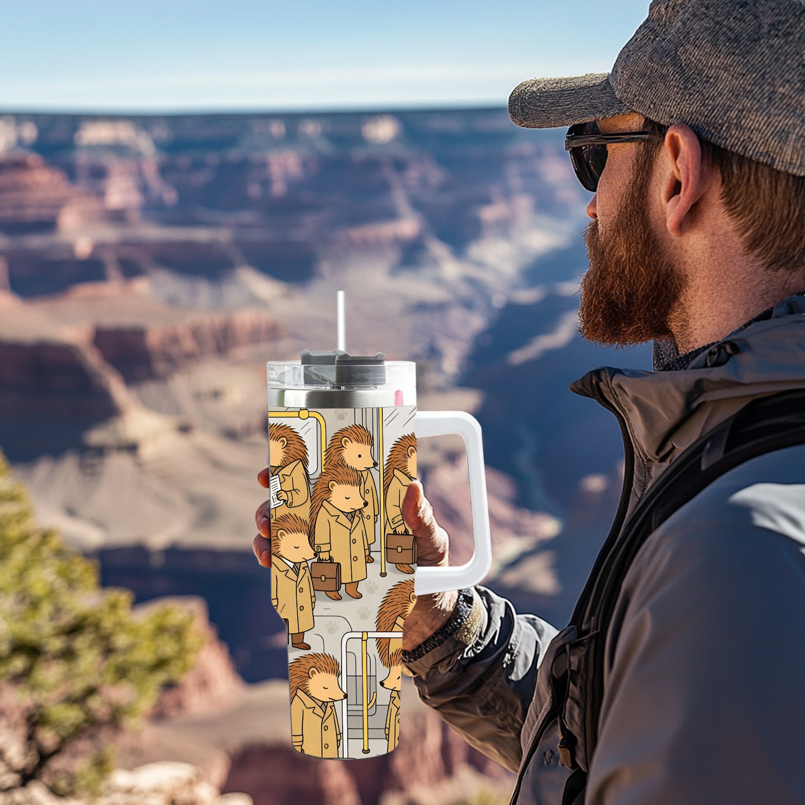 40 унций полностью напечатанный автомобильный стакан Daily Hedgehog Brown