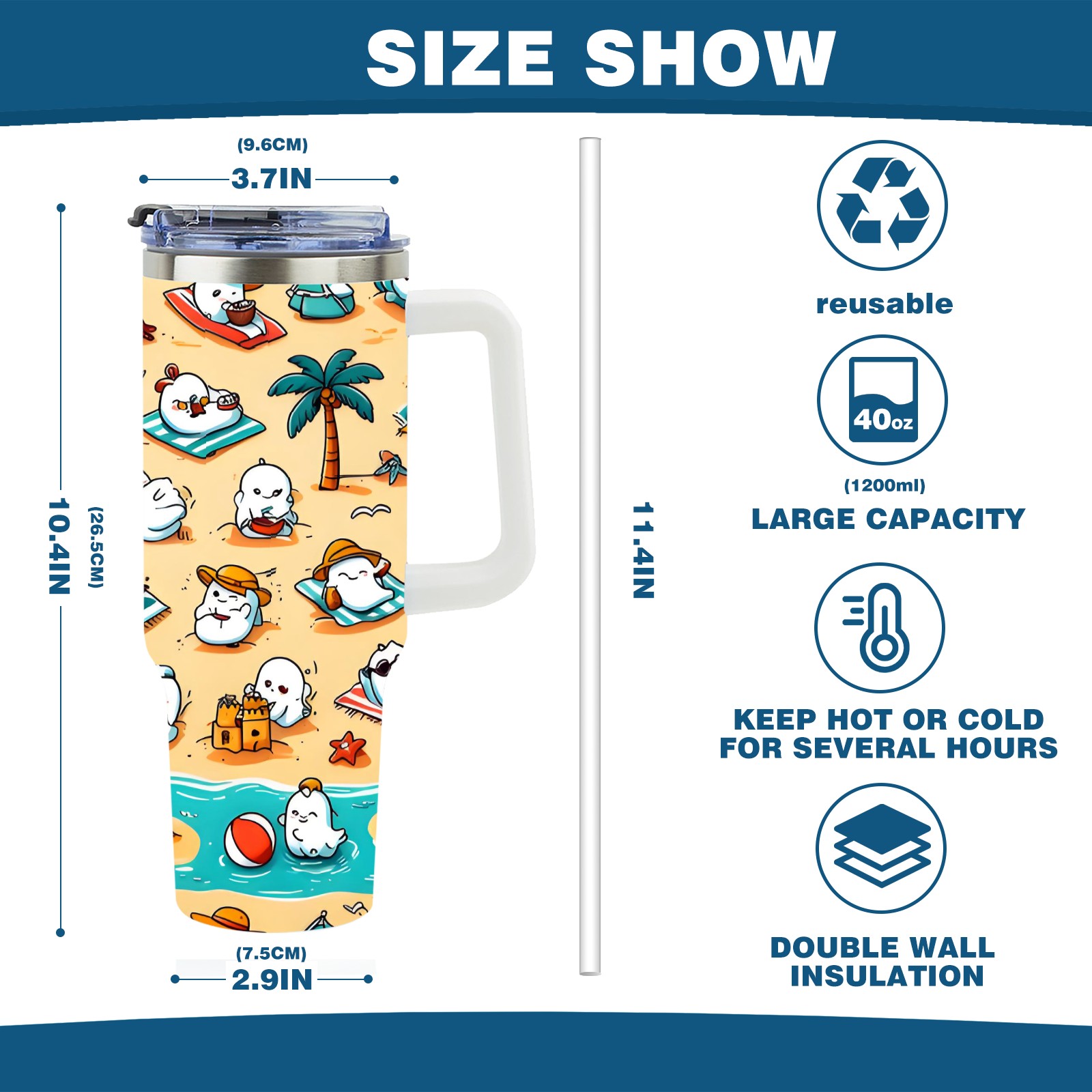 • С большой емкостью 40 унций, он обеспечивает вас гидратацией в течение всего дня, идеально подходит для воды, кофе, сока или других напитков. Эргономичный дизайн идеально вписывается в автомобильные держатели для бутылок, а прочный, герметичный колпачок предотвращает утечки во время передвижения. Путешествие. Антискользящее основание обеспечивает устойчивость, а гладкие поверхности делают уборку легкой — просто мойте вручную или кладите в посудомоечную машину (рекомендуется верхний поддон).