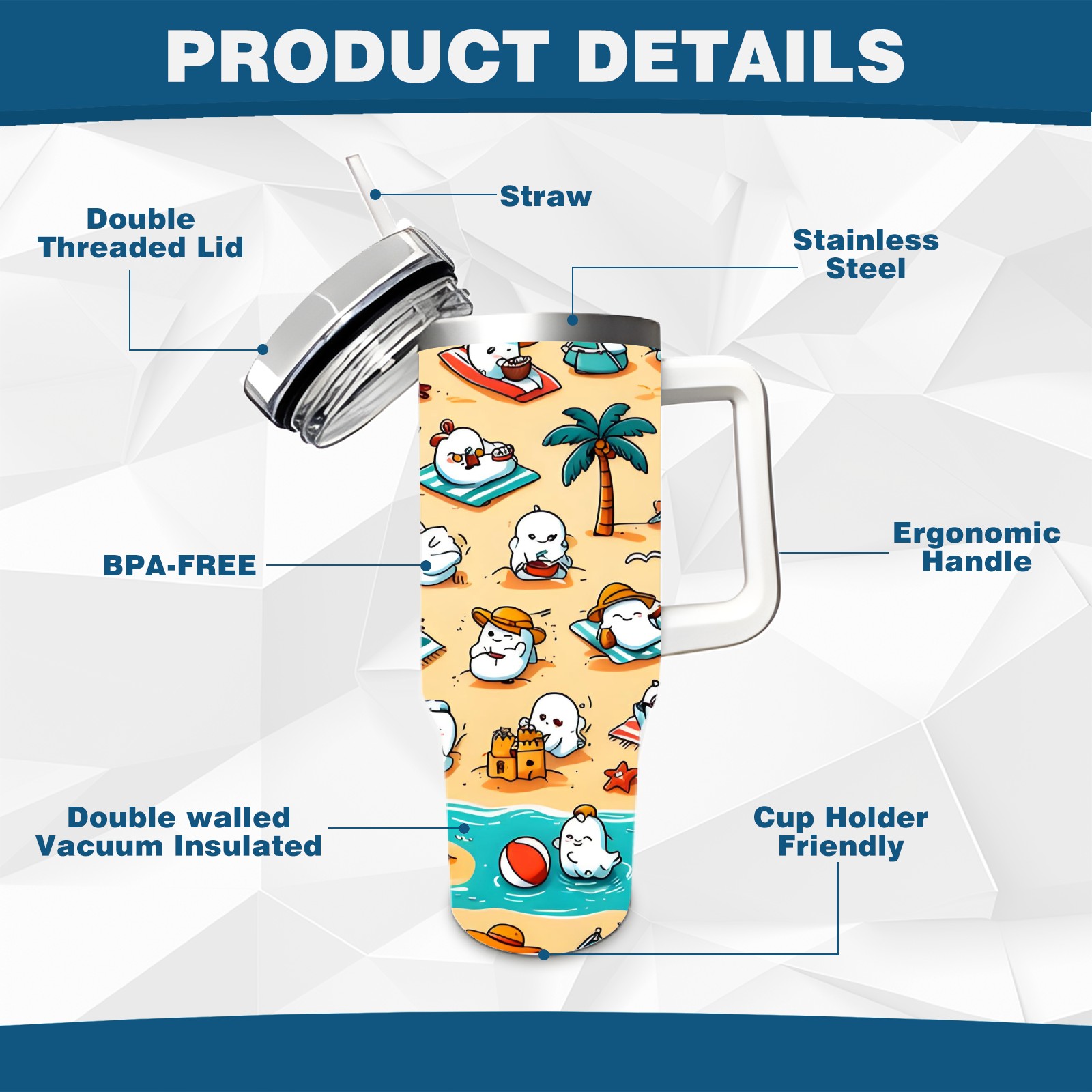 40 унций полностью напечатанный автомобильный стакан Leisure Penguin White