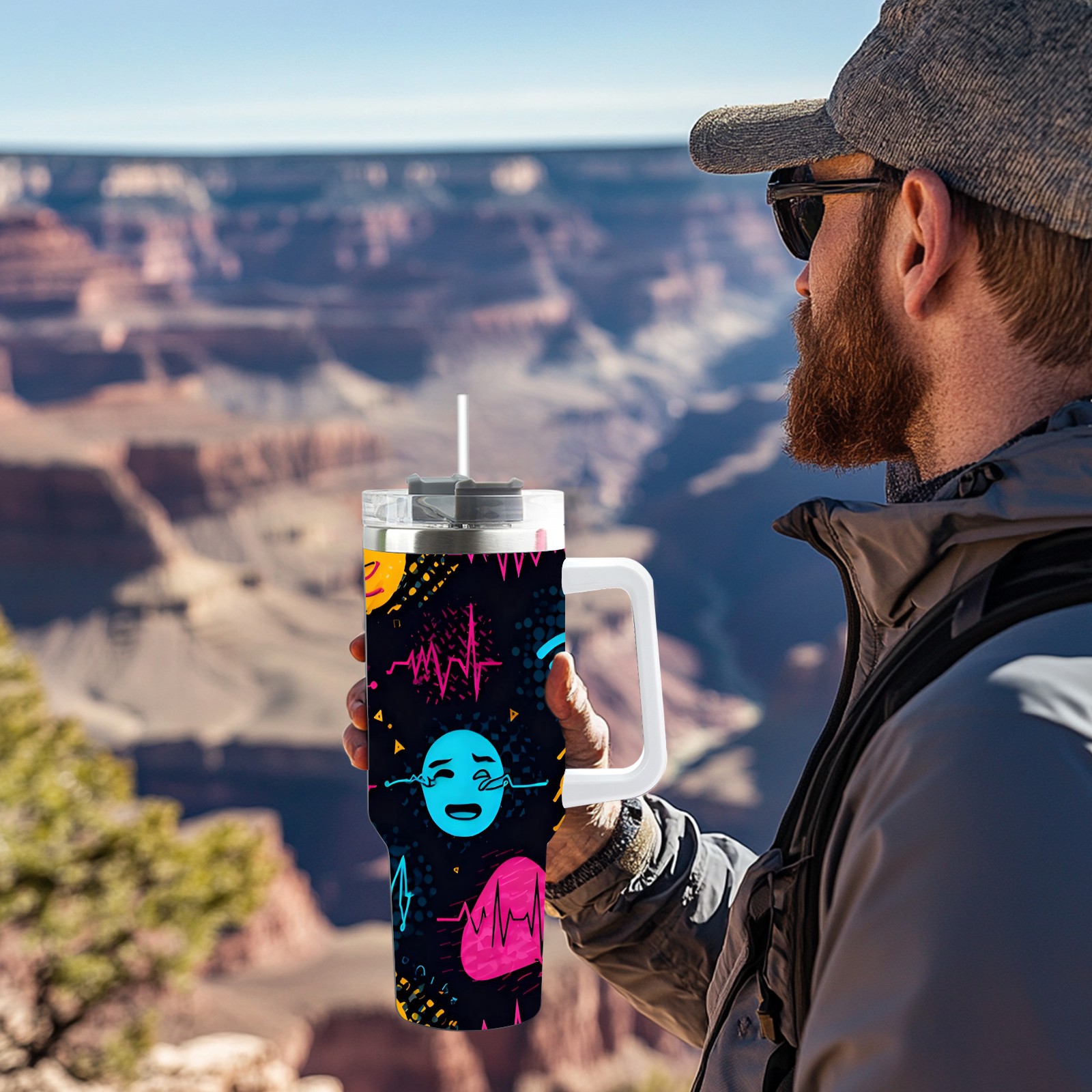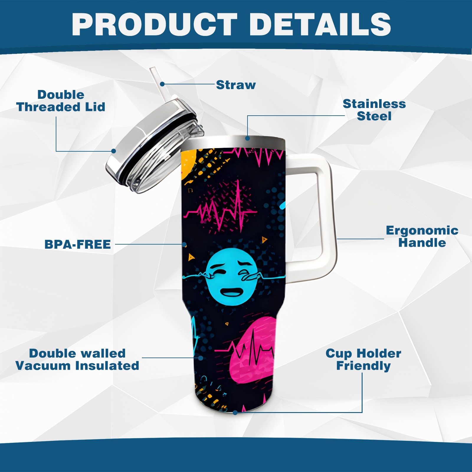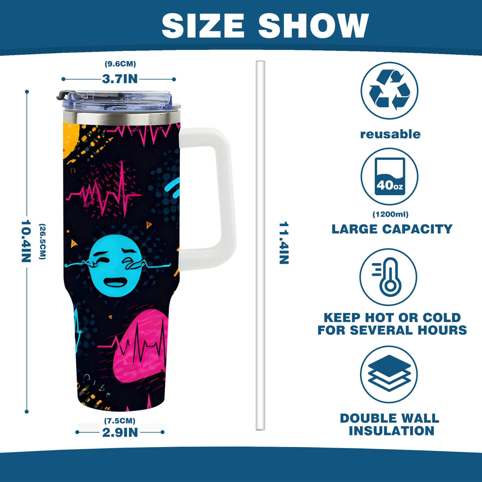 40 унций полностью напечатанный автомобильный стакан Funny Emoji Black