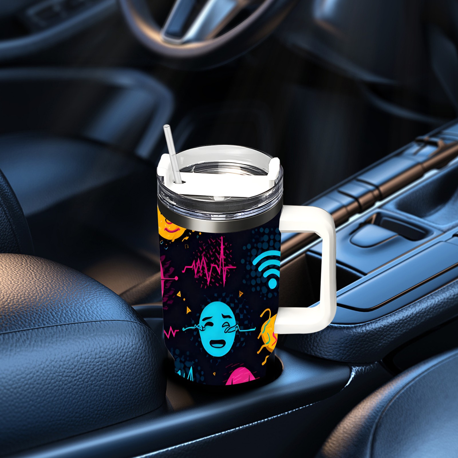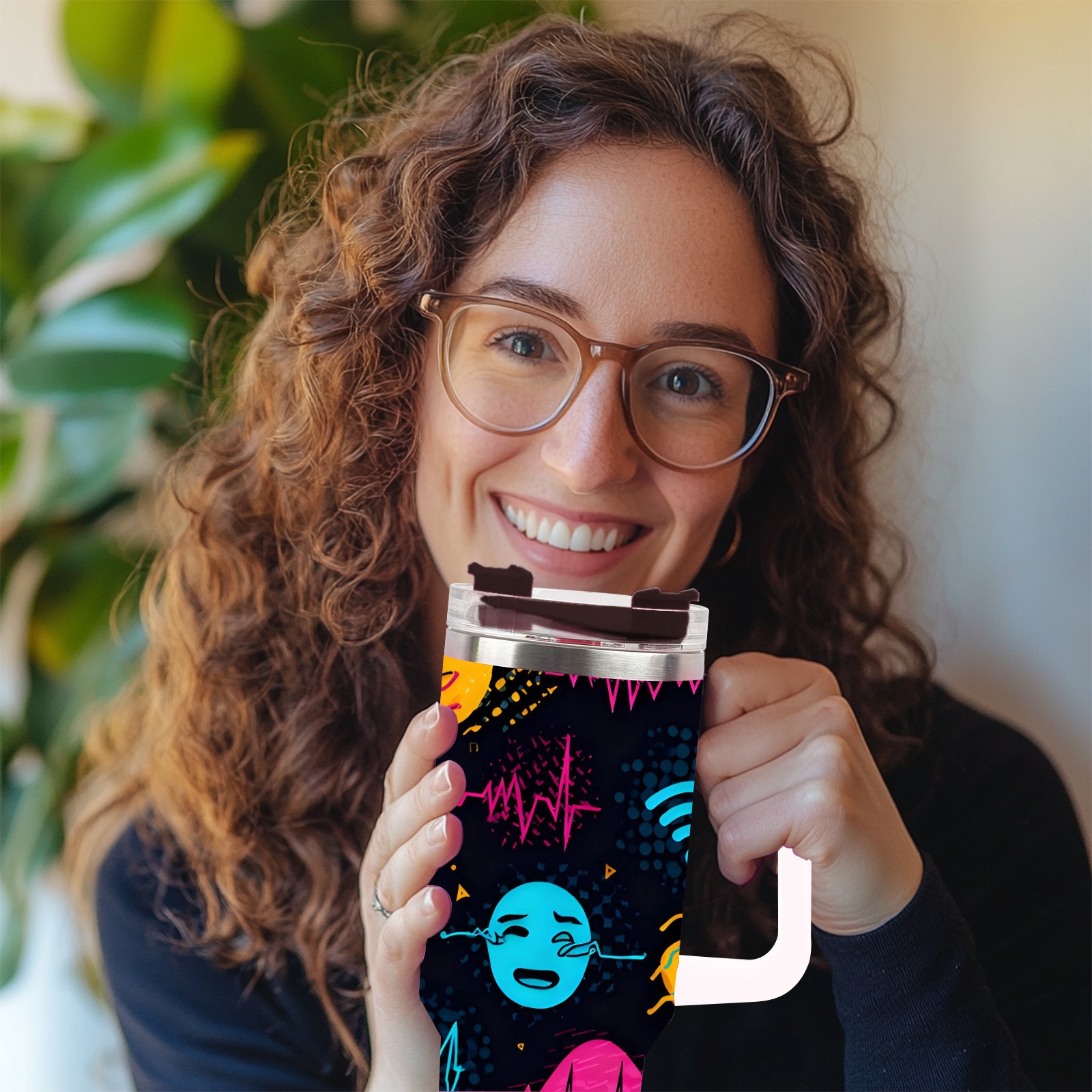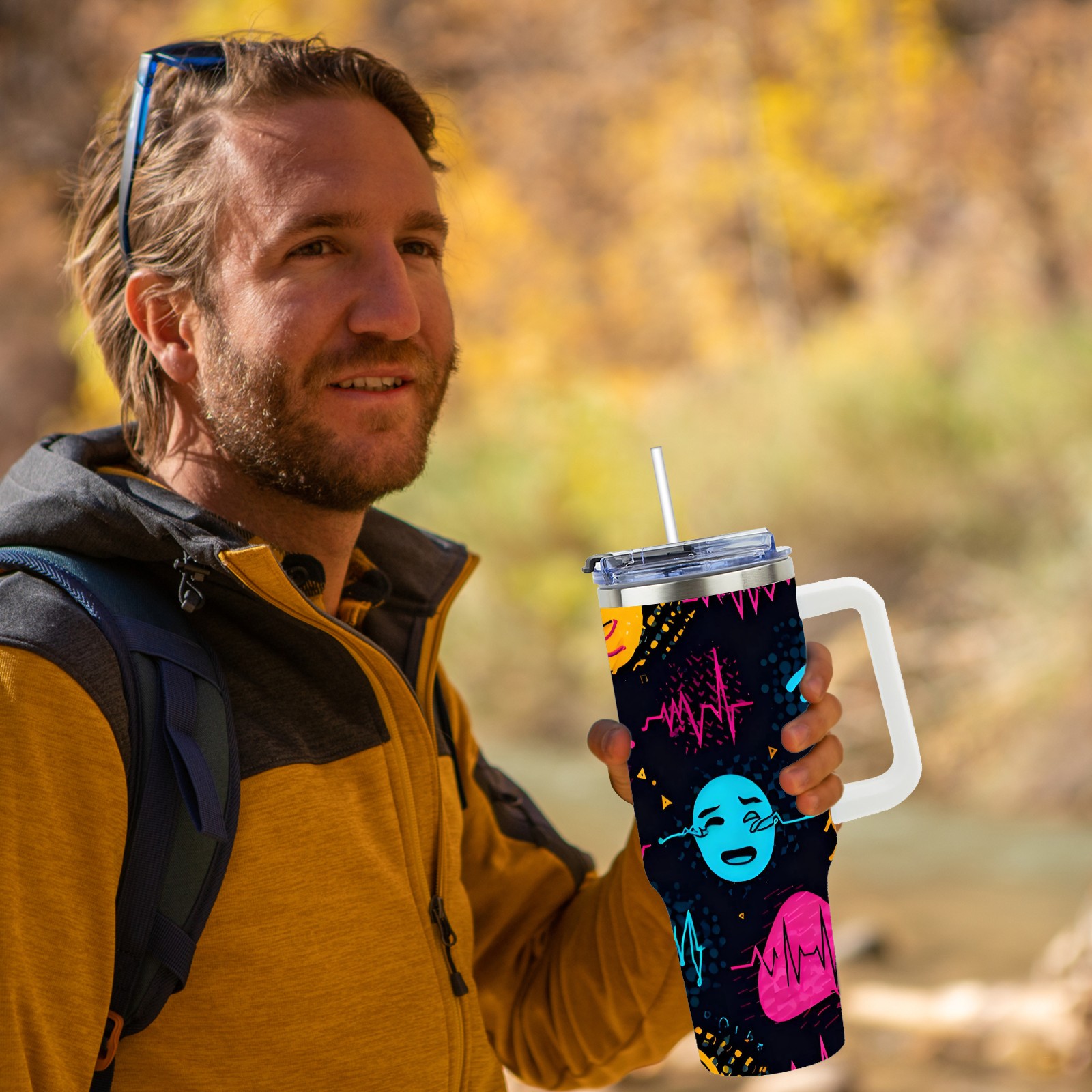 40 унций полностью напечатанный автомобильный стакан Funny Emoji Black