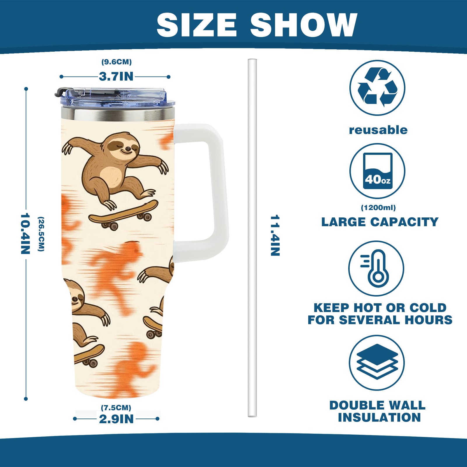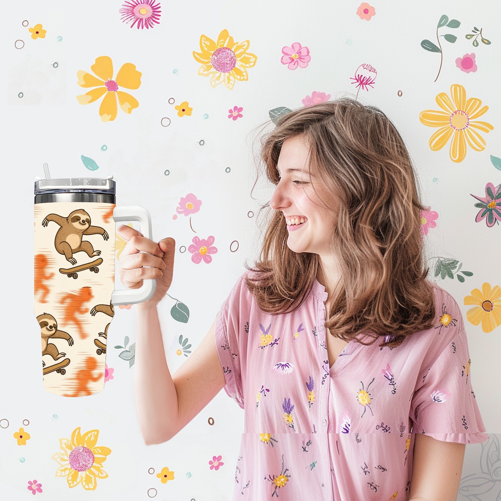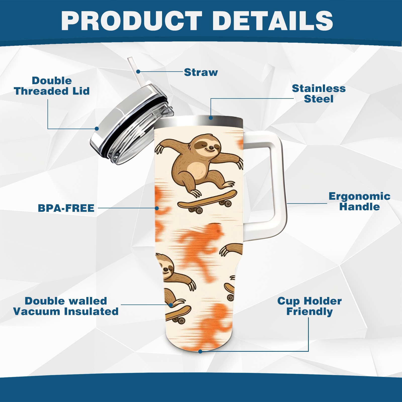 40 унций полностью напечатанный автомобильный стакан Vibrant Sloth Orange