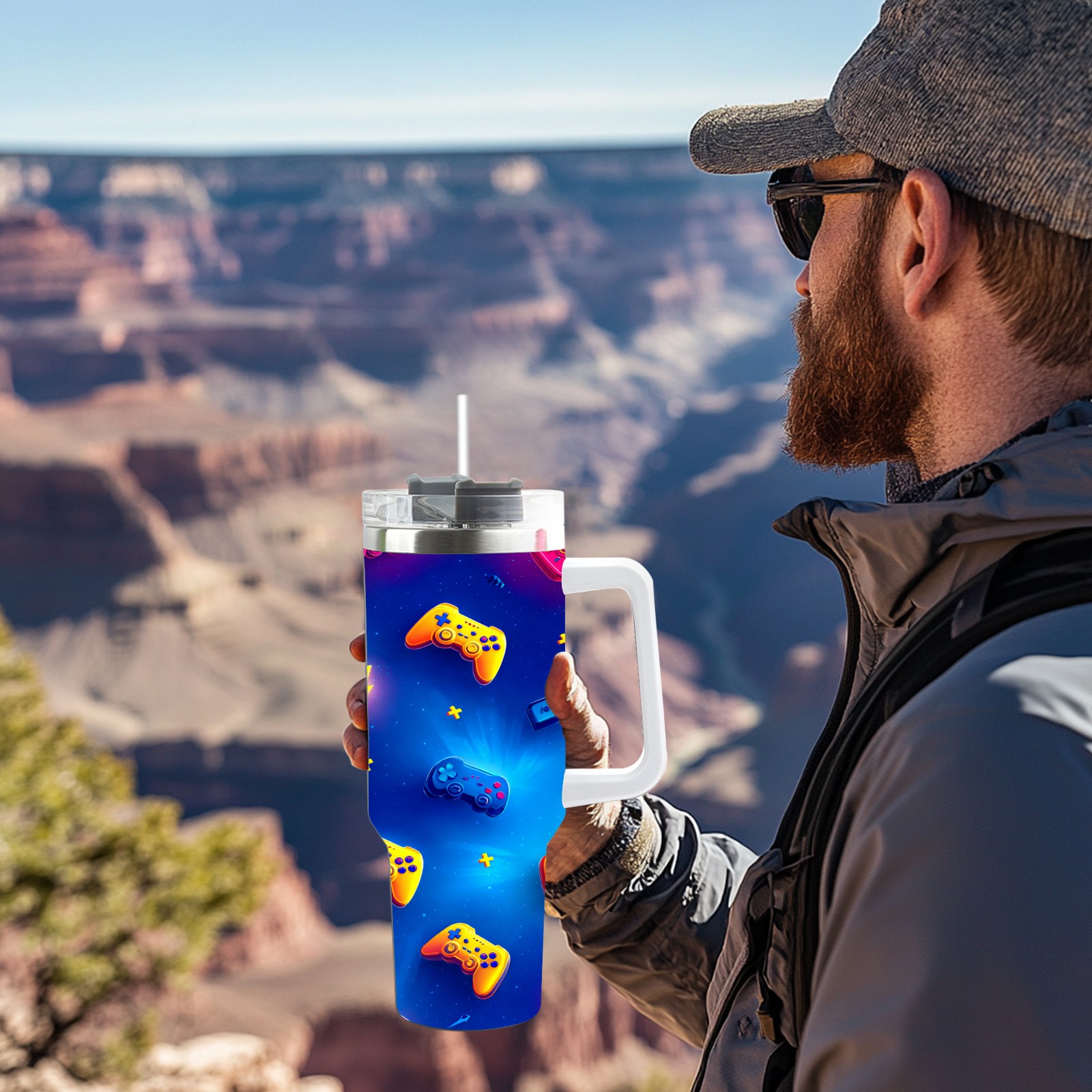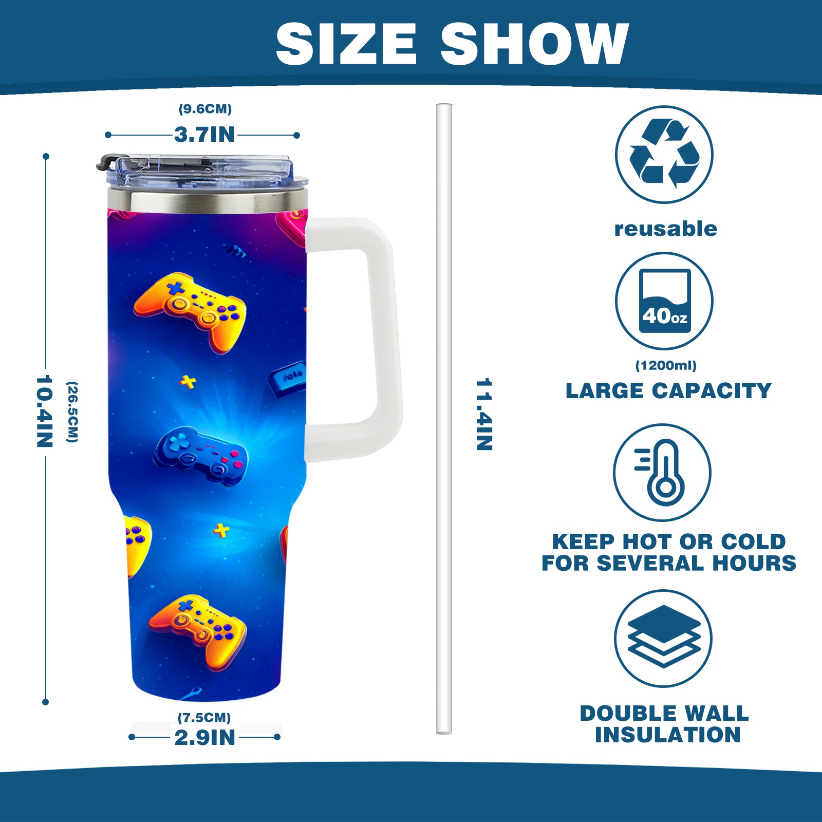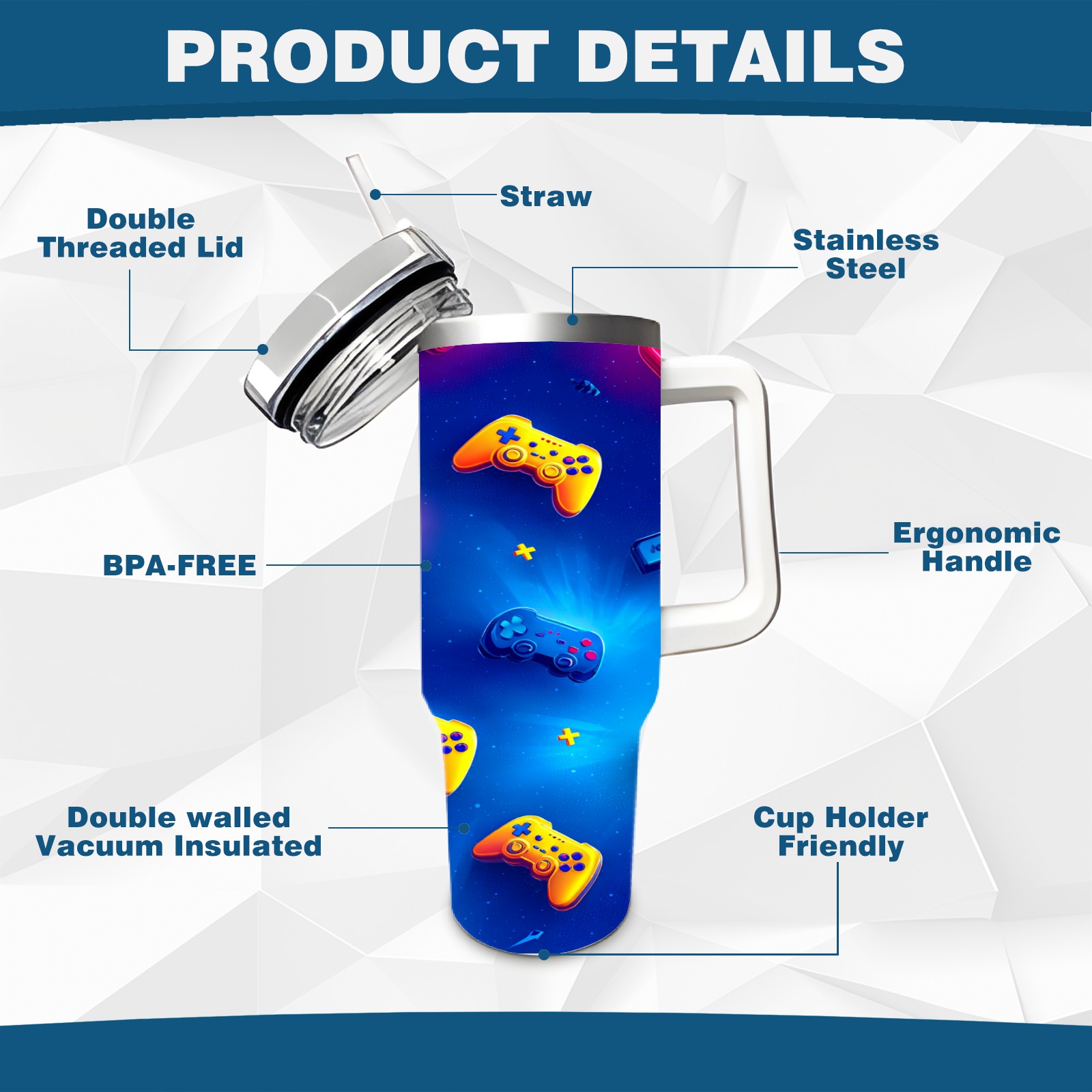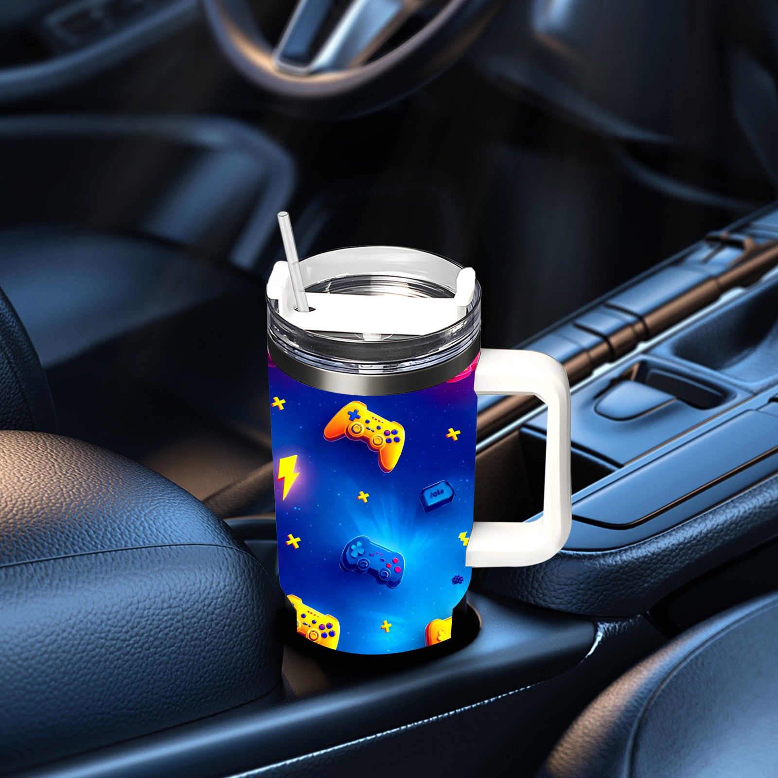 40 унций полностью напечатанный автомобильный стакан Vibrant Controller Blue