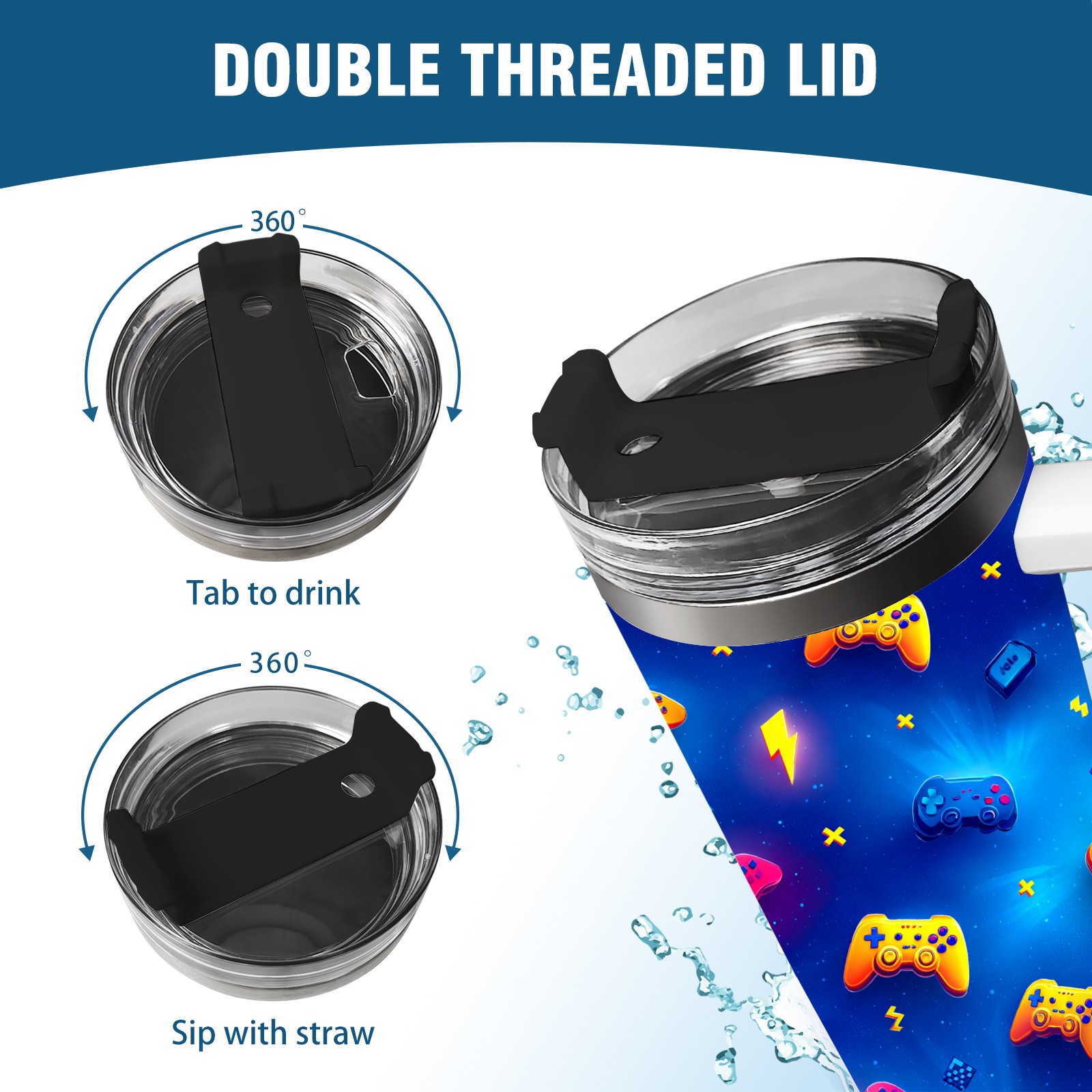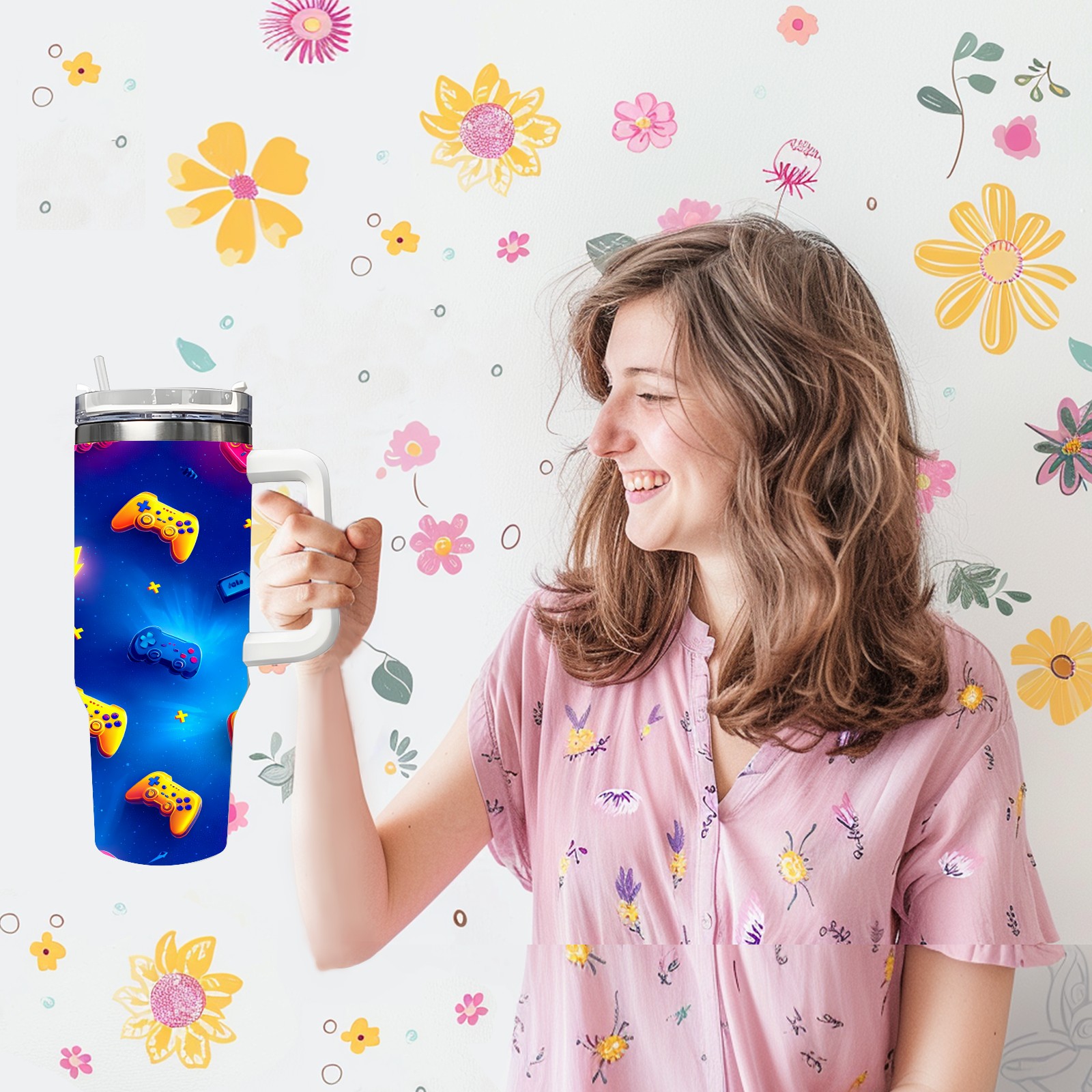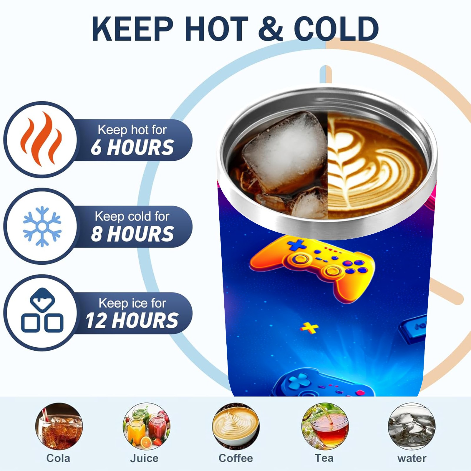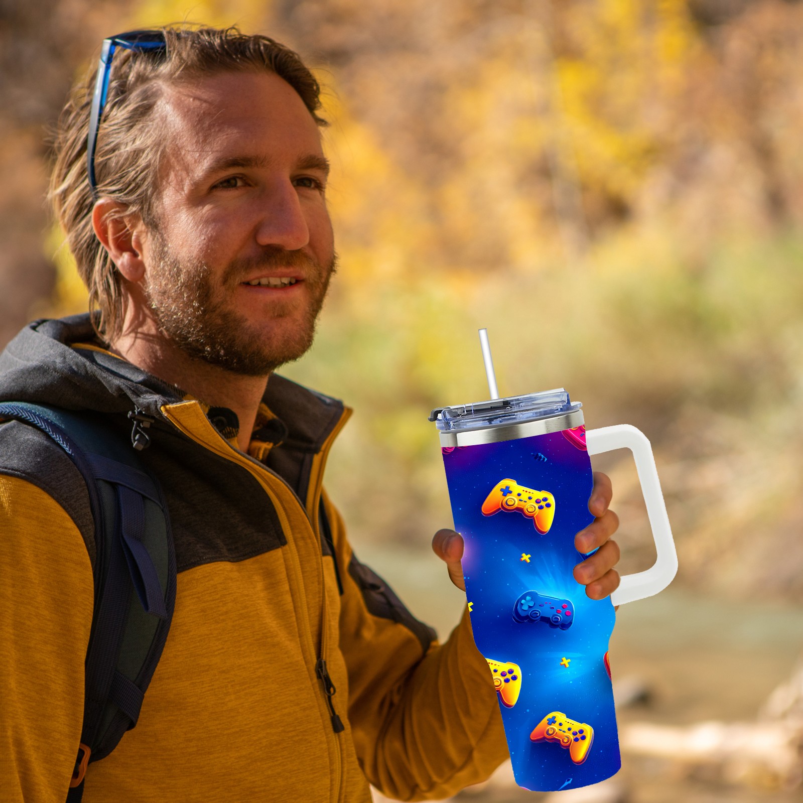 40 унций полностью напечатанный автомобильный стакан Vibrant Controller Blue