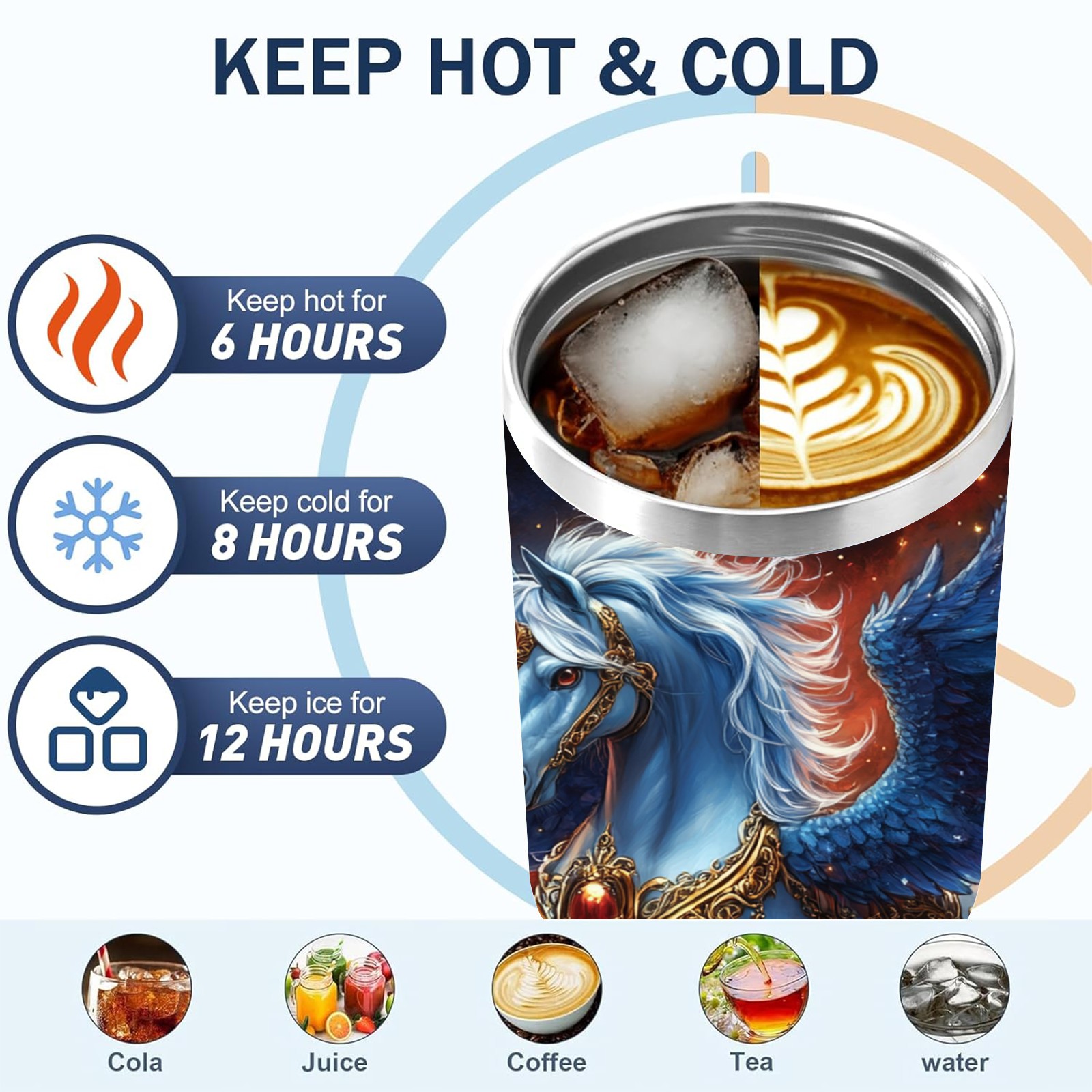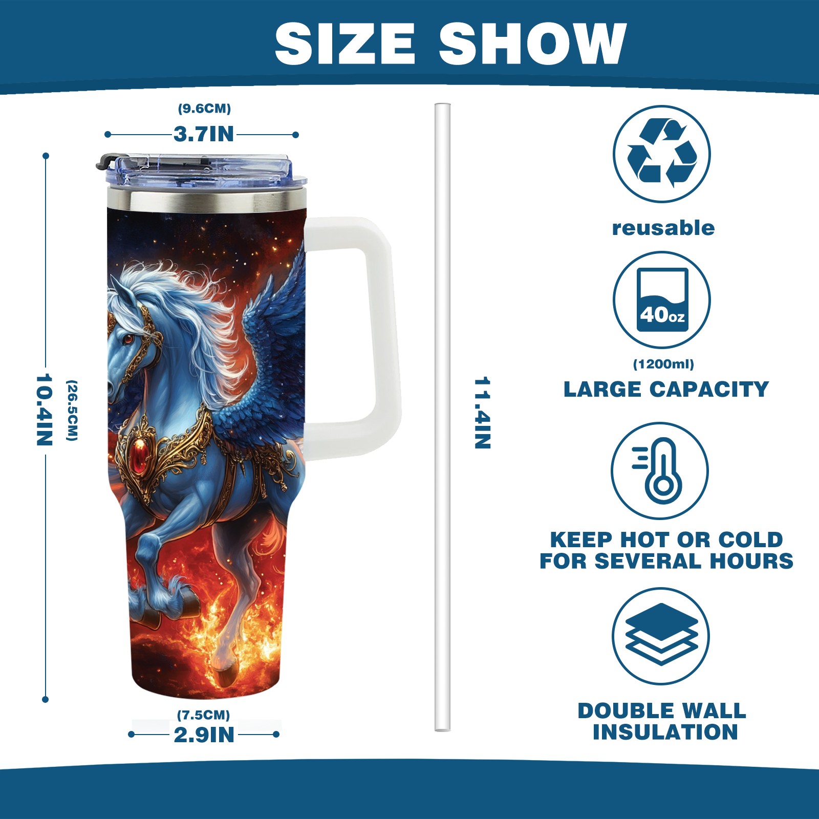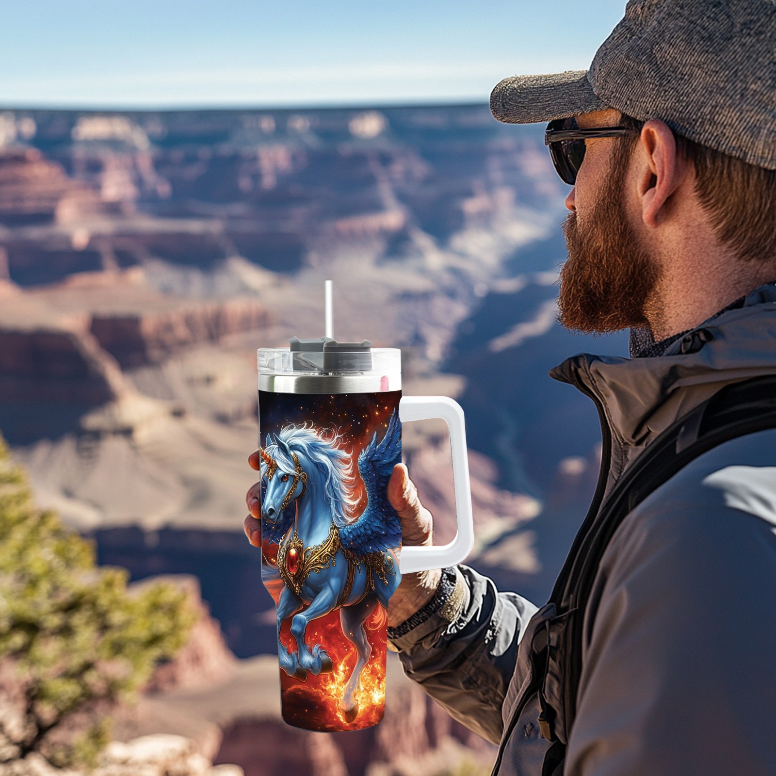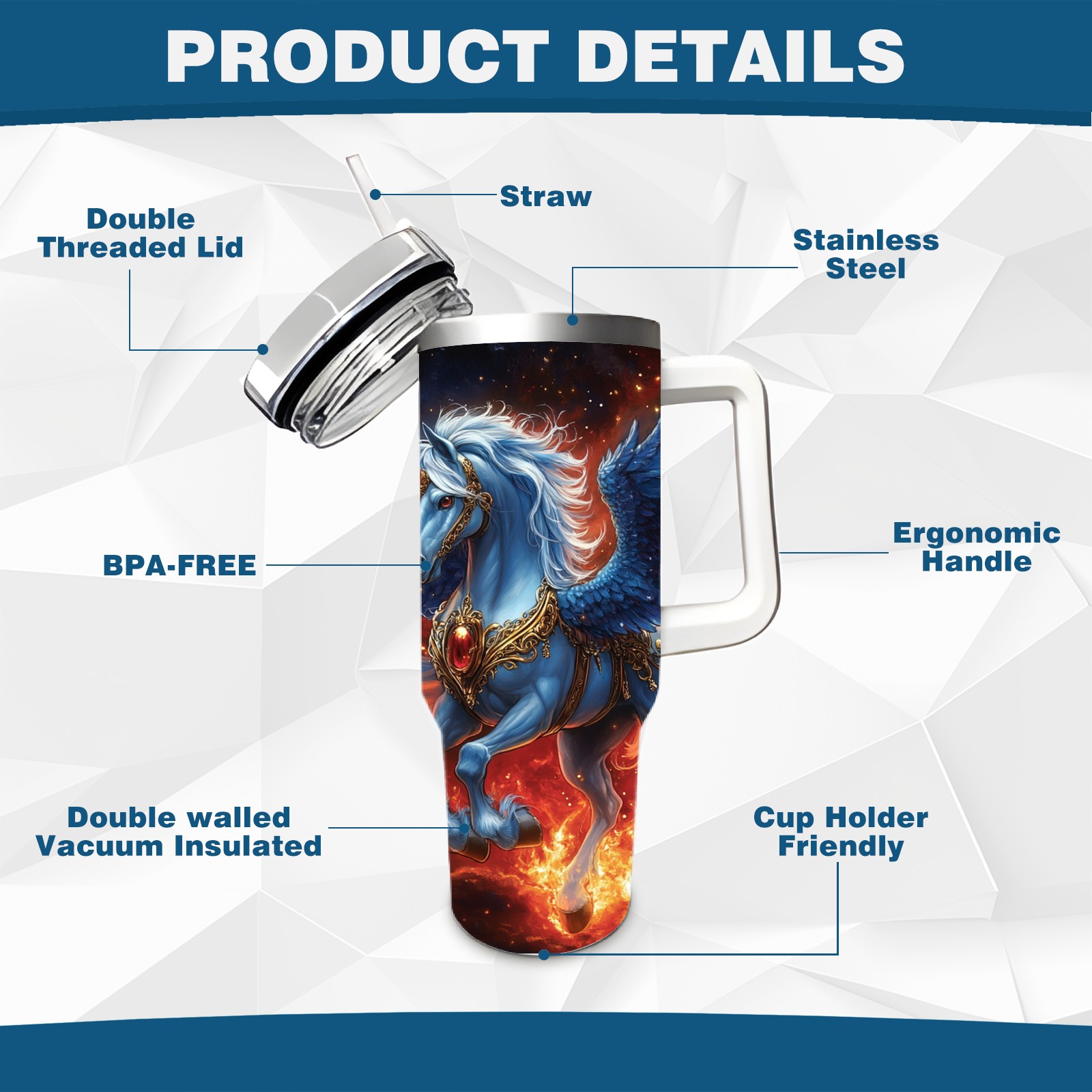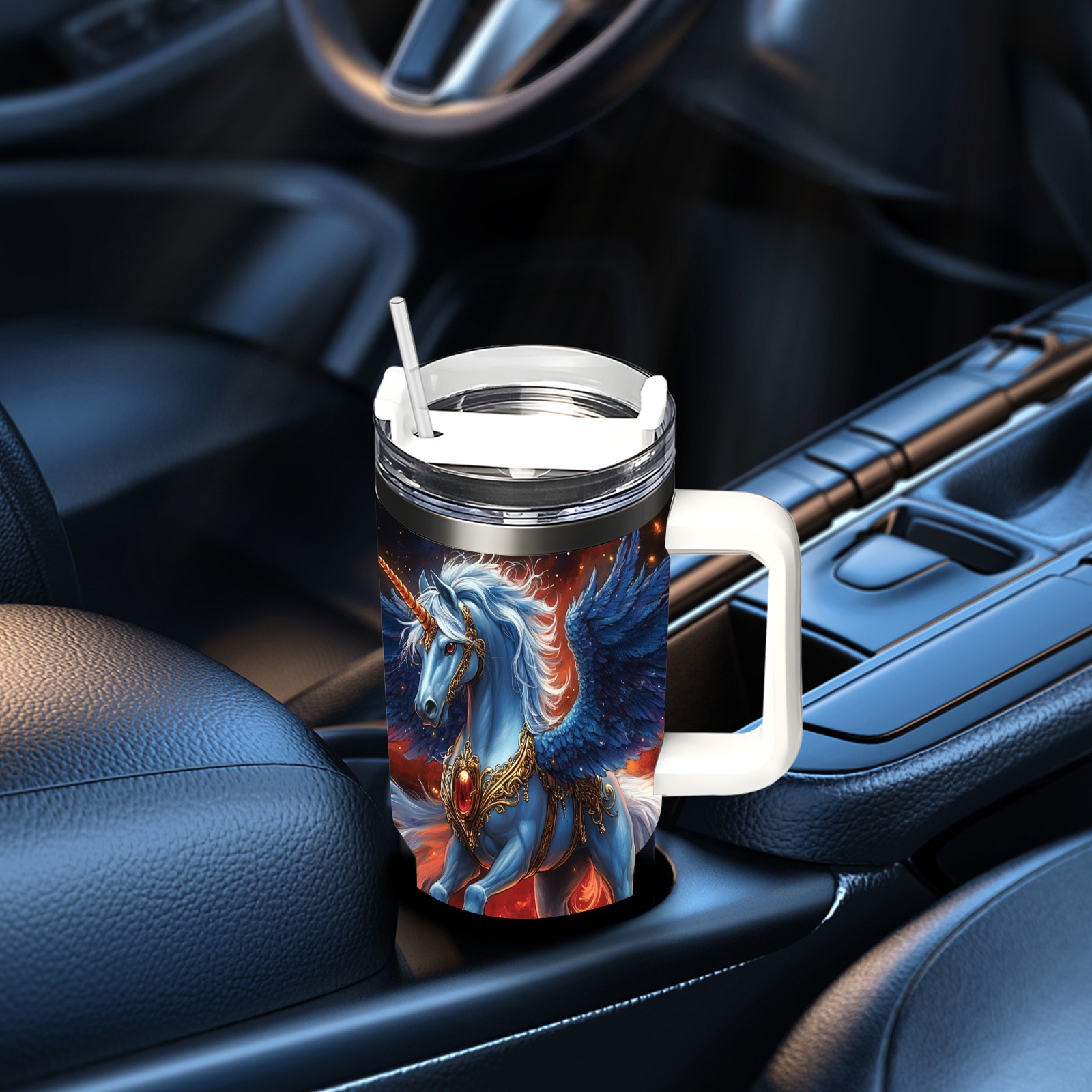 40 унций полностью напечатанный автомобильный стакан Majestic Unicorn Blue