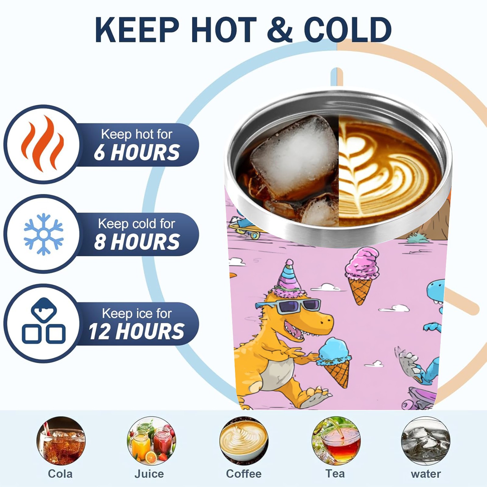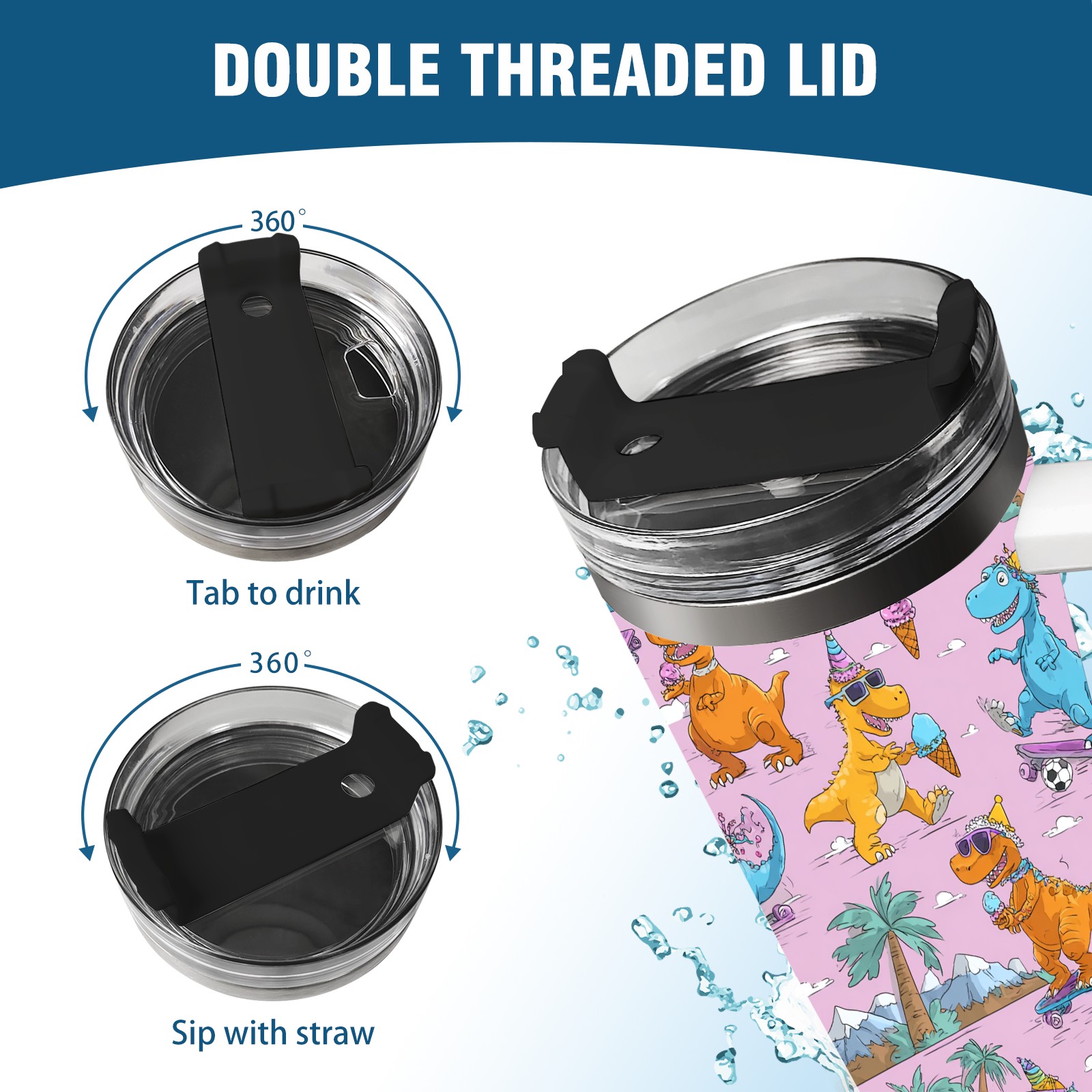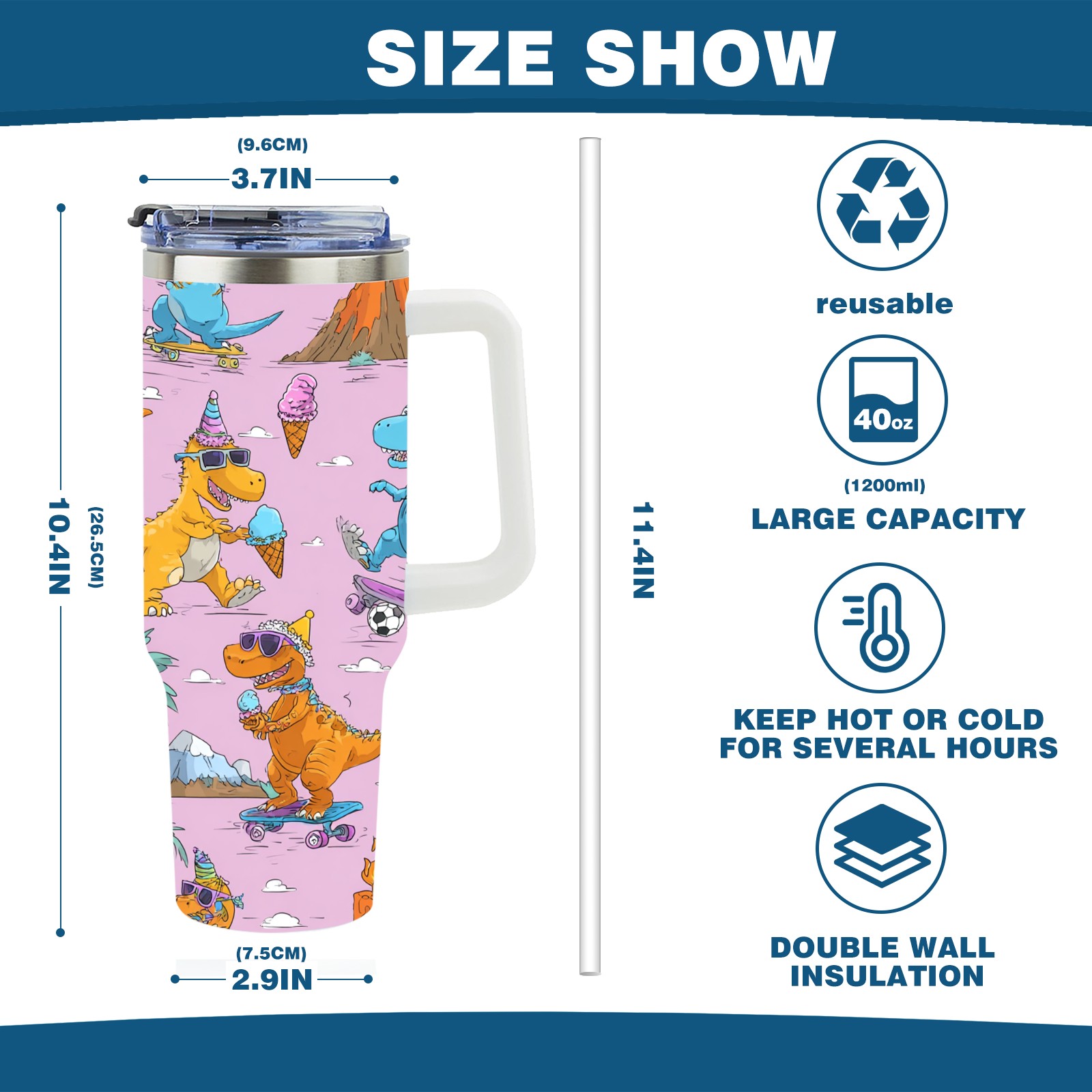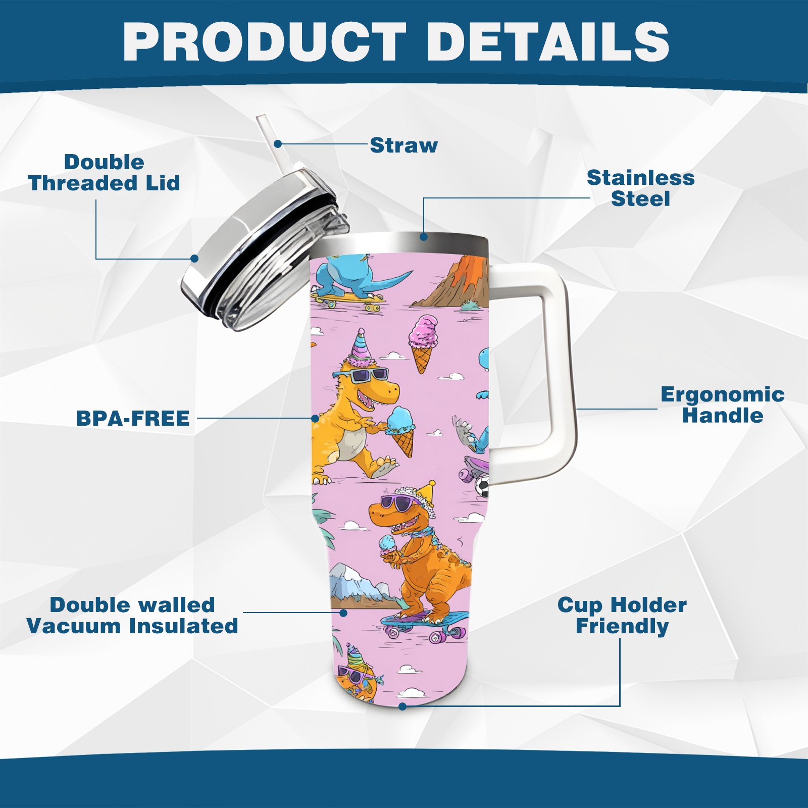 40 унций полностью напечатанный автомобильный стакан Playful Dinosaur Pink