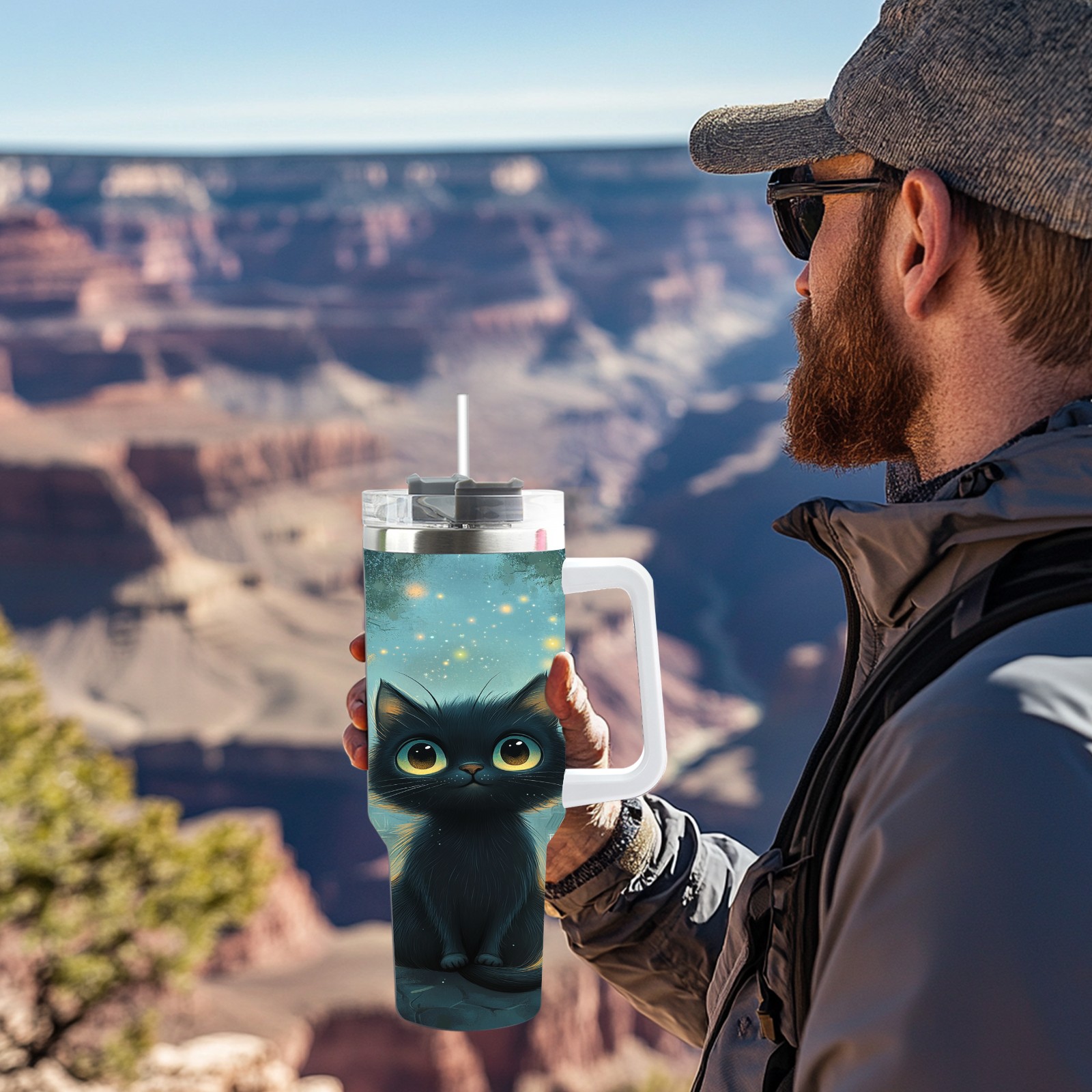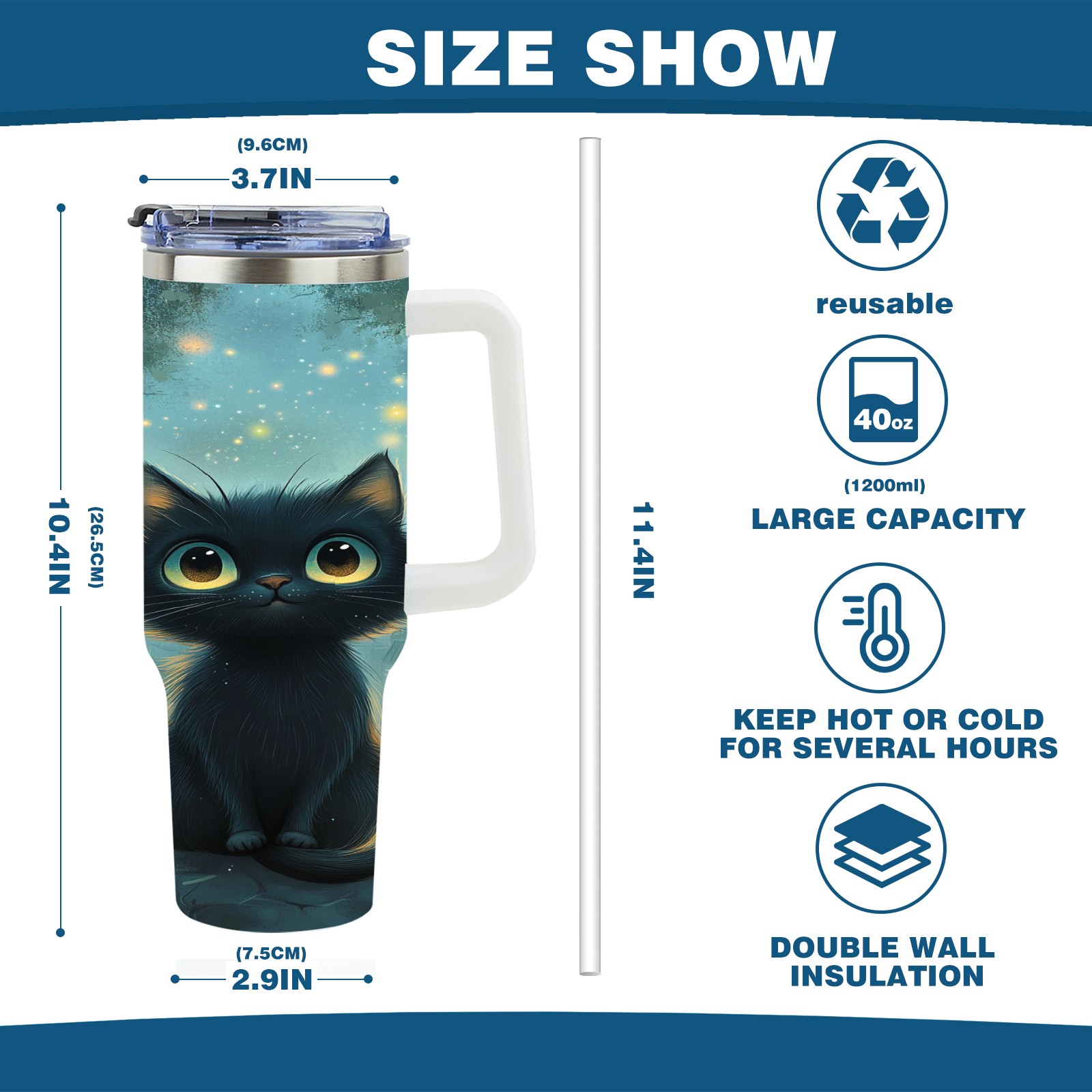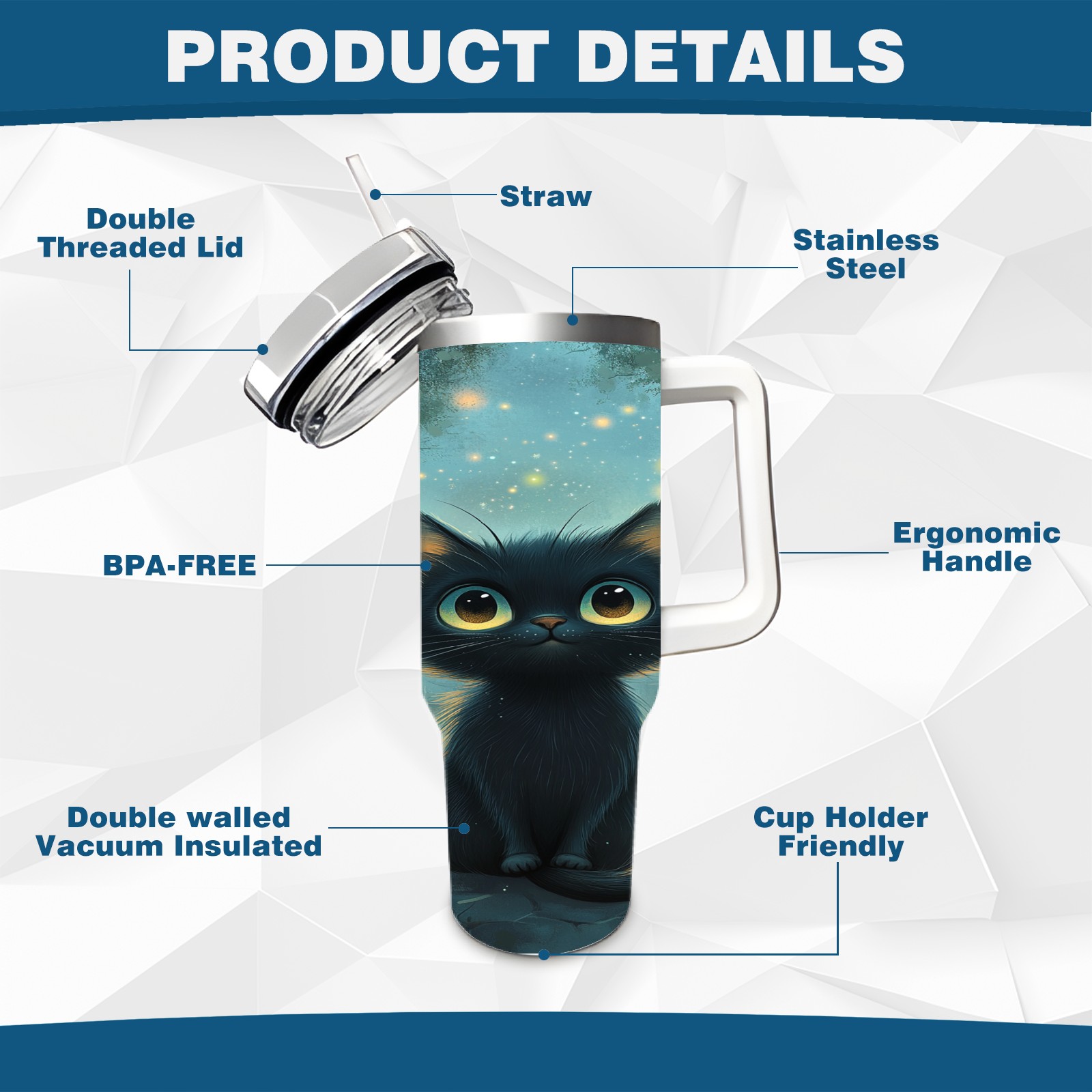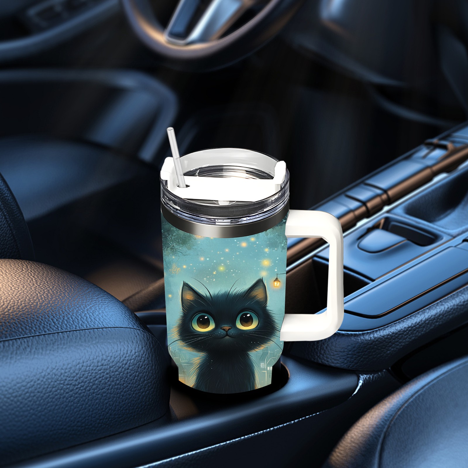 40 унций полностью напечатанный автомобильный стакан Gentle Black Cat Blue
