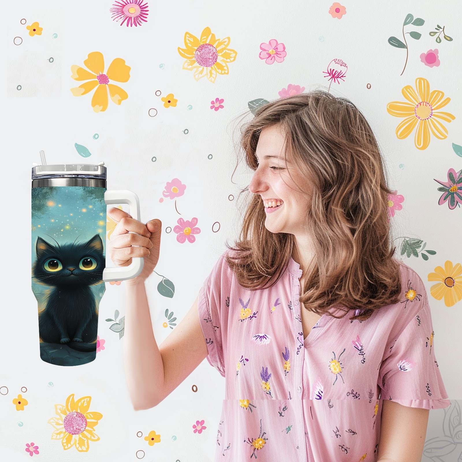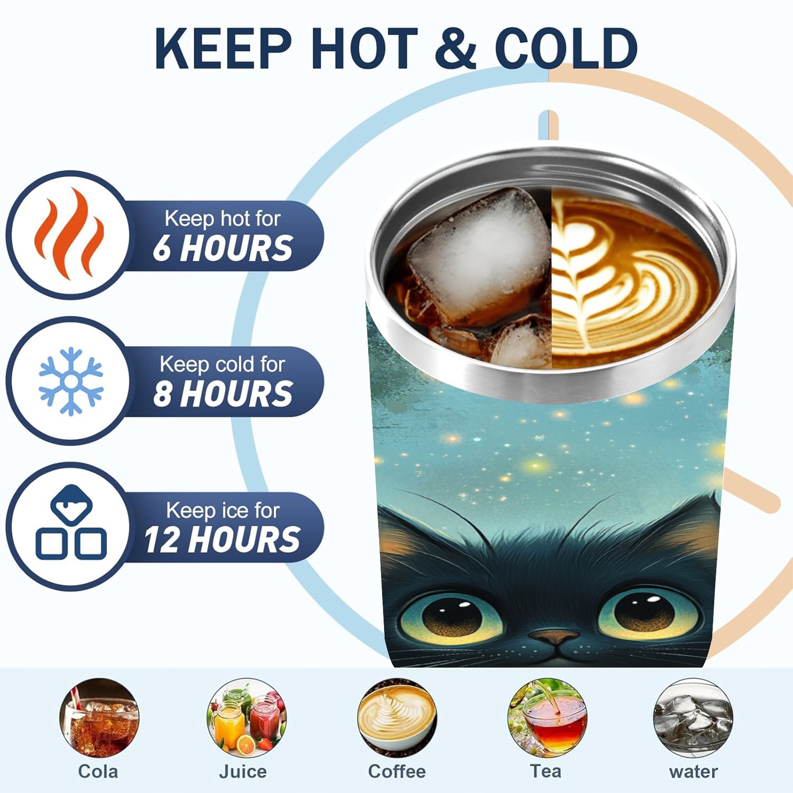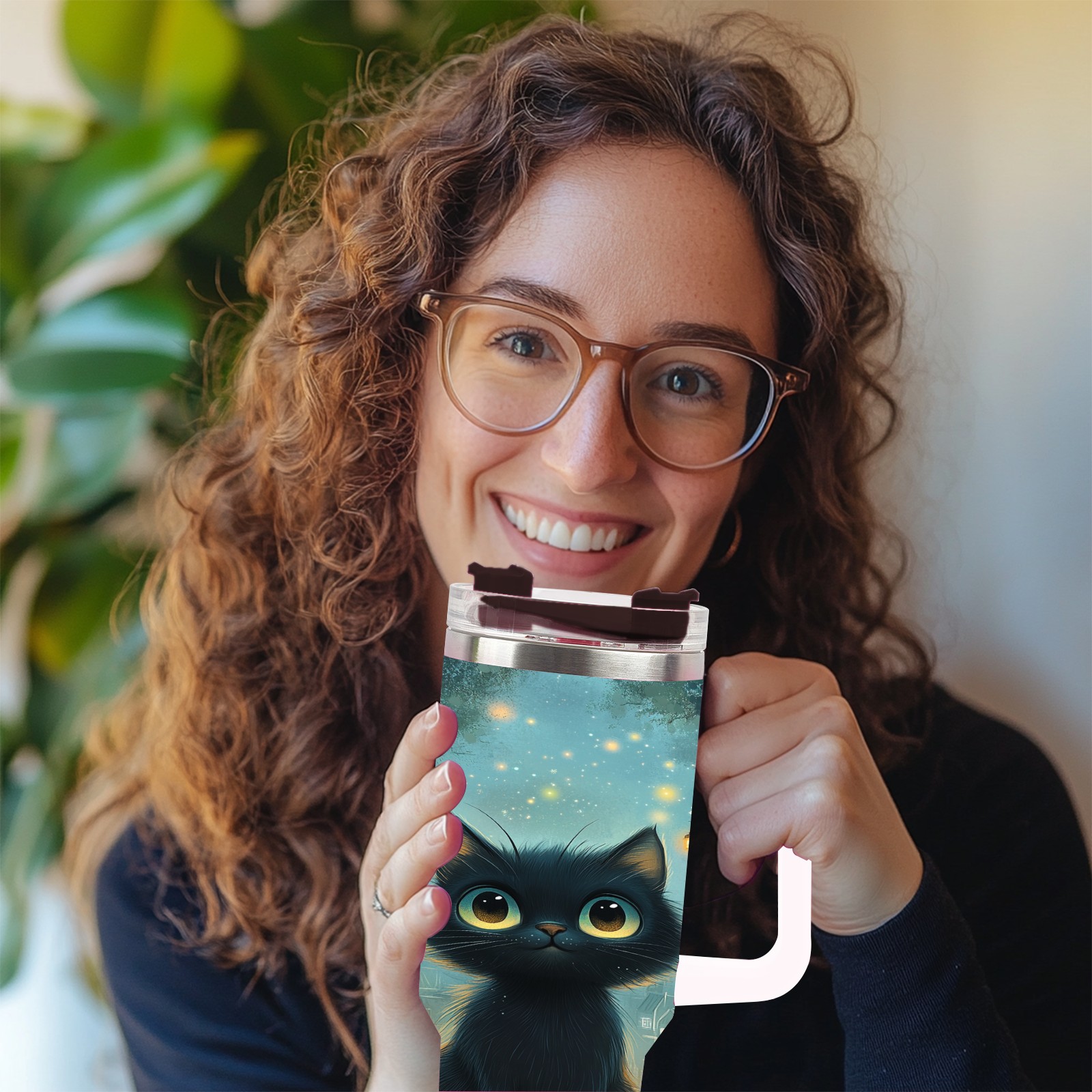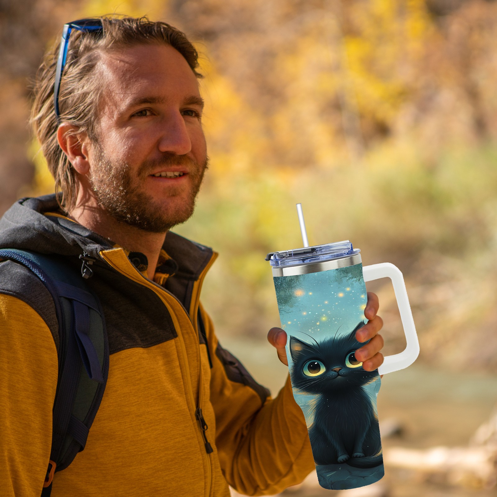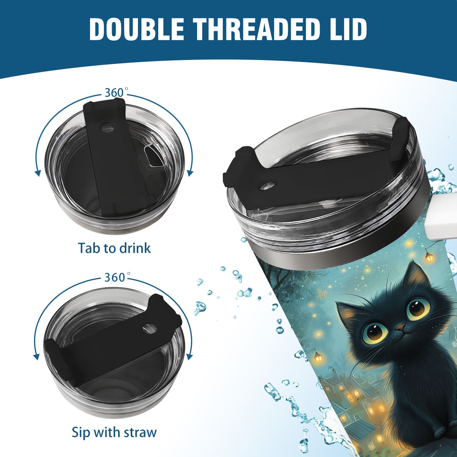 40 унций полностью напечатанный автомобильный стакан Gentle Black Cat Blue