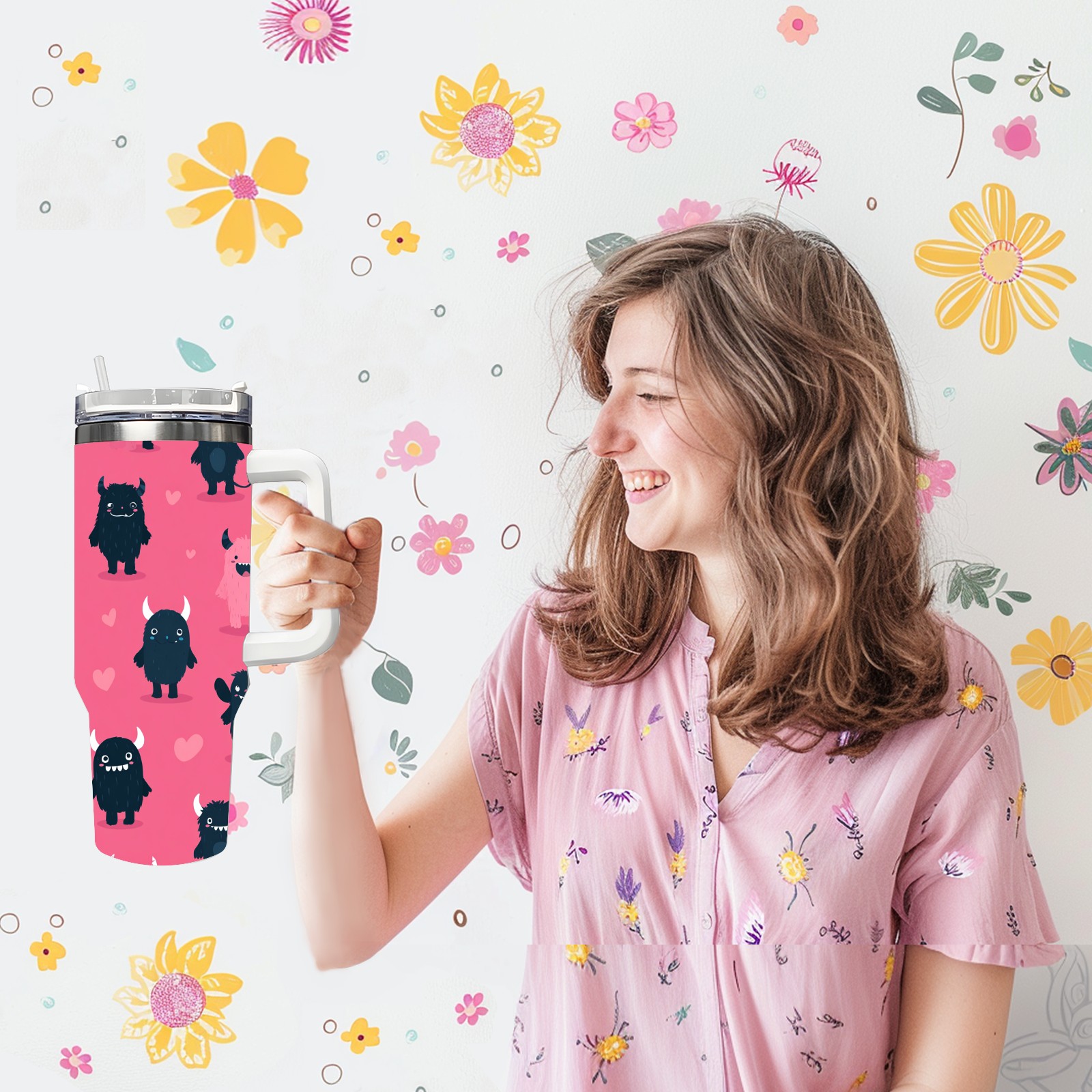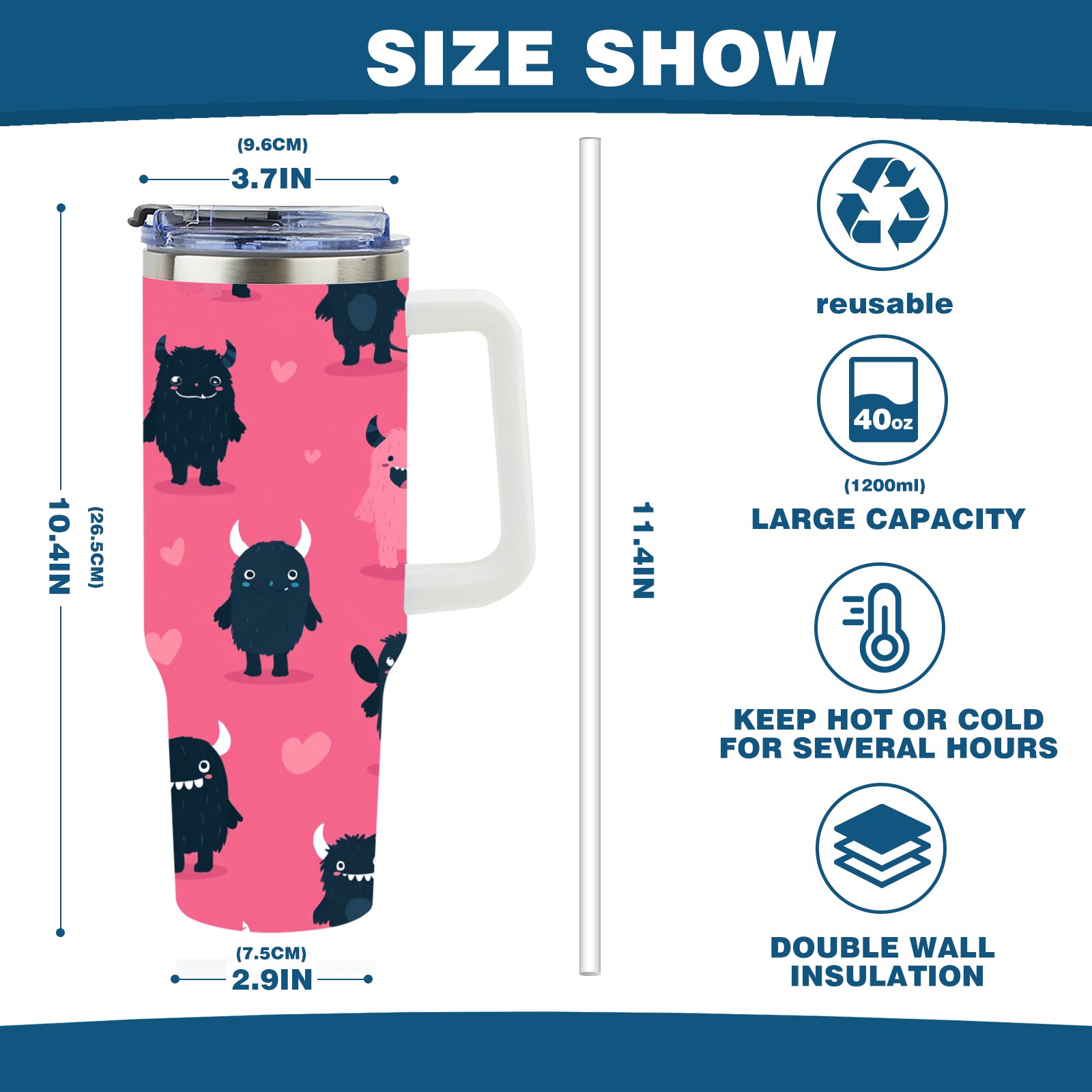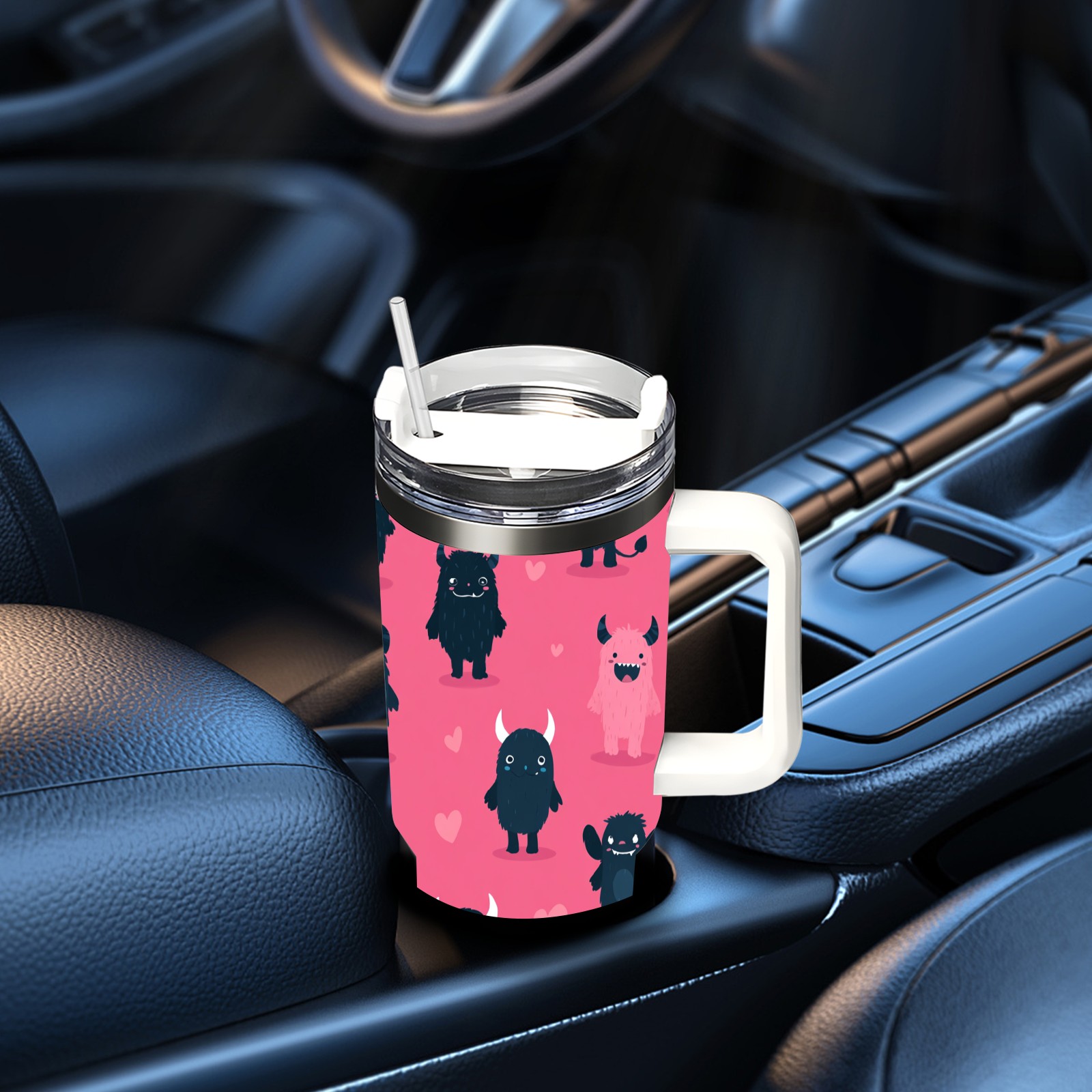 40 унций полностью напечатанный автомобильный стакан Cute Monster Pink-Black