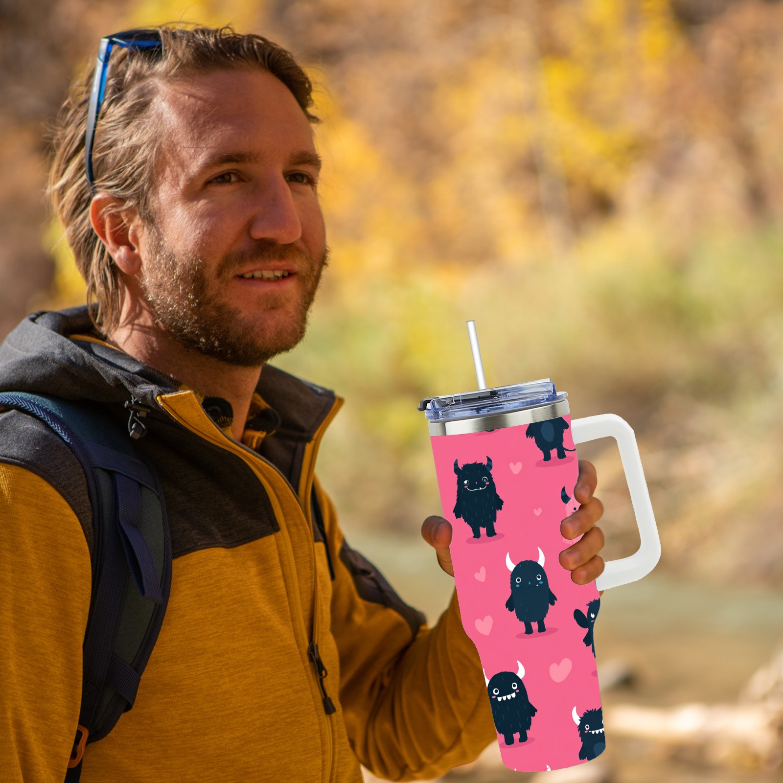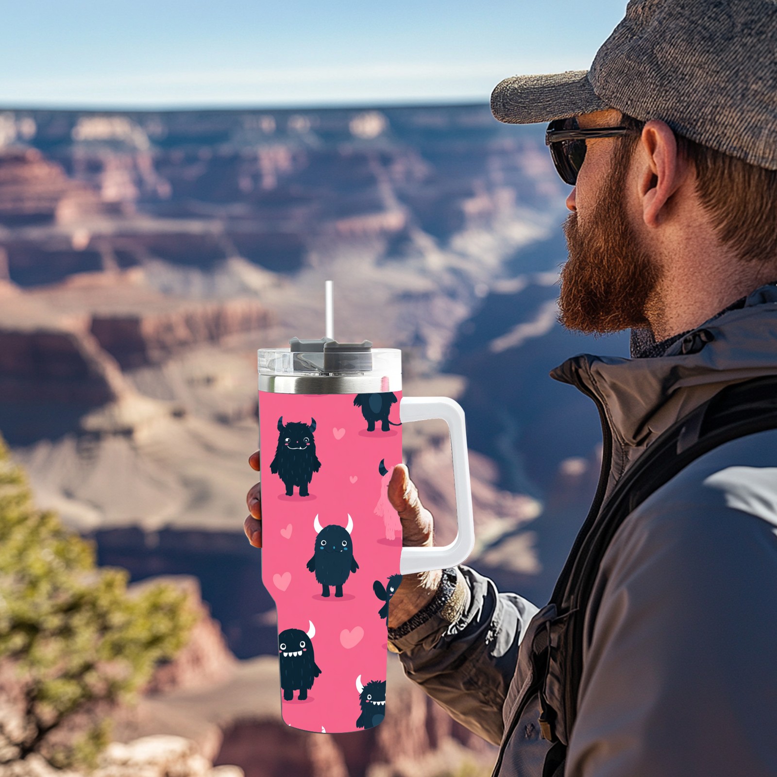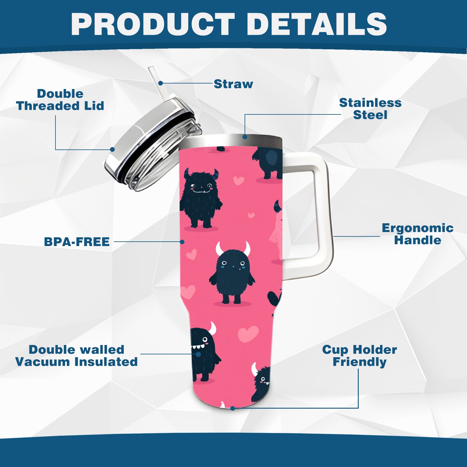 40 унций полностью напечатанный автомобильный стакан Cute Monster Pink-Black