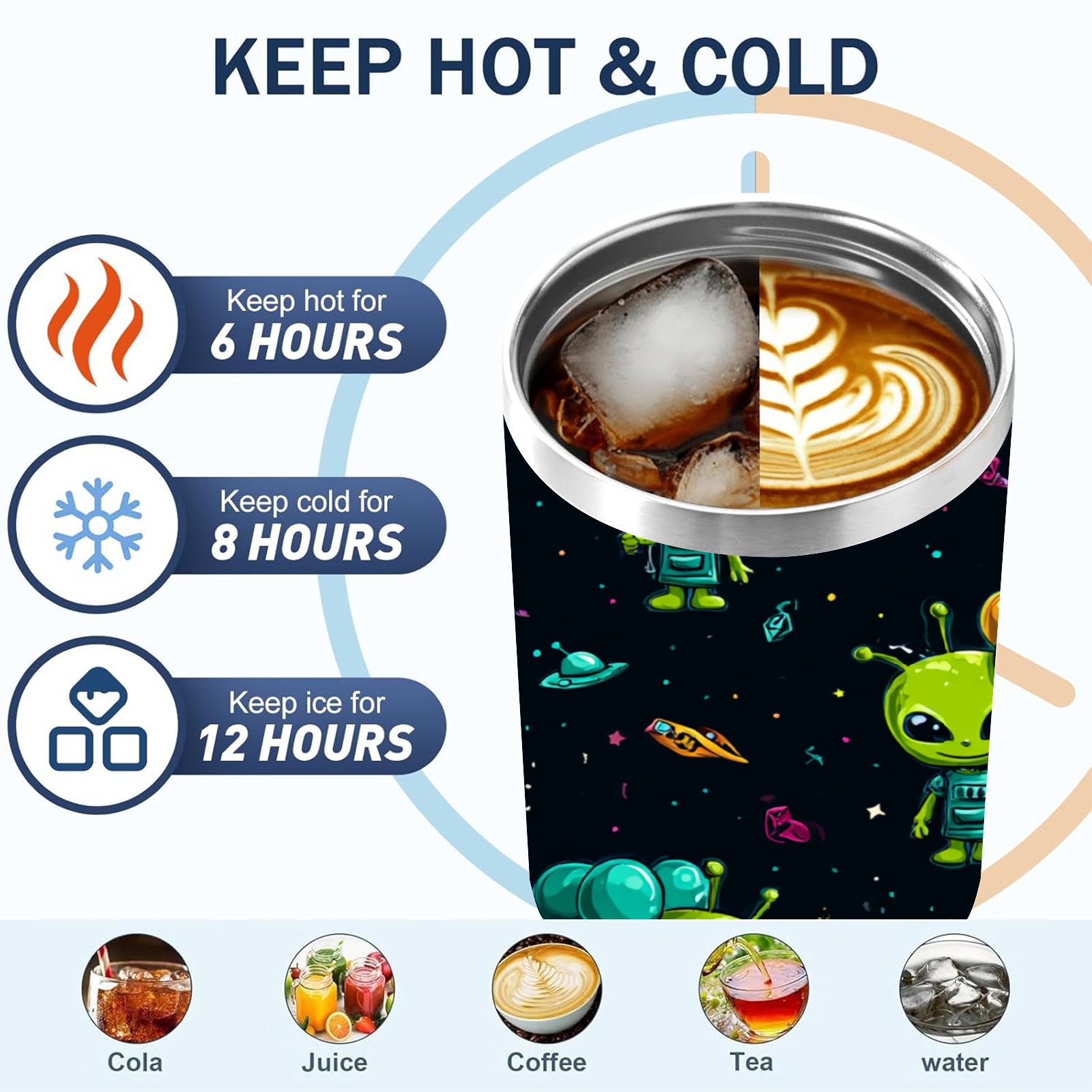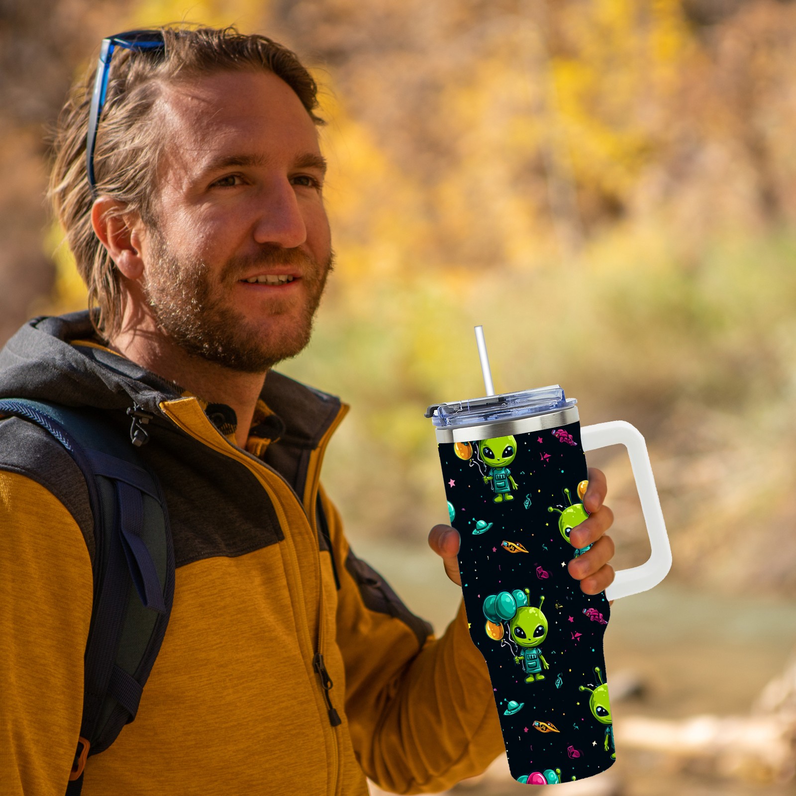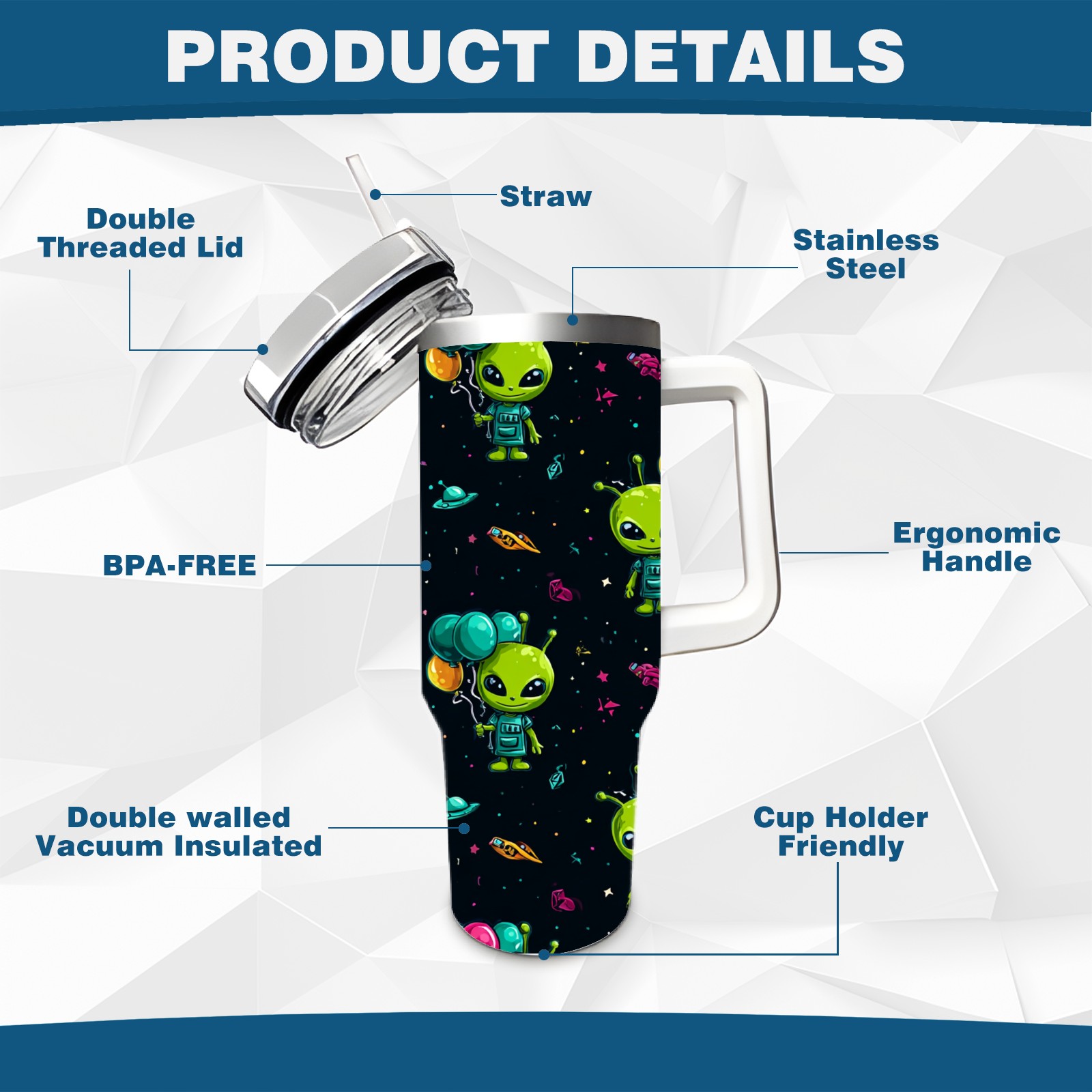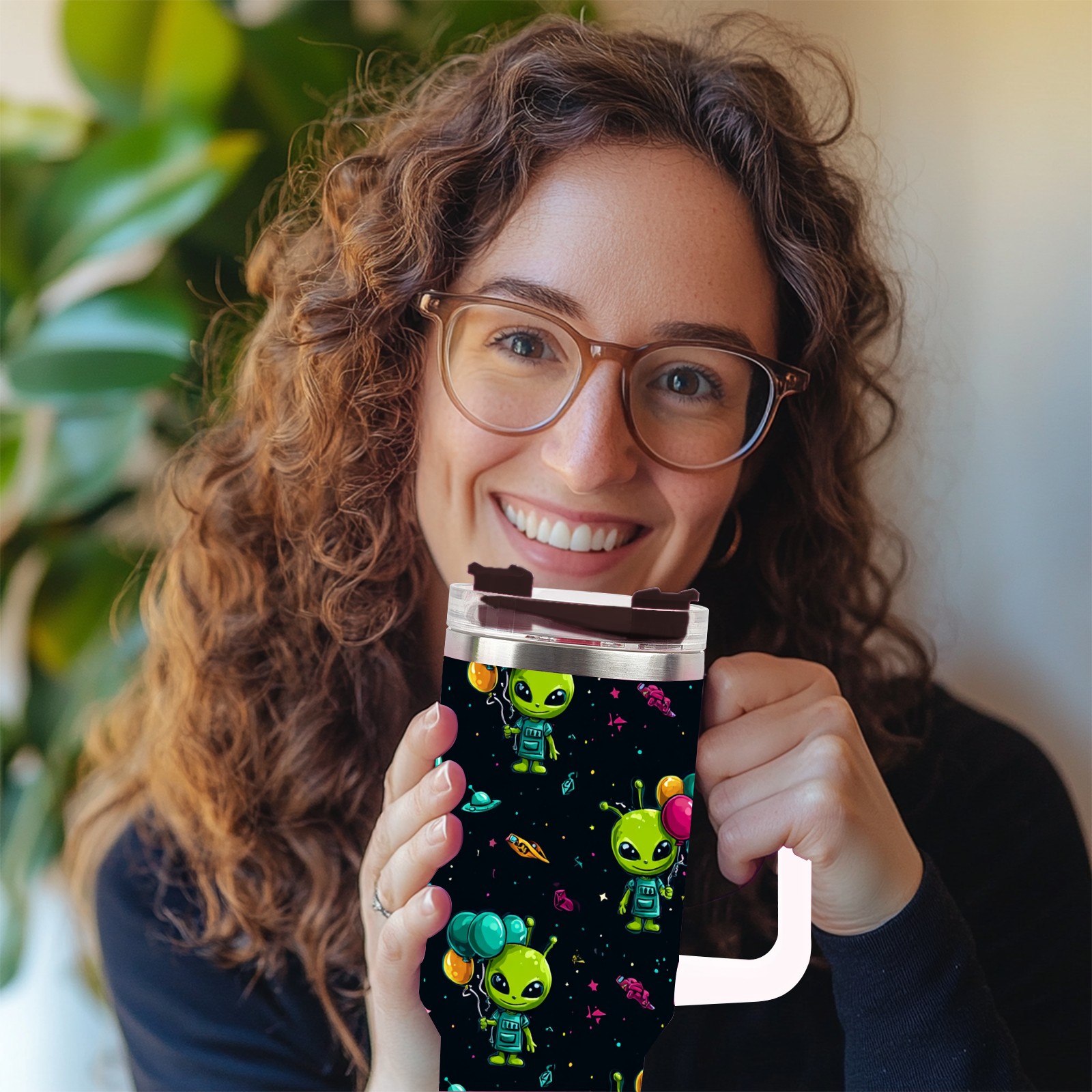 40 унций полностью напечатанный автомобильный стакан Cheerful Alien Black