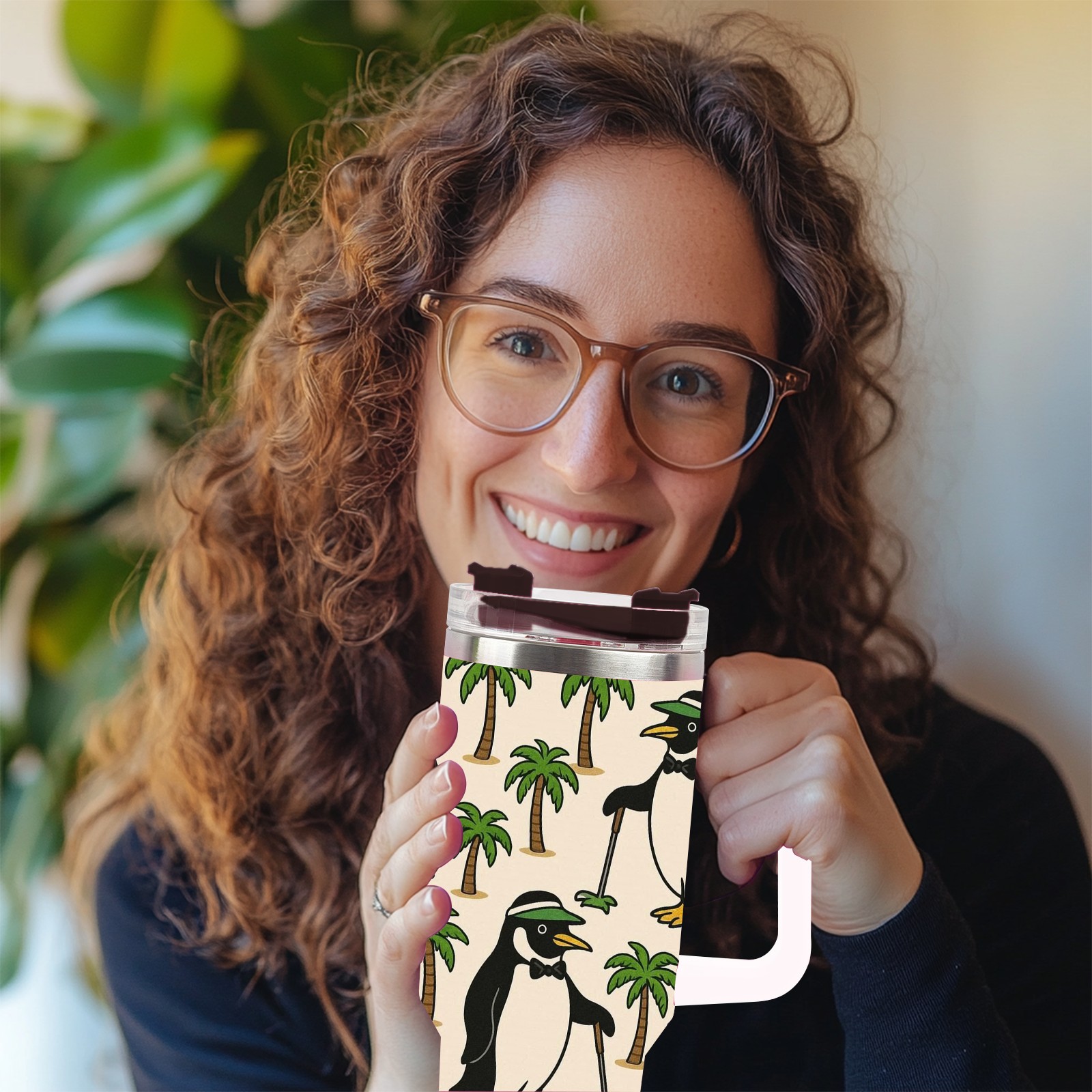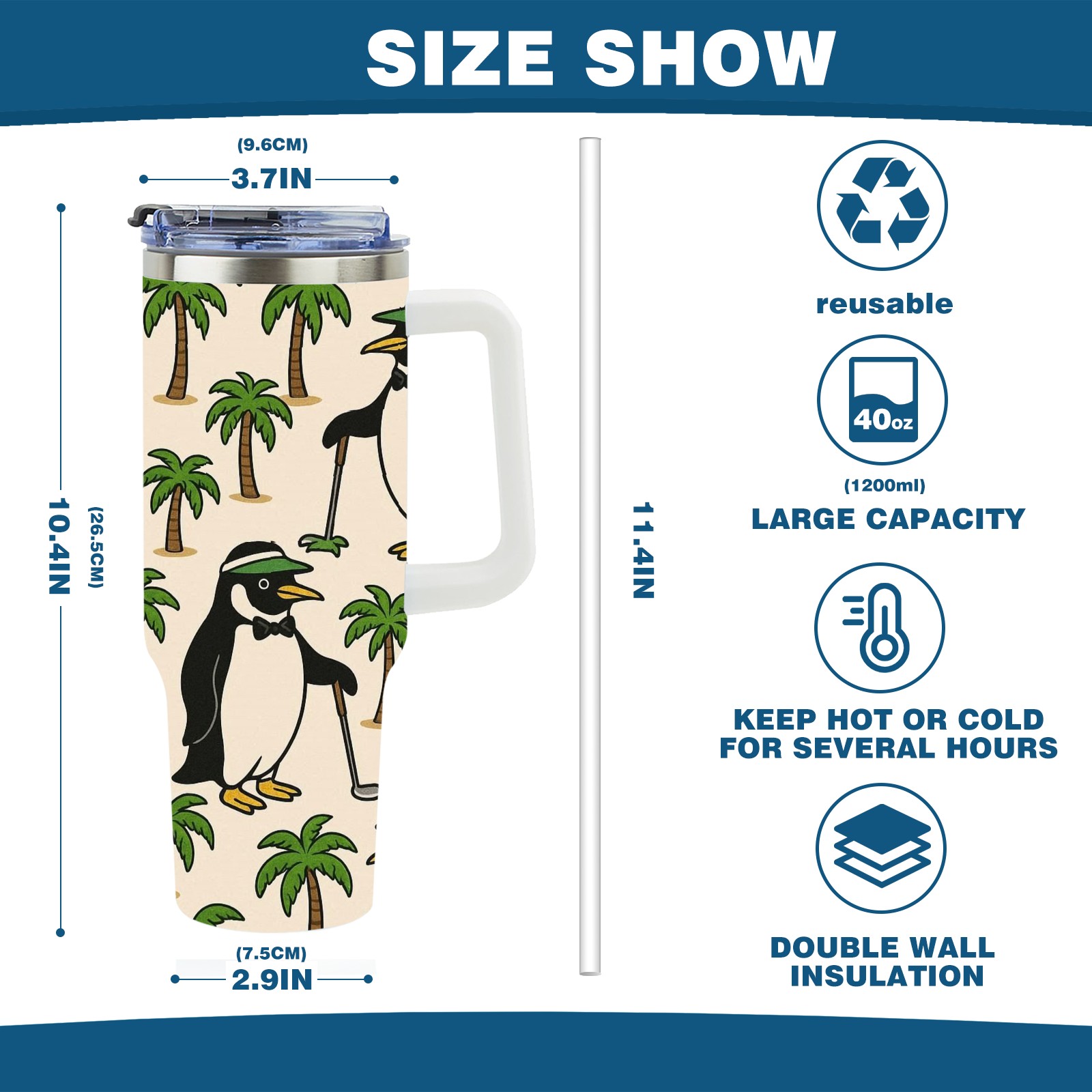 40 унций полностью напечатанный автомобильный стакан Tropical Penguin Brown