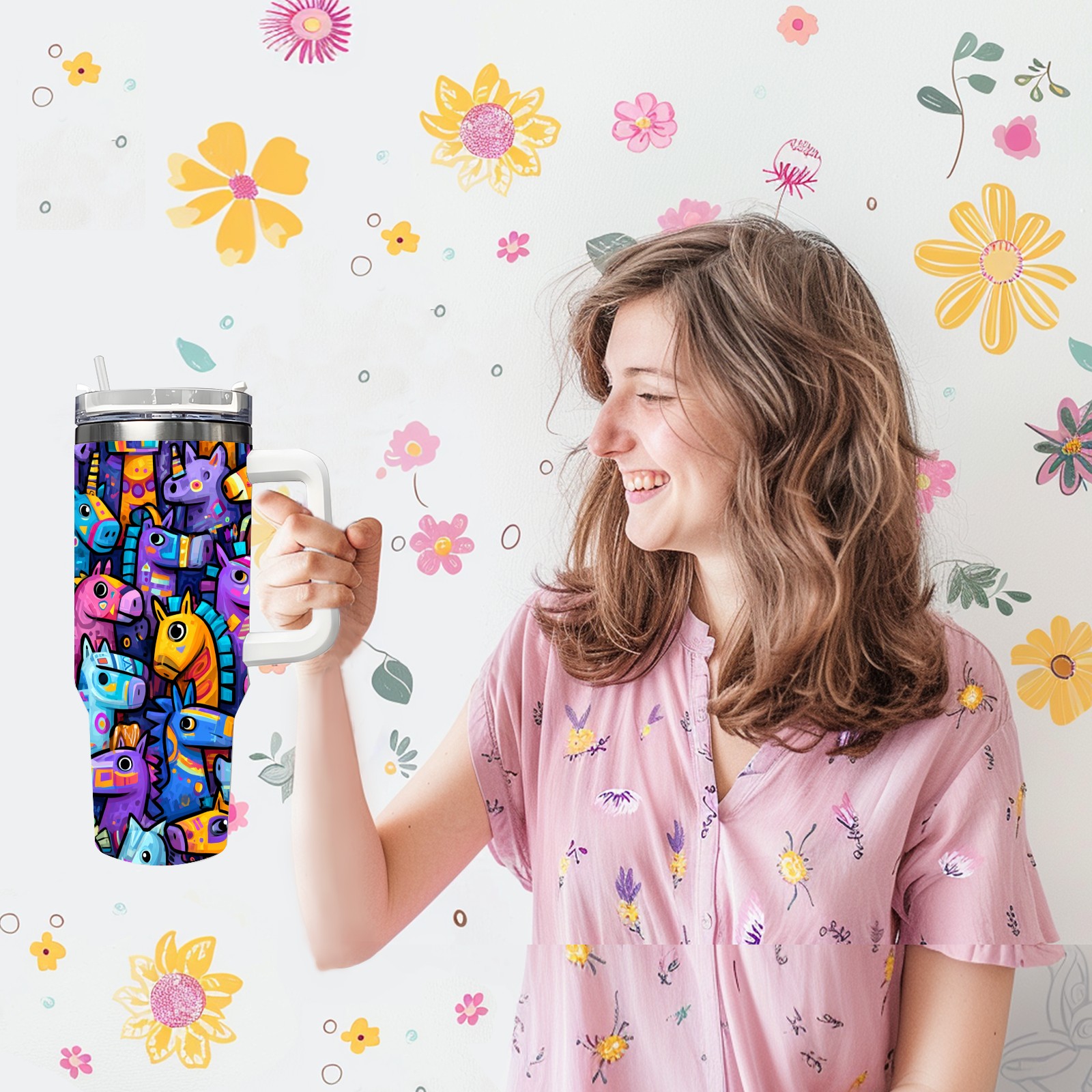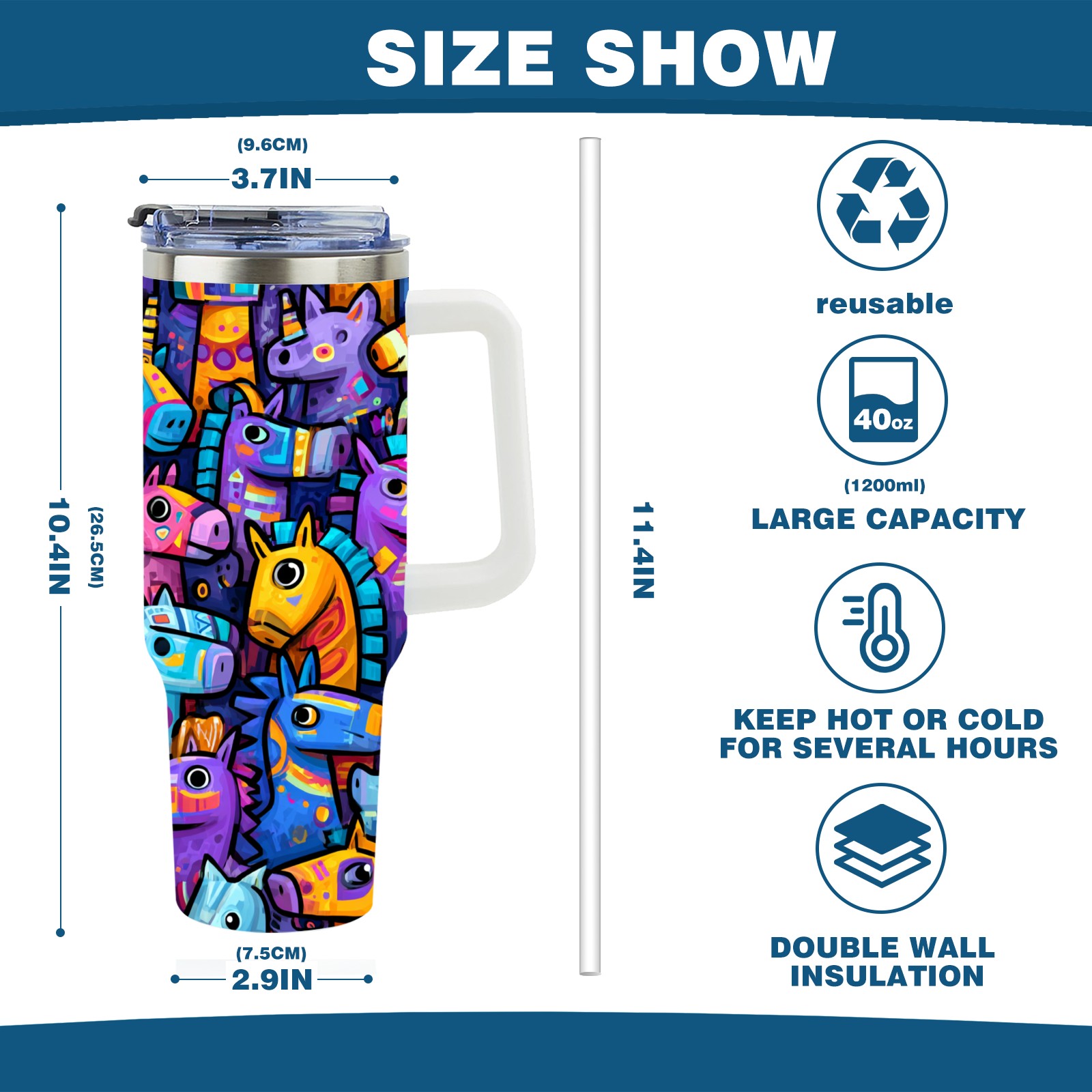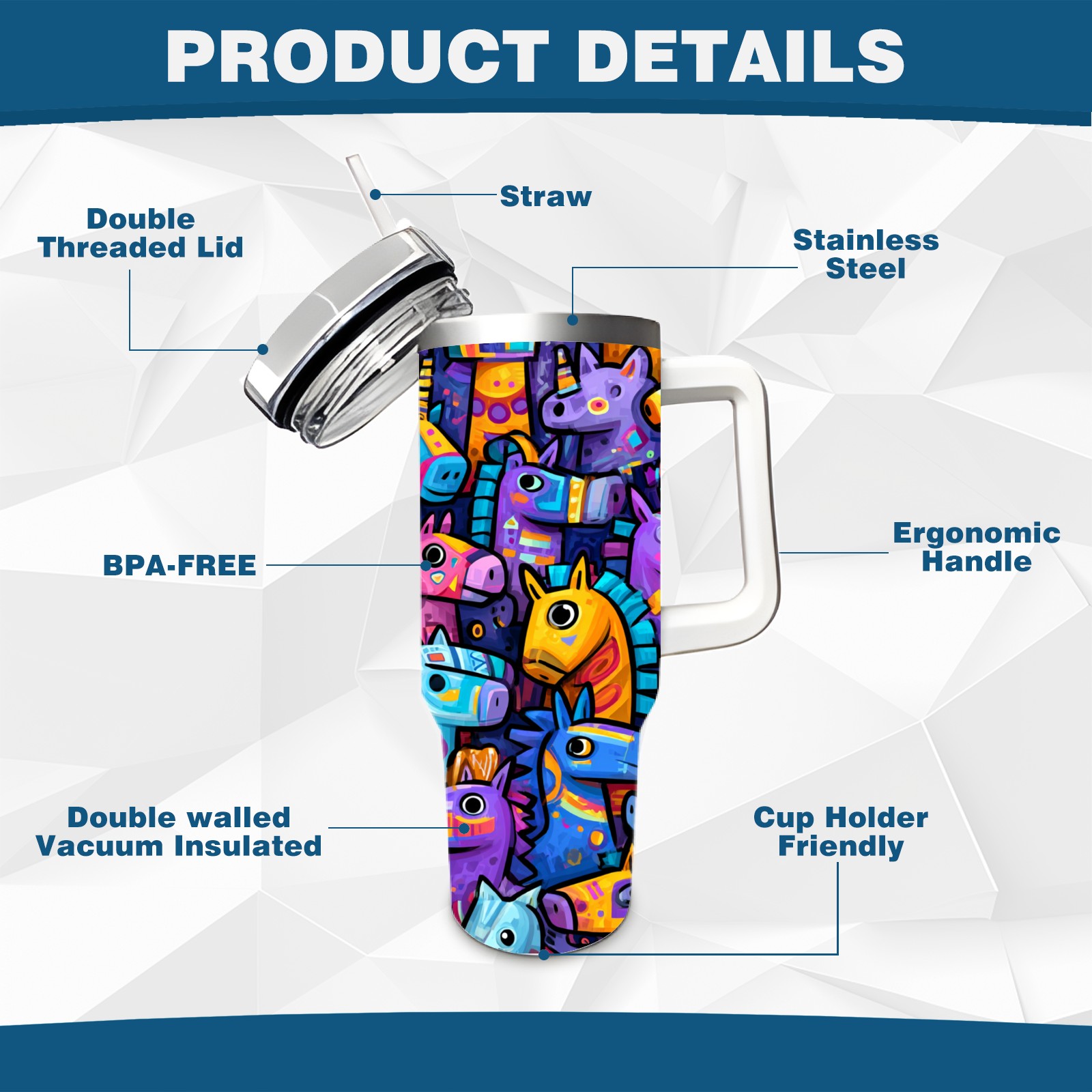 40 унций полностью напечатанный автомобильный стакан Colorful Creature Multi