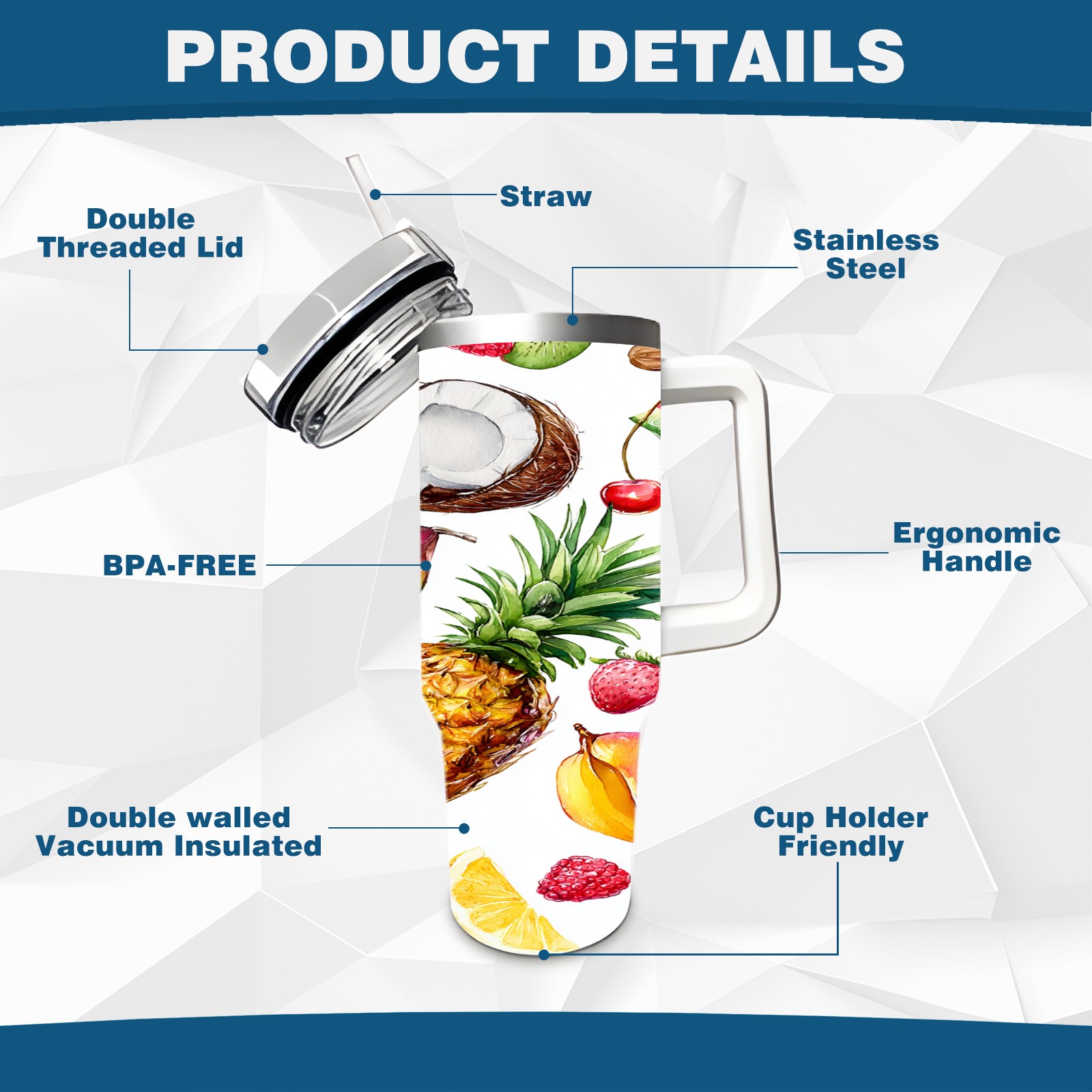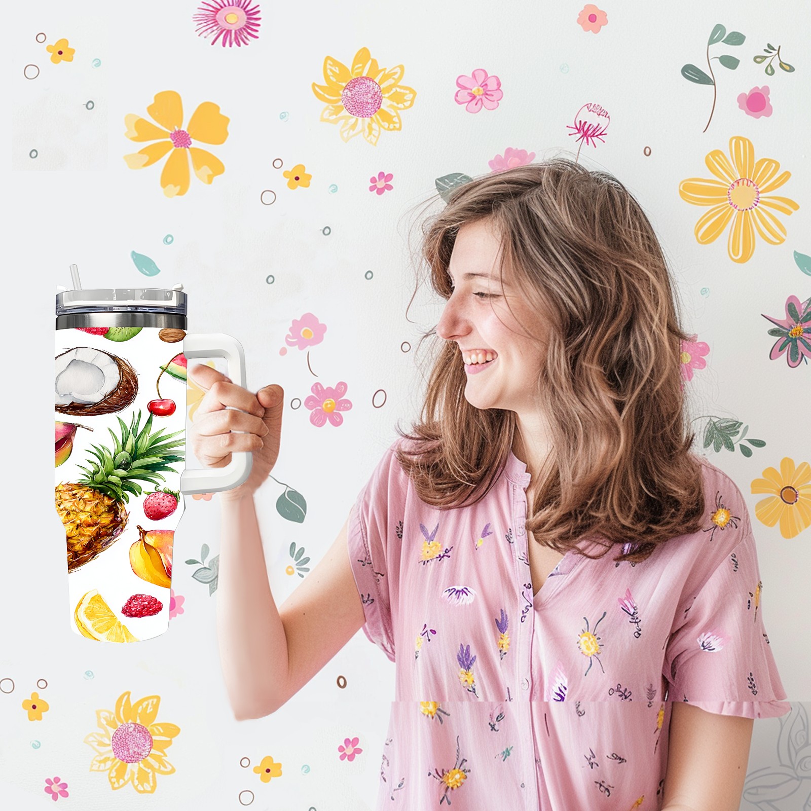 40 унций полностью напечатанный автомобильный стакан Fresh Fruit Yellow