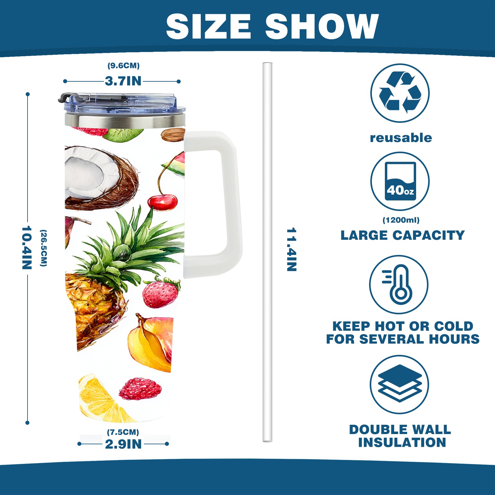 • С большой емкостью 40 унций, он обеспечивает вас гидратацией в течение всего дня, идеально подходит для воды, кофе, сока или других напитков. Эргономичный дизайн идеально вписывается в автомобильные держатели для бутылок, а прочный, герметичный колпачок предотвращает утечки во время передвижения. Путешествие. Антискользящее основание обеспечивает устойчивость, а гладкие поверхности делают уборку легкой — просто мойте вручную или кладите в посудомоечную машину (рекомендуется верхний поддон).