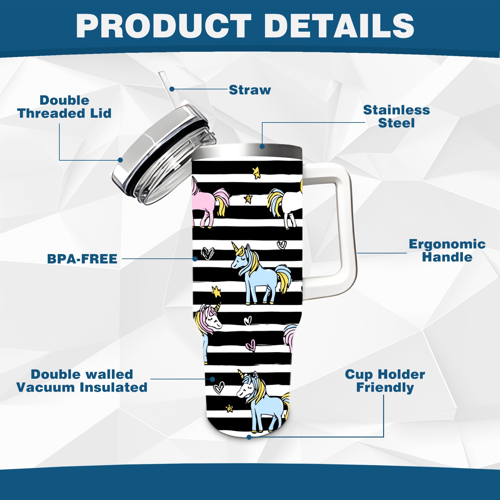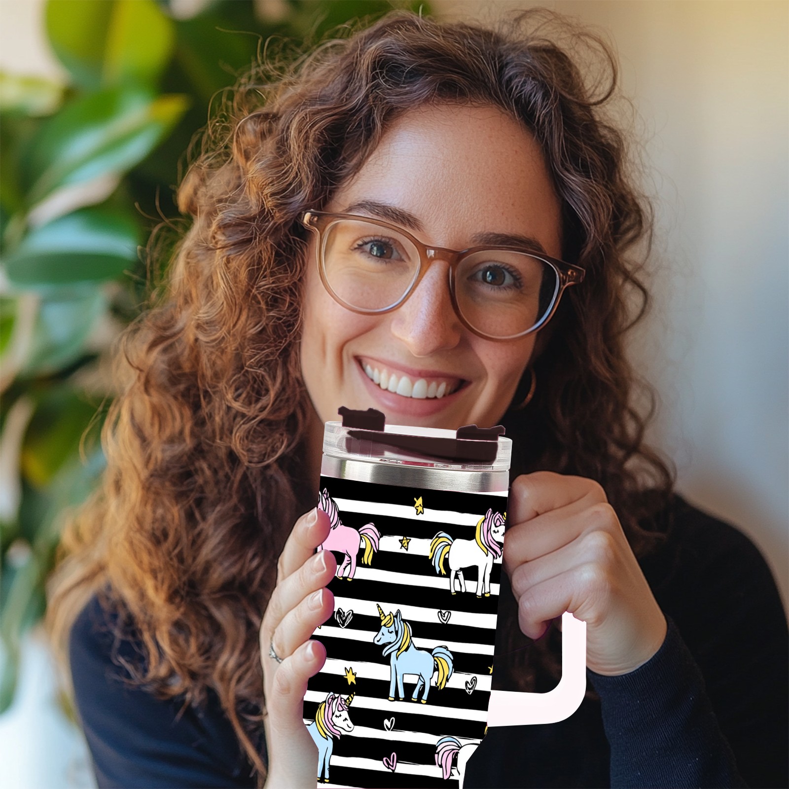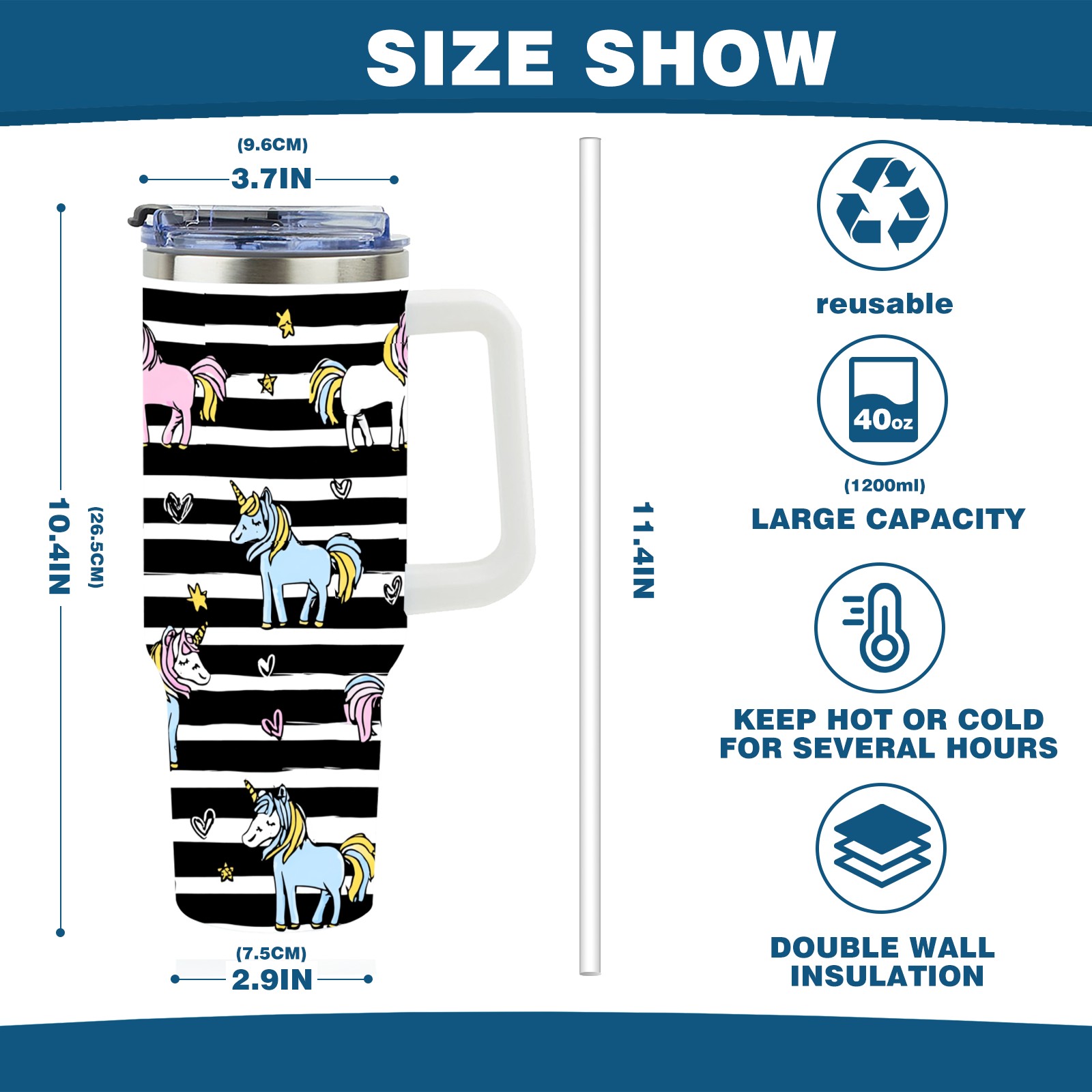 40 унций полностью напечатанный автомобильный стакан Cute Unicorn Black