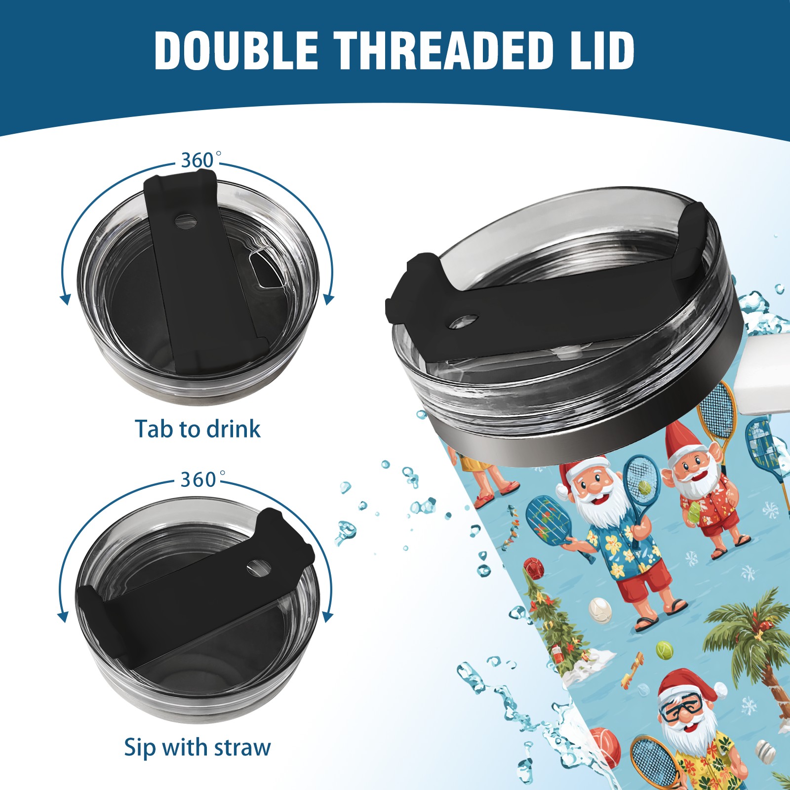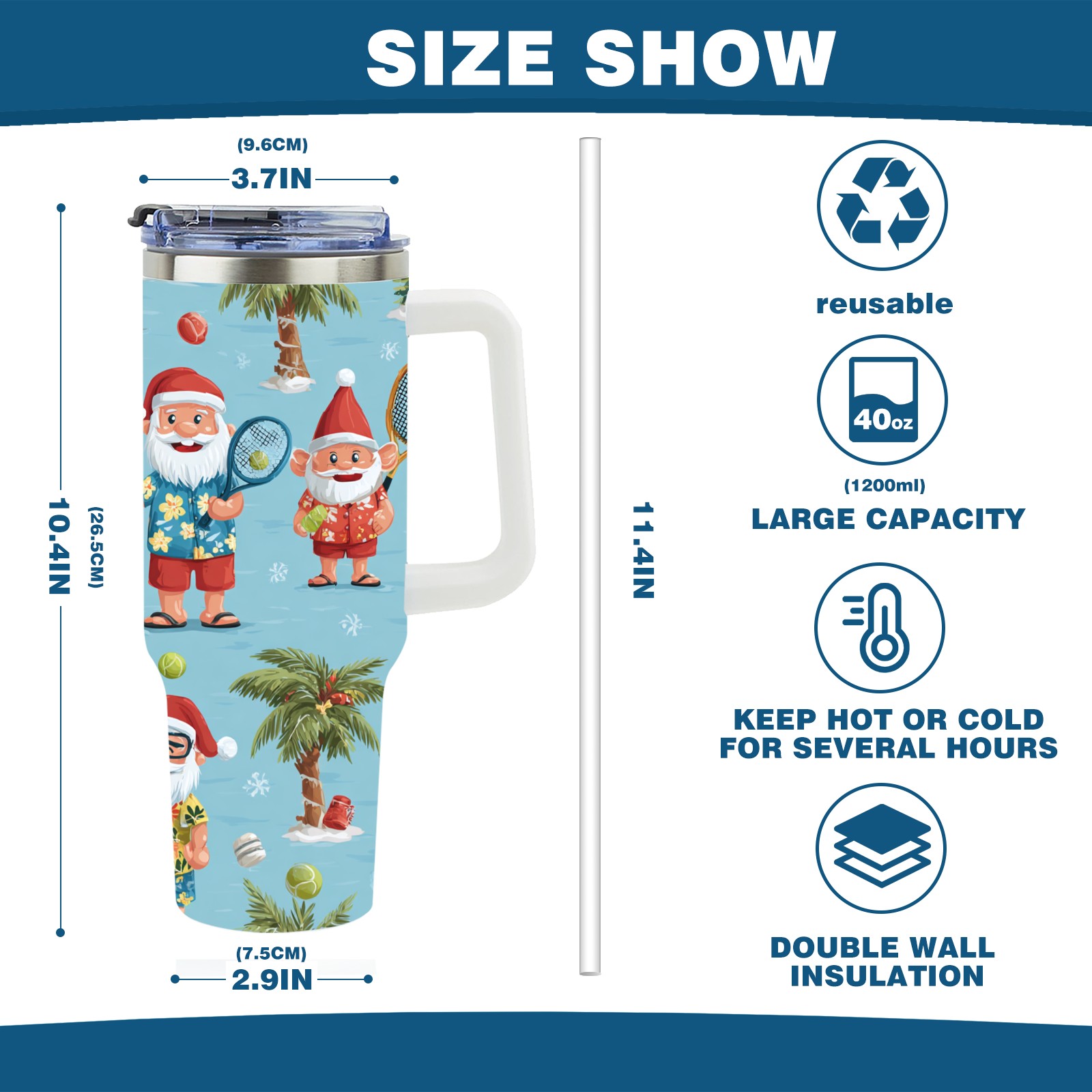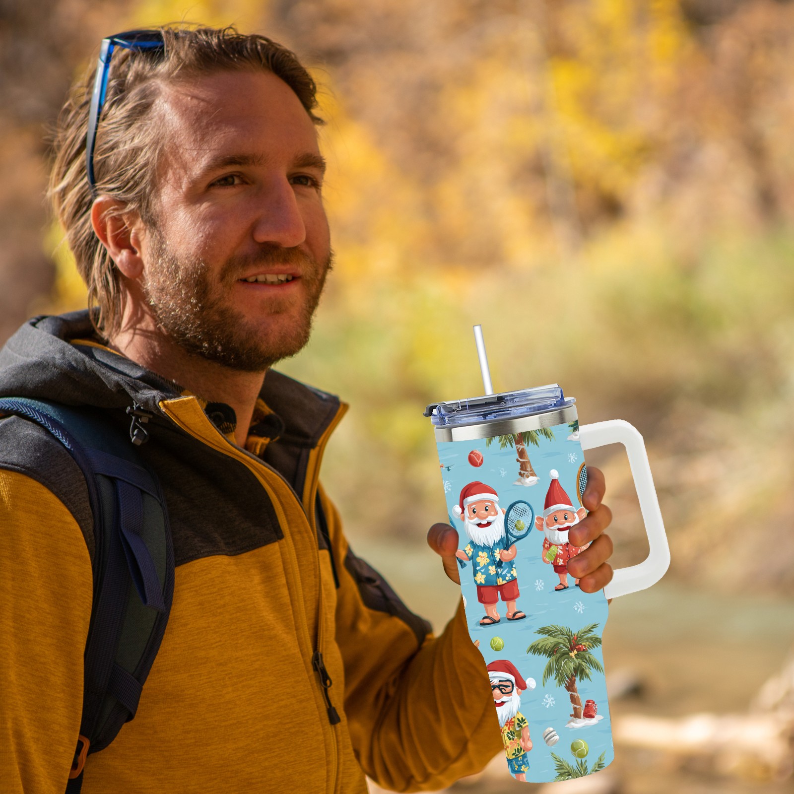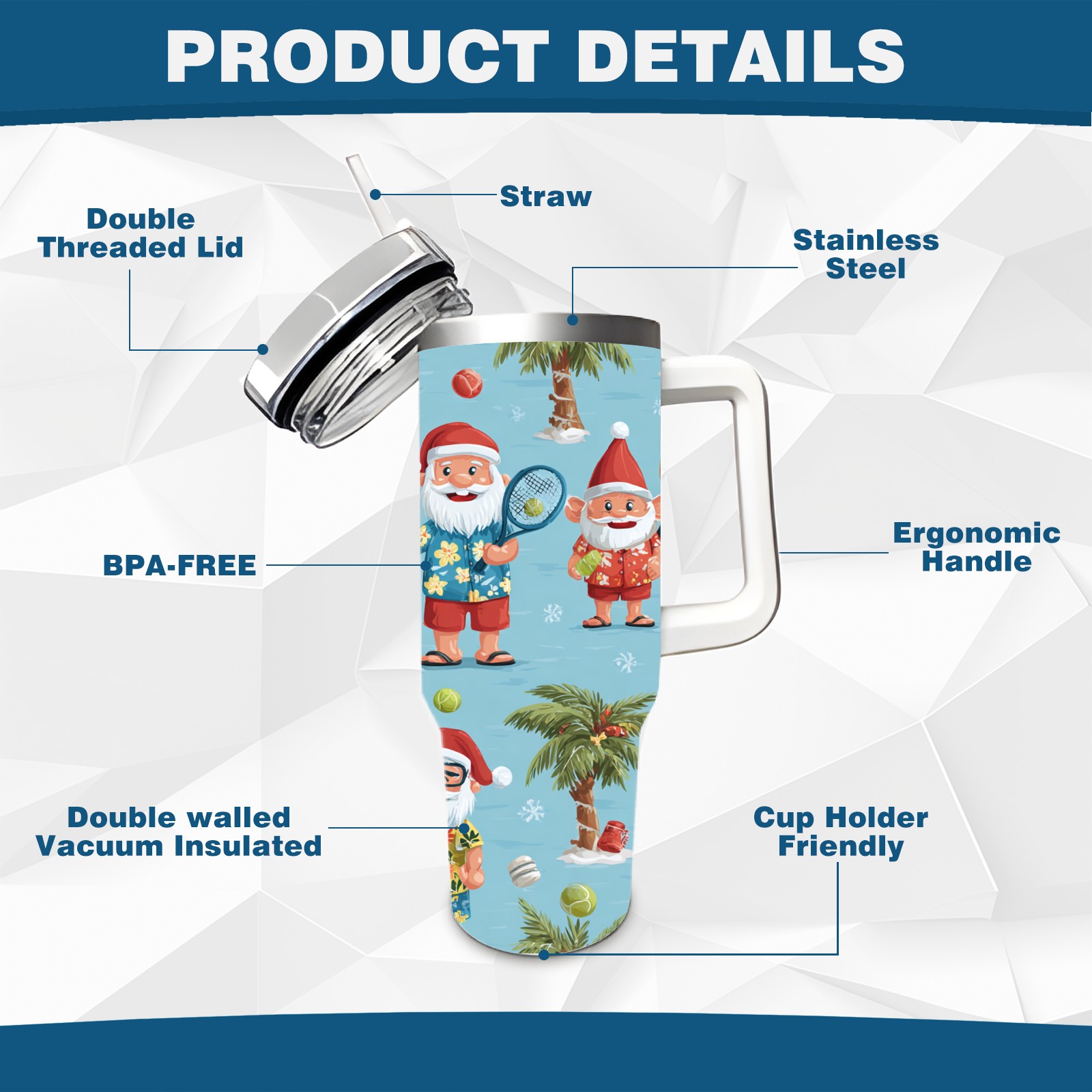 40 унций полностью напечатанный автомобильный стакан Lively Santa Blue