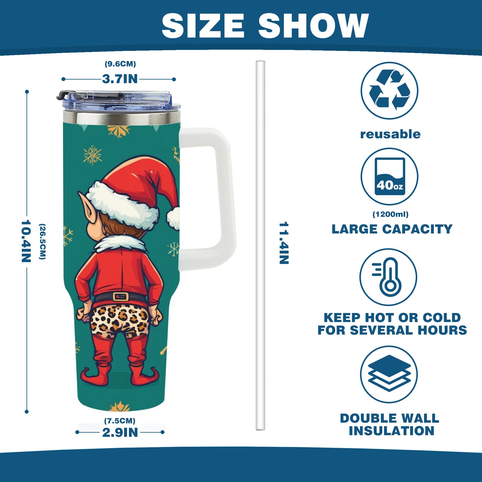 • С большой емкостью 40 унций, он обеспечивает вас гидратацией в течение всего дня, идеально подходит для воды, кофе, сока или других напитков. Эргономичный дизайн идеально вписывается в автомобильные держатели для бутылок, а прочный, герметичный колпачок предотвращает утечки во время передвижения. Путешествие. Антискользящее основание обеспечивает устойчивость, а гладкие поверхности делают уборку легкой — просто мойте вручную или кладите в посудомоечную машину (рекомендуется верхний поддон).