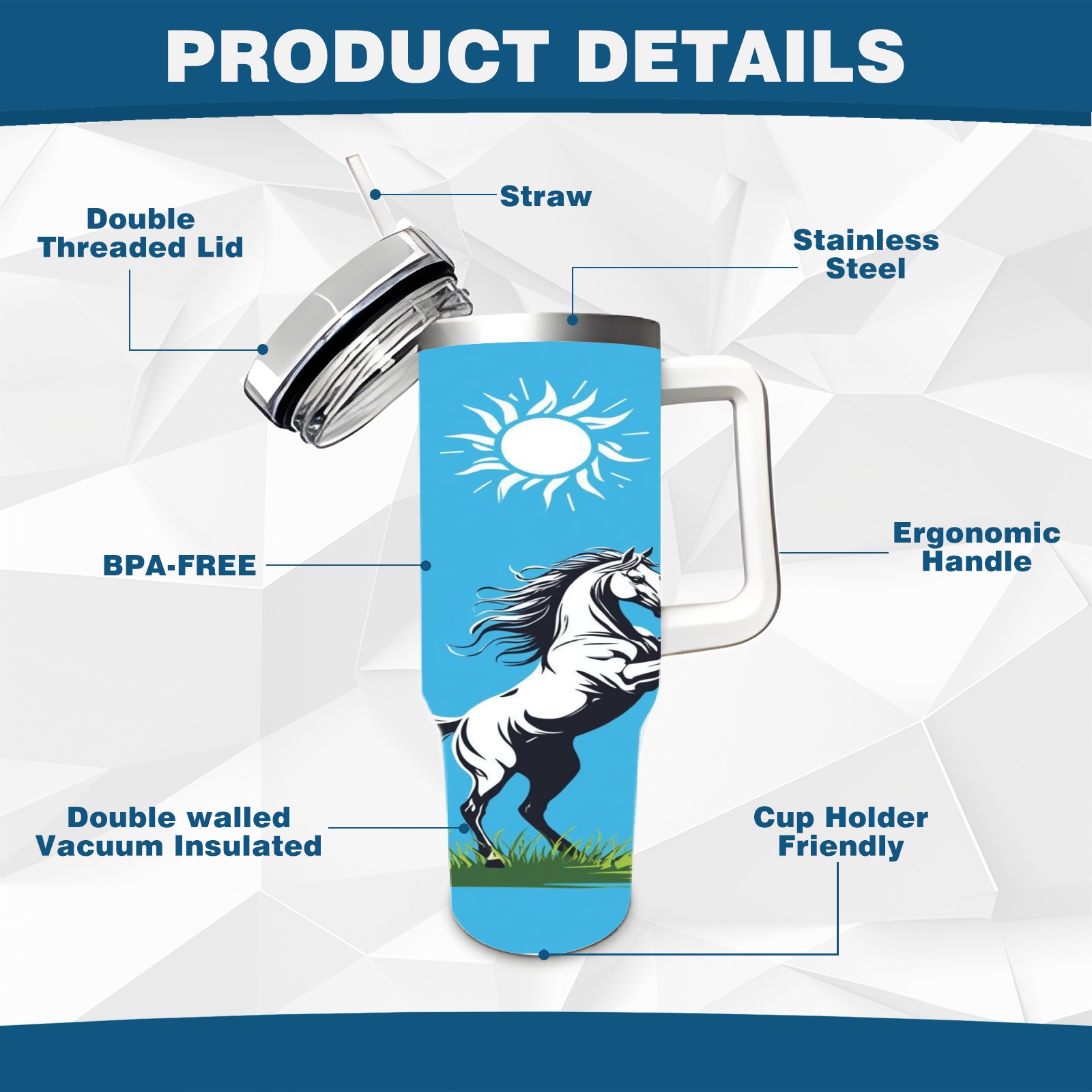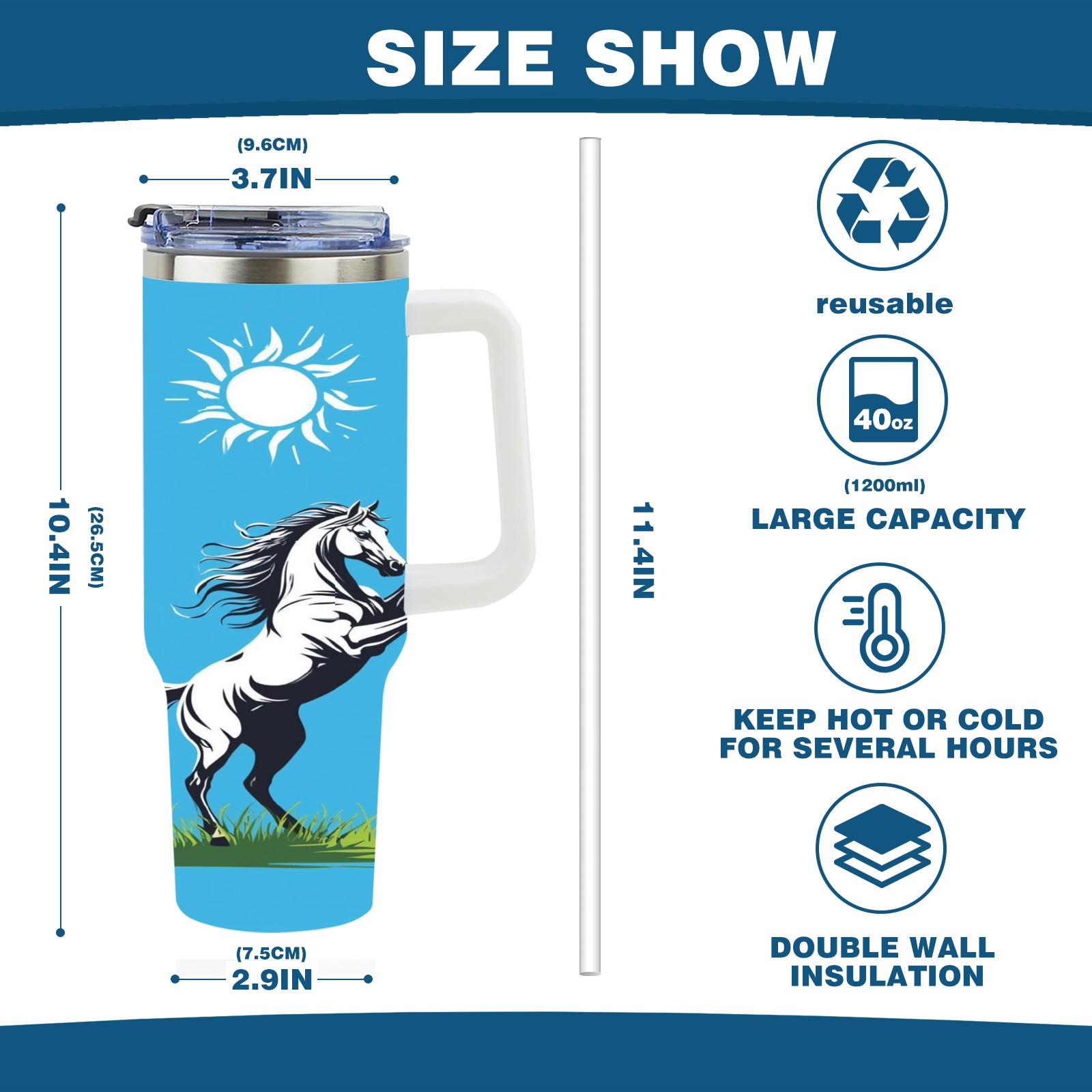• С большой емкостью 40 унций, он обеспечивает вас гидратацией в течение всего дня, идеально подходит для воды, кофе, сока или других напитков. Эргономичный дизайн идеально вписывается в автомобильные держатели для бутылок, а прочный, герметичный колпачок предотвращает утечки во время передвижения. Путешествие. Антискользящее основание обеспечивает устойчивость, а гладкие поверхности делают уборку легкой — просто мойте вручную или кладите в посудомоечную машину (рекомендуется верхний поддон).