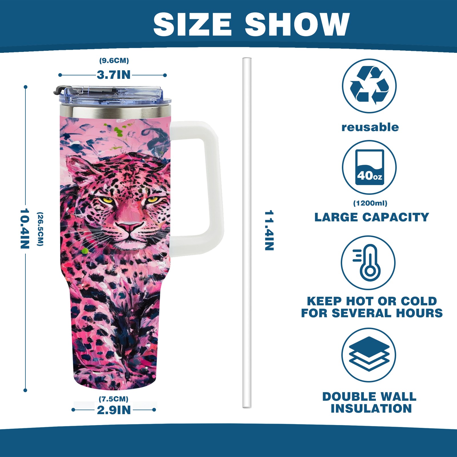 • С большой емкостью 40 унций, он обеспечивает вас гидратацией в течение всего дня, идеально подходит для воды, кофе, сока или других напитков. Эргономичный дизайн идеально вписывается в автомобильные держатели для бутылок, а прочный, герметичный колпачок предотвращает утечки во время передвижения. Путешествие. Антискользящее основание обеспечивает устойчивость, а гладкие поверхности делают уборку легкой — просто мойте вручную или кладите в посудомоечную машину (рекомендуется верхний поддон).