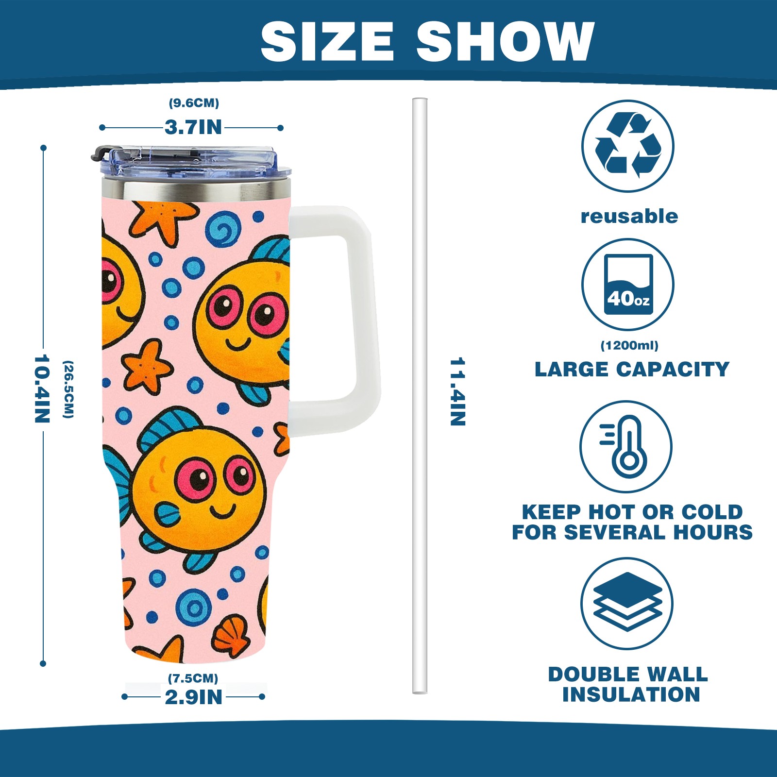 • С большой емкостью 40 унций, он обеспечивает вас гидратацией в течение всего дня, идеально подходит для воды, кофе, сока или других напитков. Эргономичный дизайн идеально вписывается в автомобильные держатели для бутылок, а прочный, герметичный колпачок предотвращает утечки во время передвижения. Путешествие. Антискользящее основание обеспечивает устойчивость, а гладкие поверхности делают уборку легкой — просто мойте вручную или кладите в посудомоечную машину (рекомендуется верхний поддон).