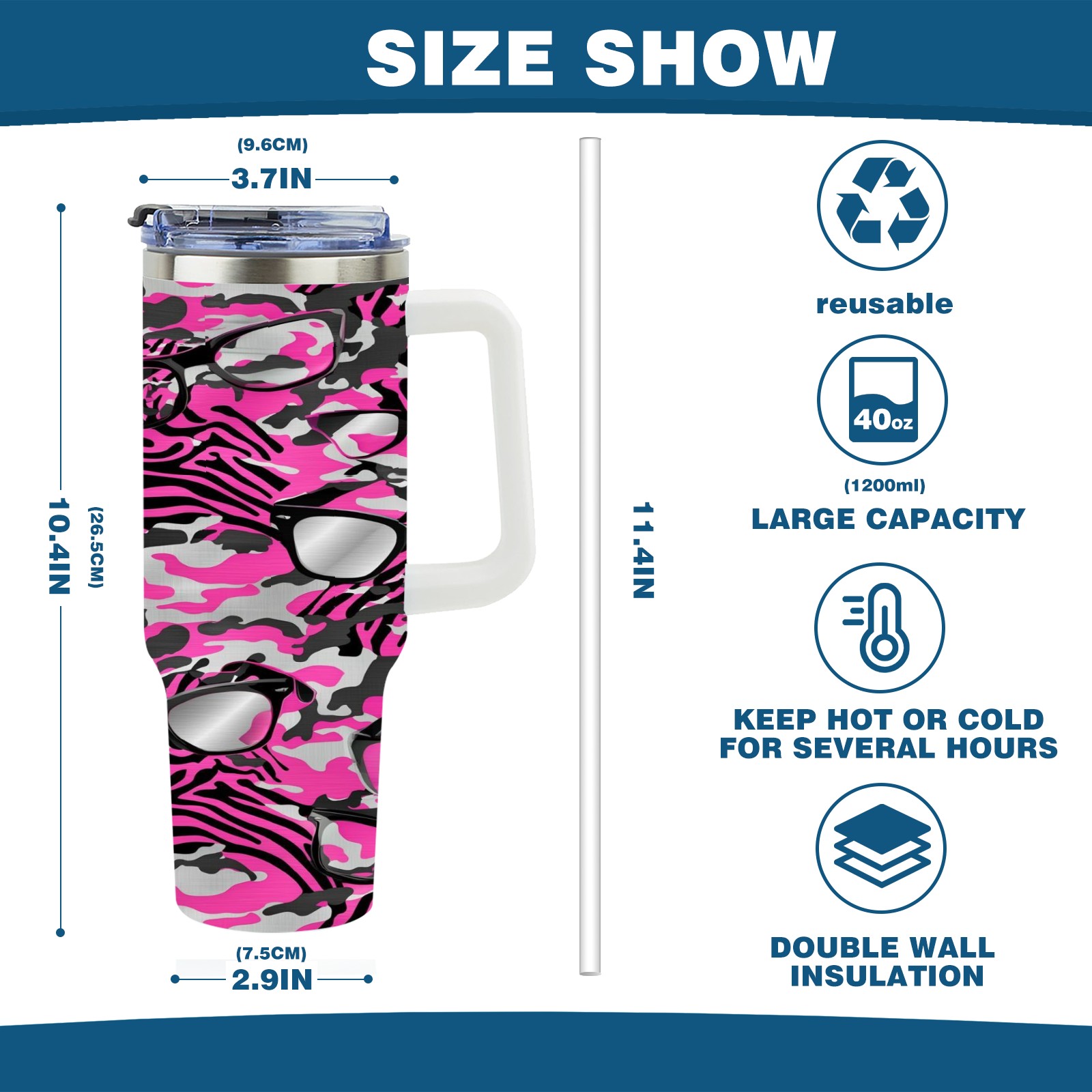• С большой емкостью 40 унций, он обеспечивает вас гидратацией в течение всего дня, идеально подходит для воды, кофе, сока или других напитков. Эргономичный дизайн идеально вписывается в автомобильные держатели для бутылок, а прочный, герметичный колпачок предотвращает утечки во время передвижения. Путешествие. Антискользящее основание обеспечивает устойчивость, а гладкие поверхности делают уборку легкой — просто мойте вручную или кладите в посудомоечную машину (рекомендуется верхний поддон).