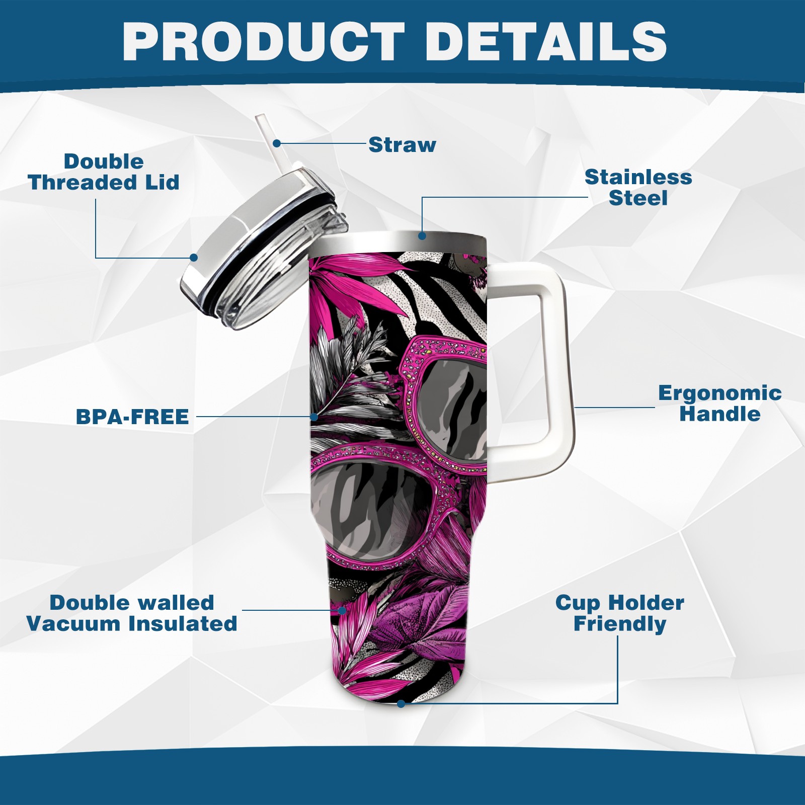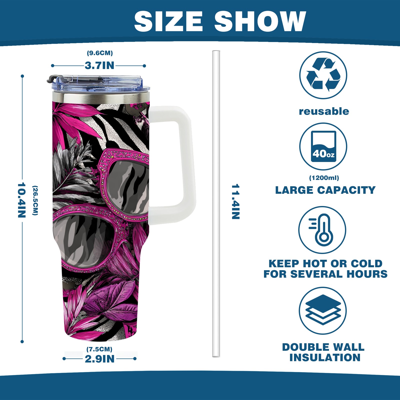 • С большой емкостью 40 унций, он обеспечивает вас гидратацией в течение всего дня, идеально подходит для воды, кофе, сока или других напитков. Эргономичный дизайн идеально вписывается в автомобильные держатели для бутылок, а прочный, герметичный колпачок предотвращает утечки во время передвижения. Путешествие. Антискользящее основание обеспечивает устойчивость, а гладкие поверхности делают уборку легкой — просто мойте вручную или кладите в посудомоечную машину (рекомендуется верхний поддон).