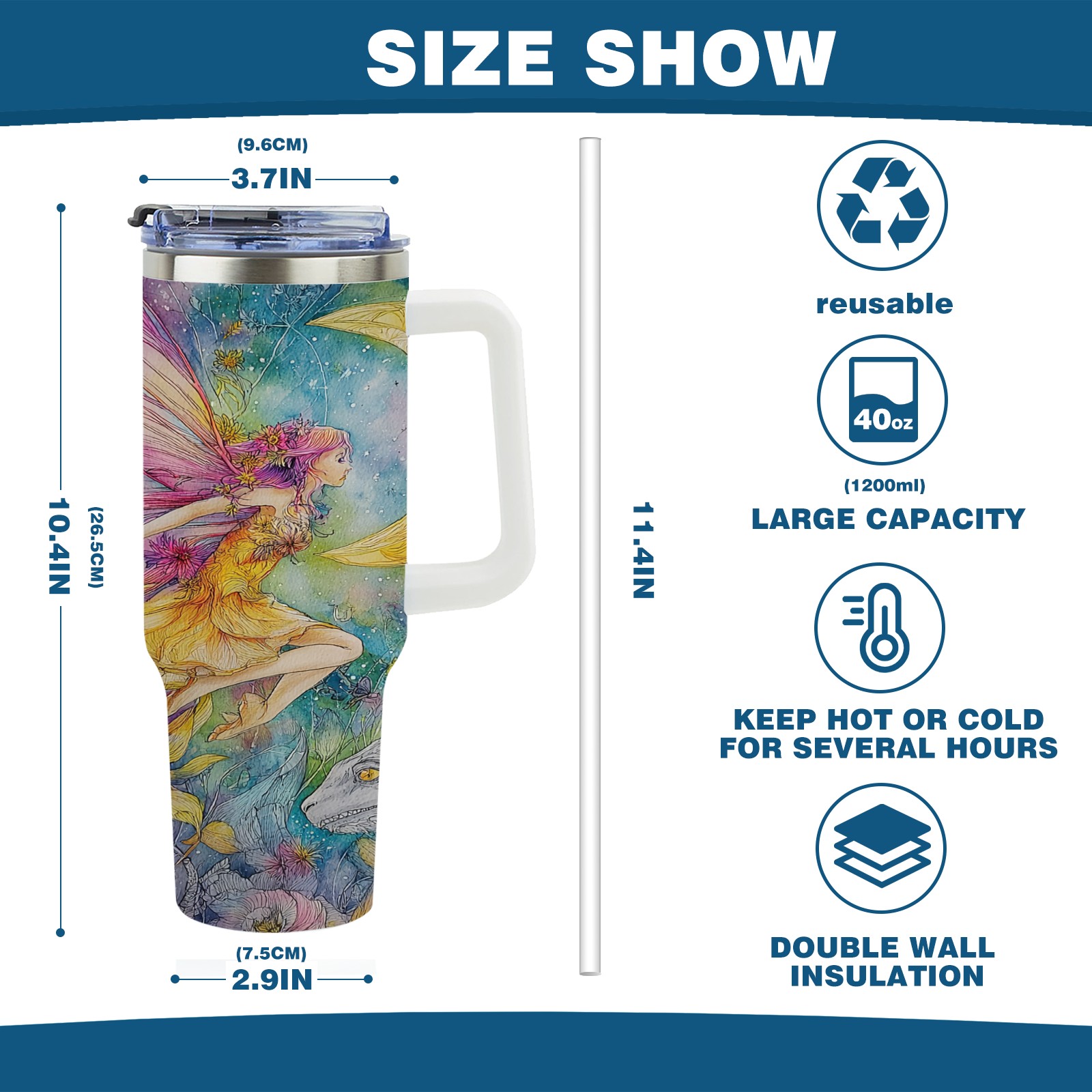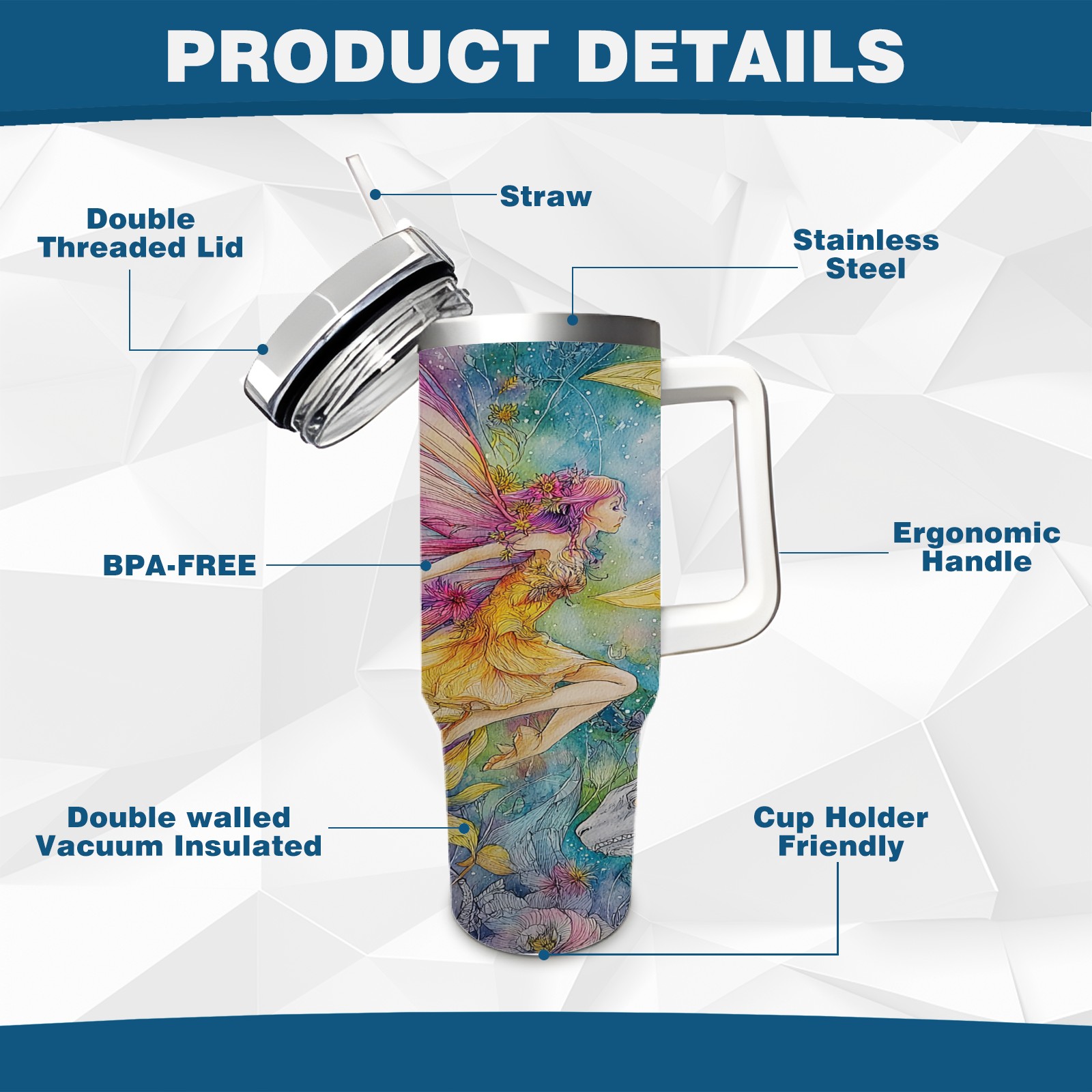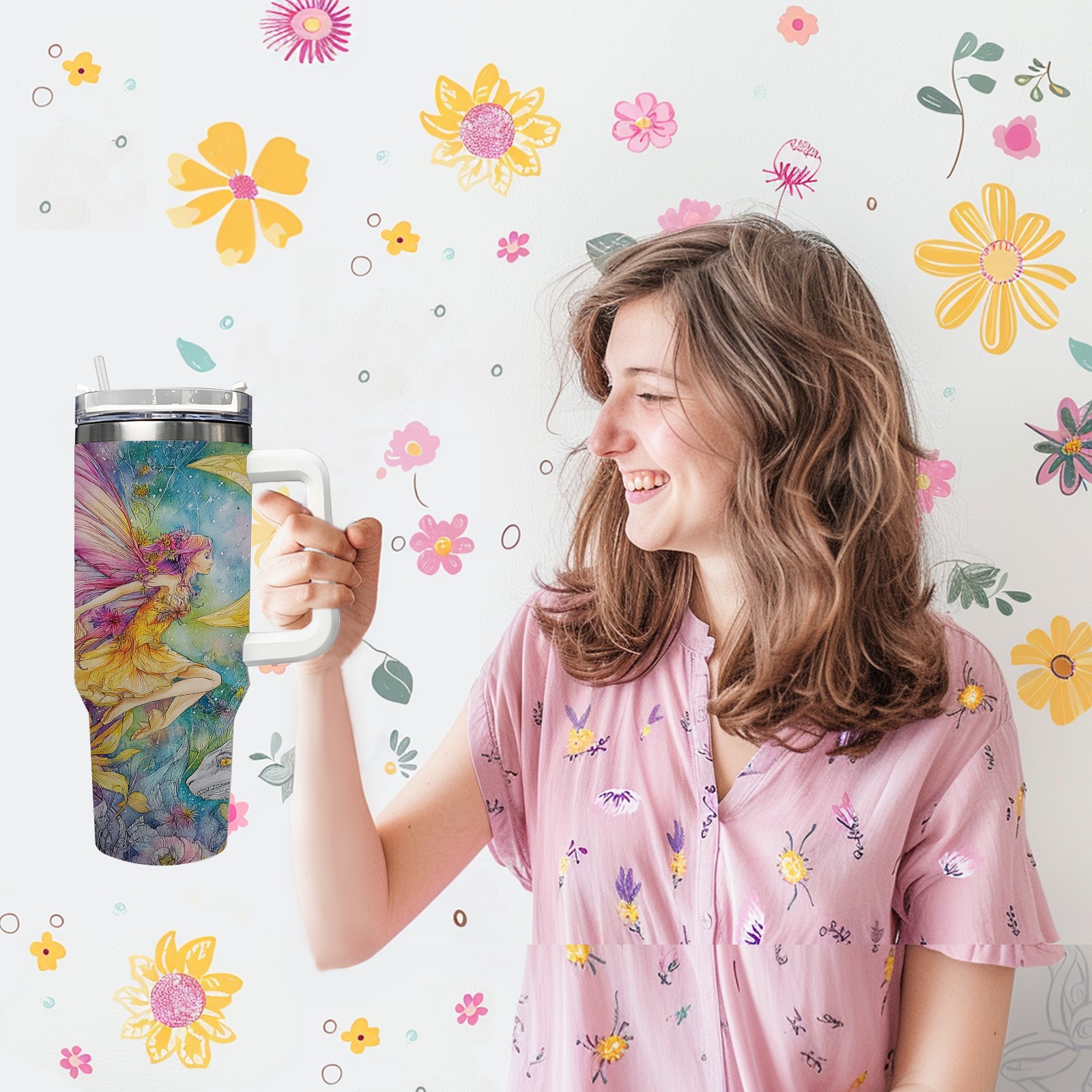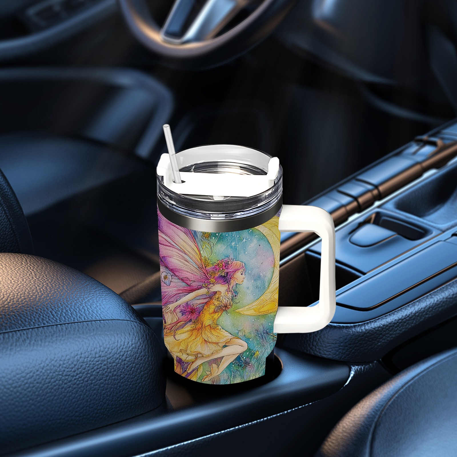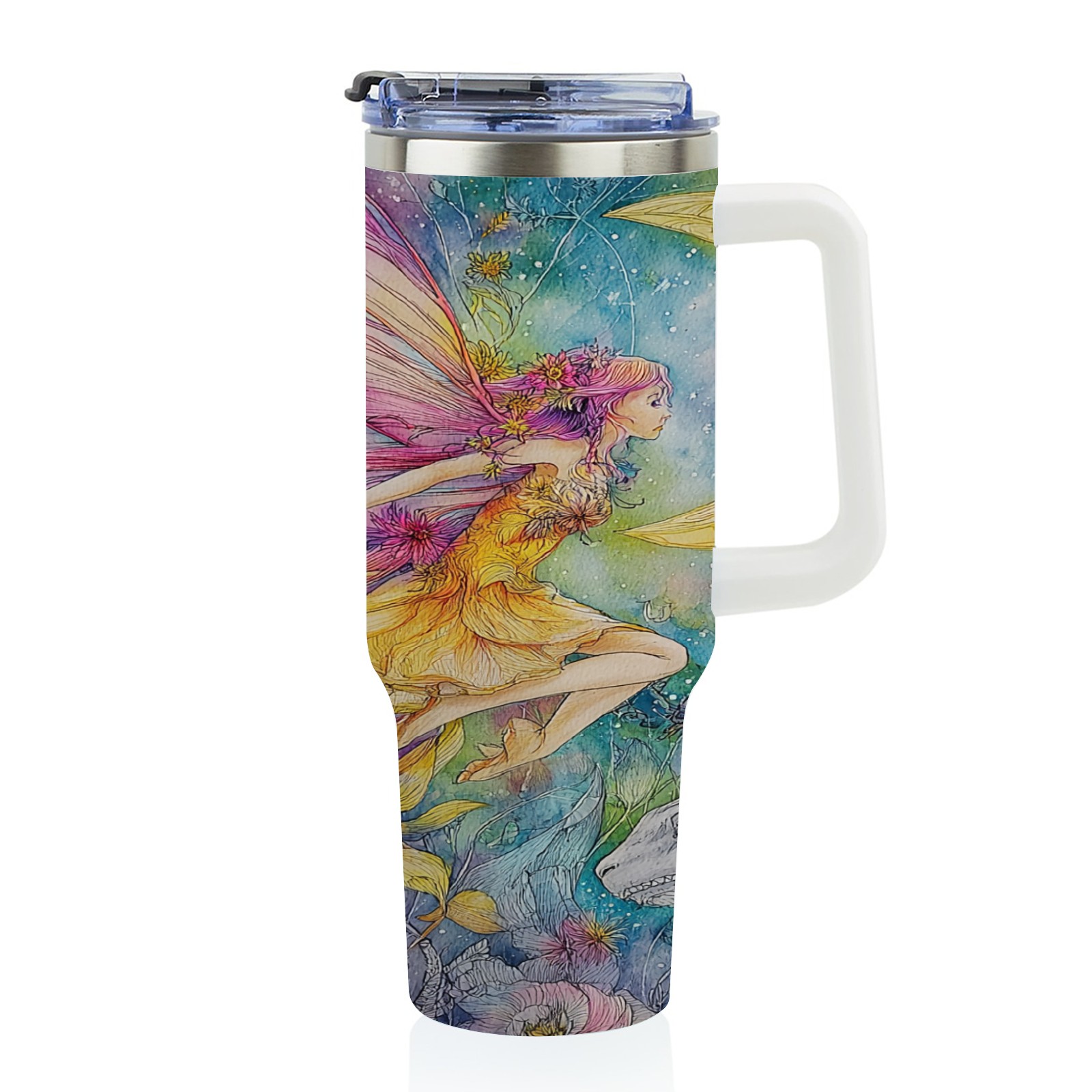 40 унций полностью напечатанный автомобильный стакан Fantasy Fairy Yellow
