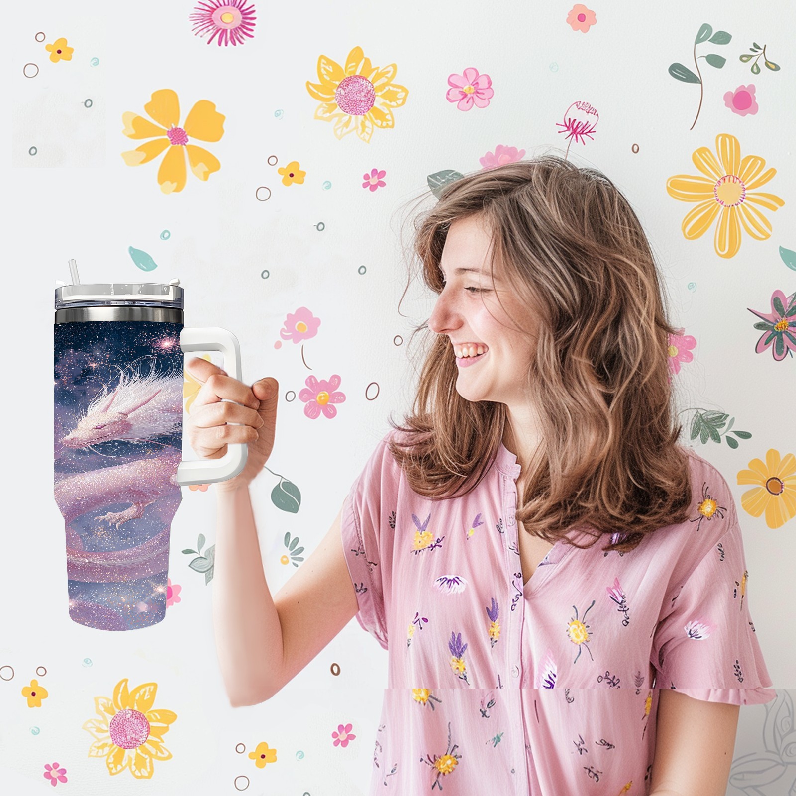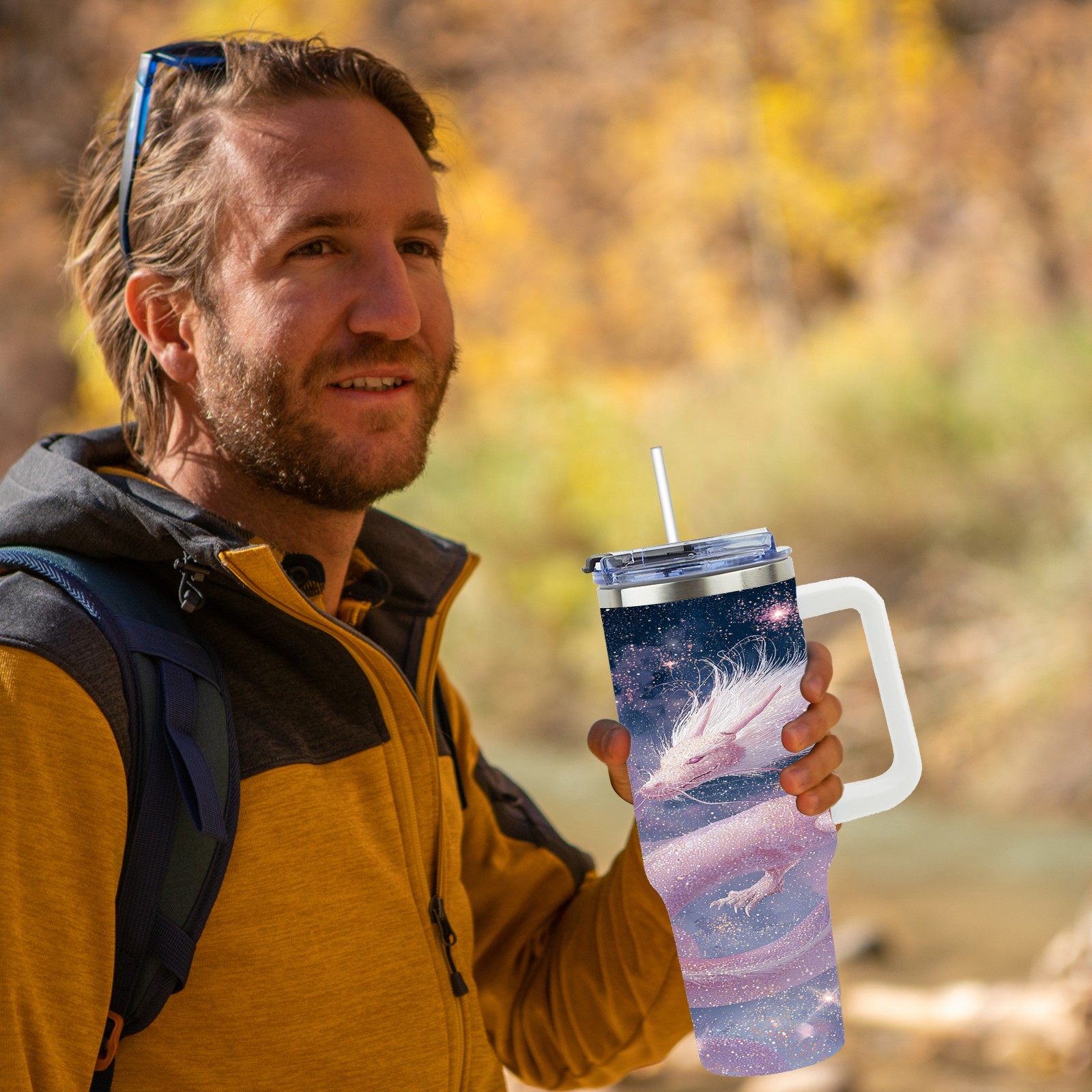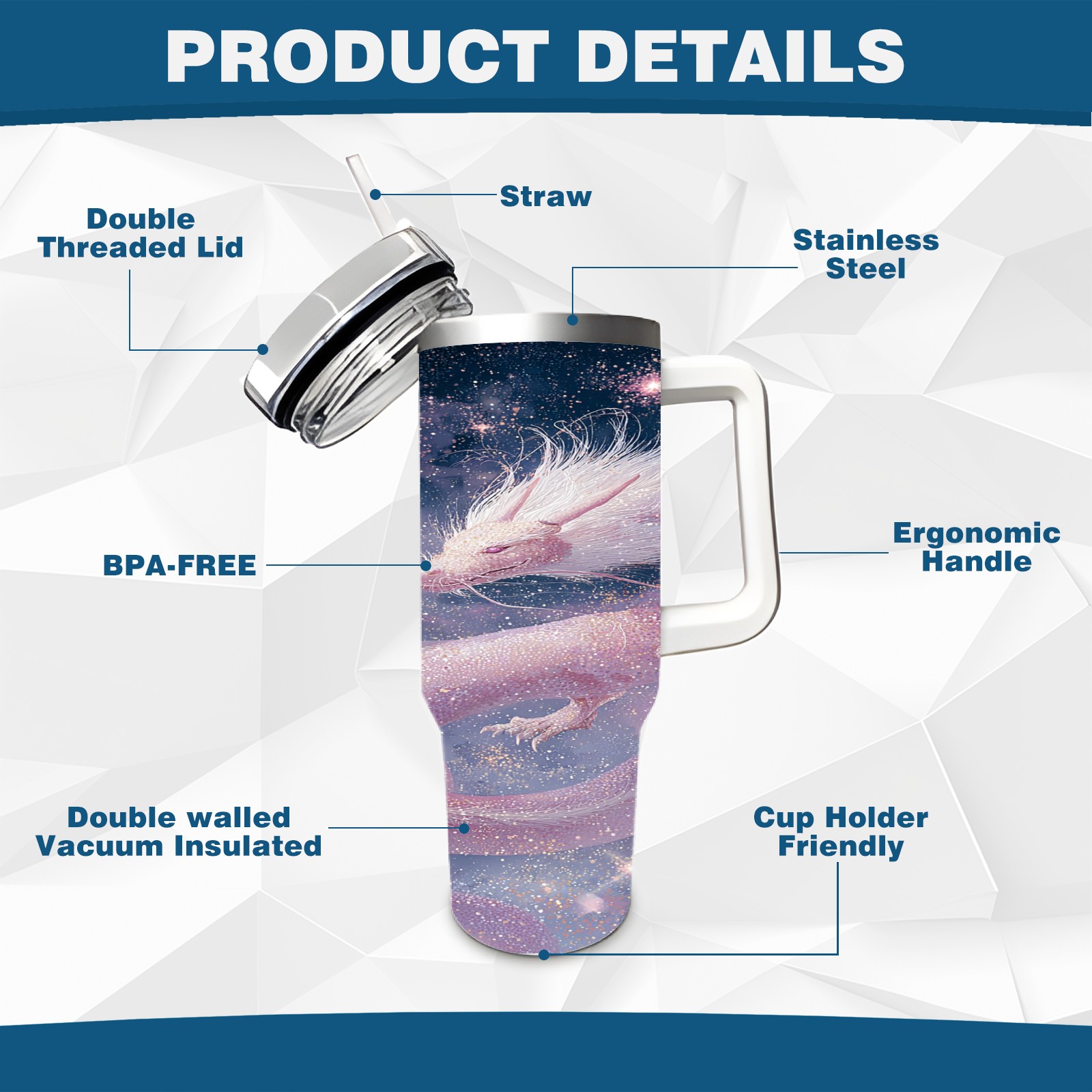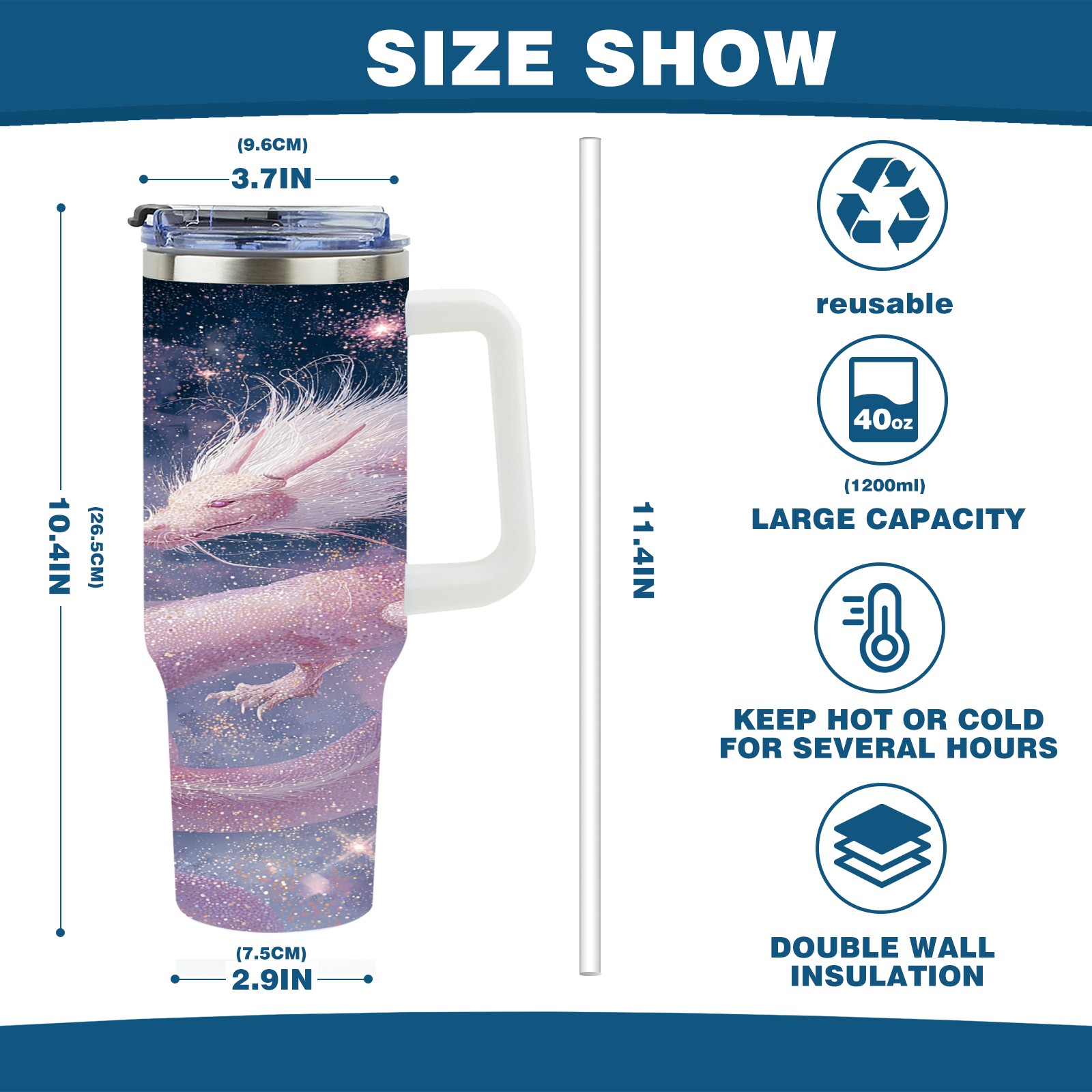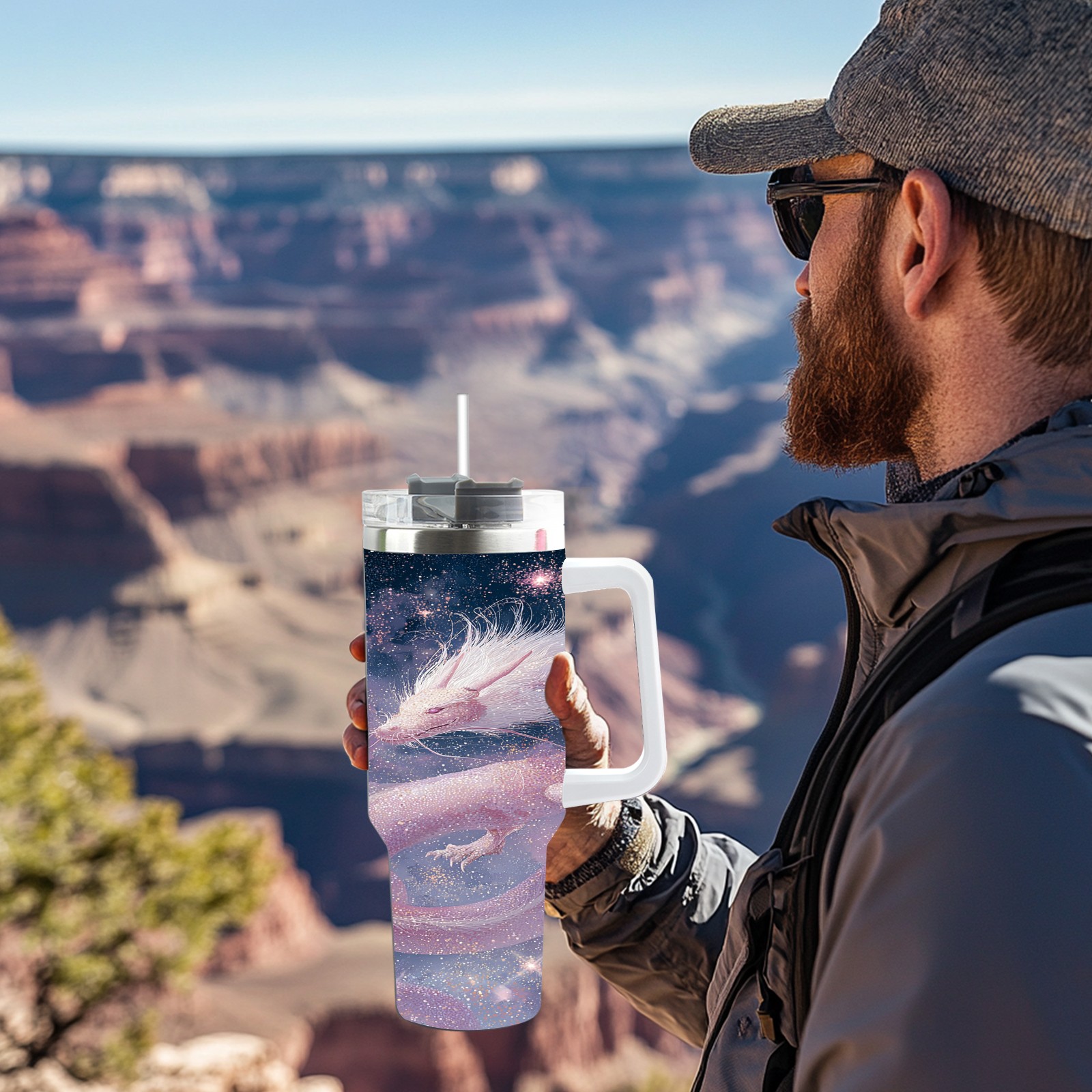 40 унций полностью напечатанный автомобильный стакан Dreamy Dragon Purple