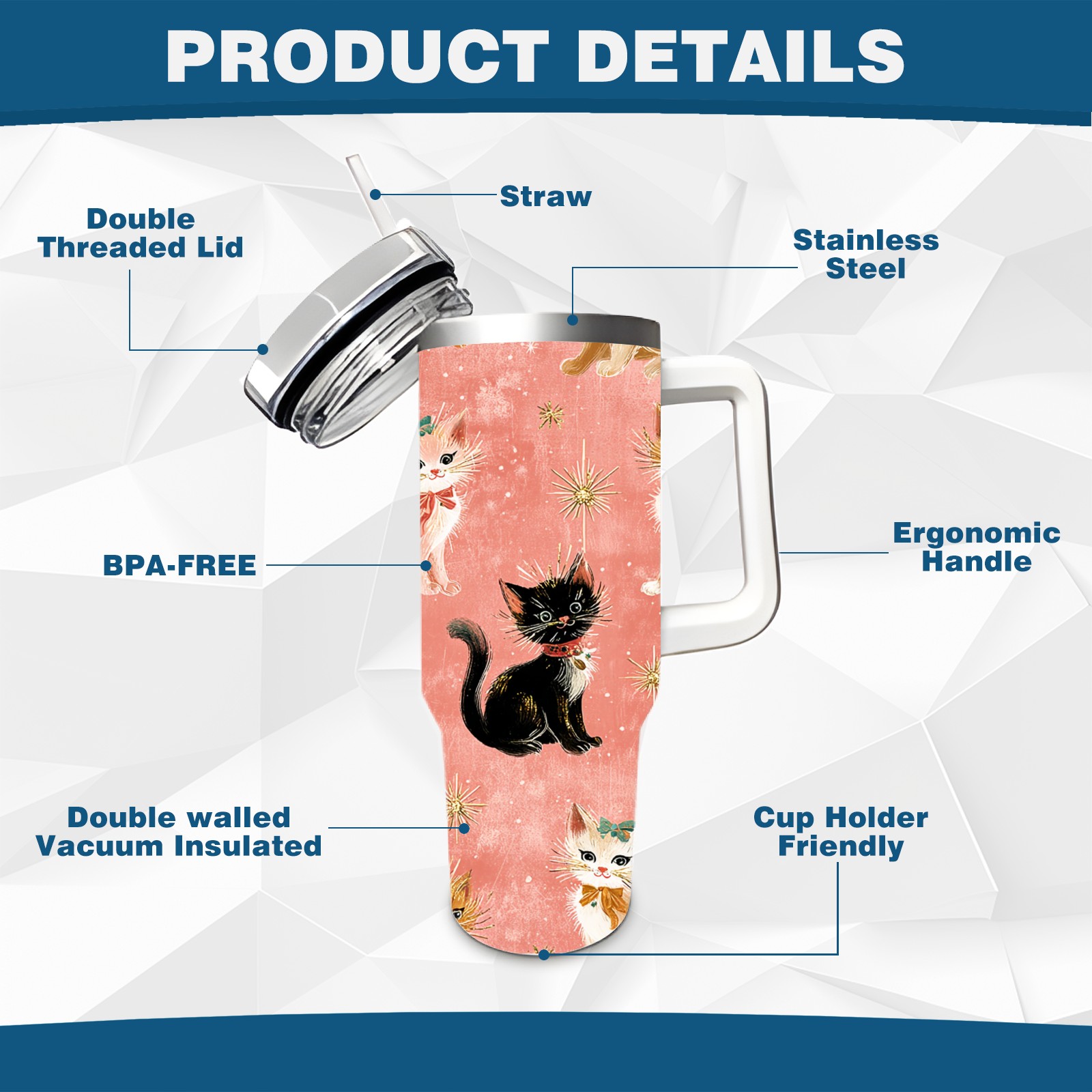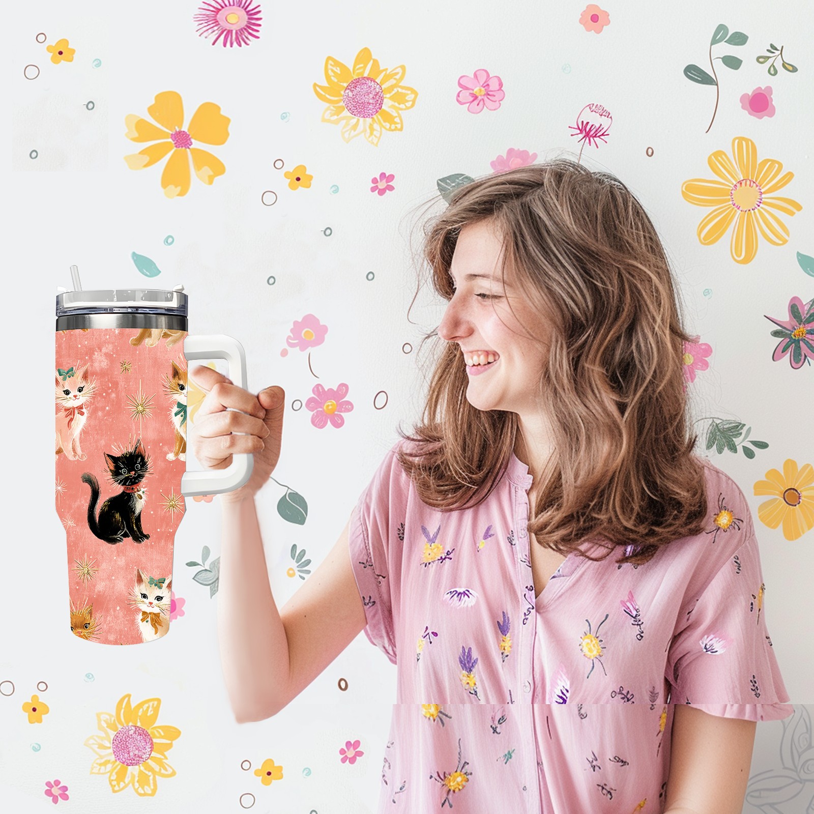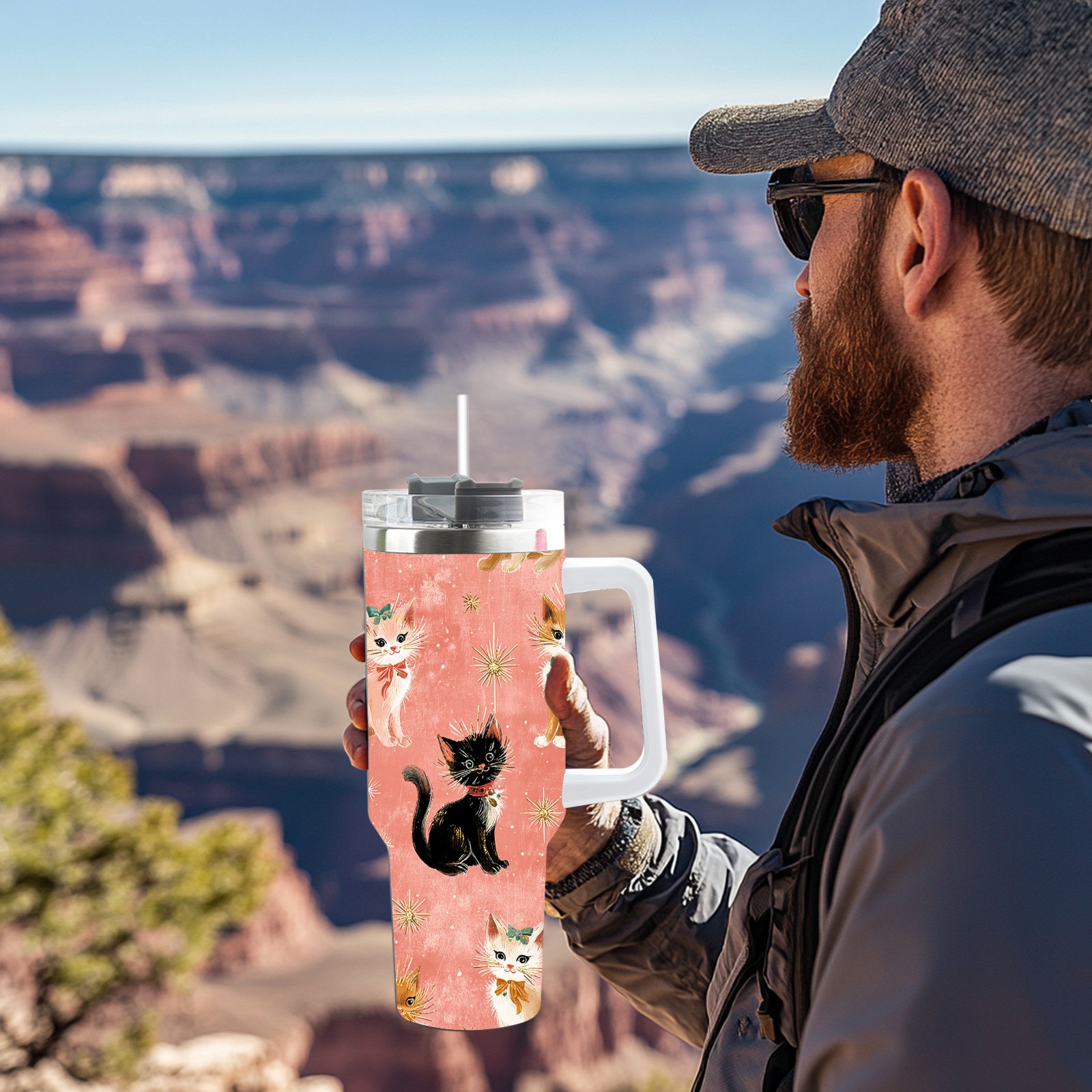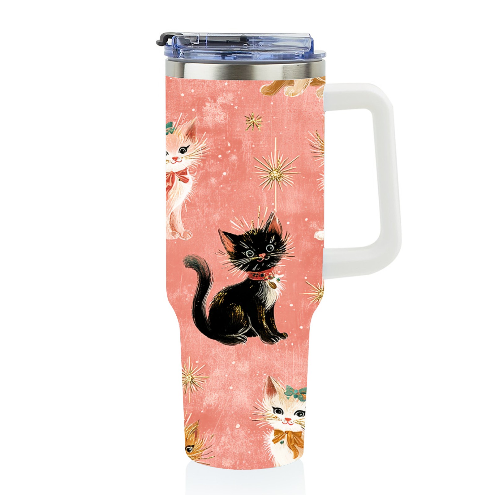 40 унций полностью напечатанный автомобильный стакан Cute Cat Pink