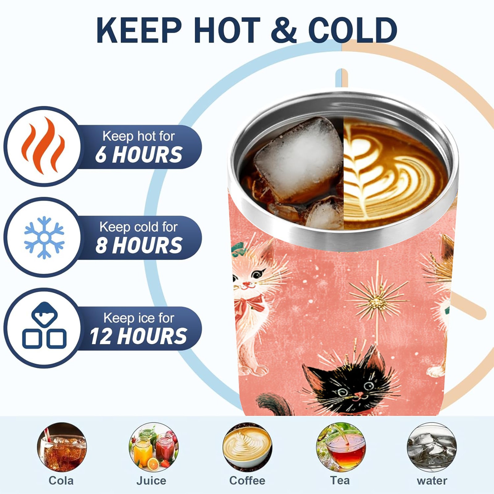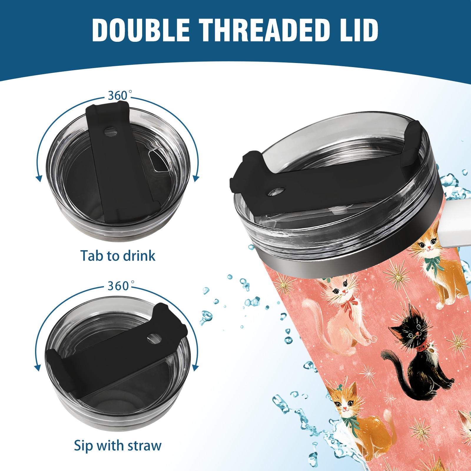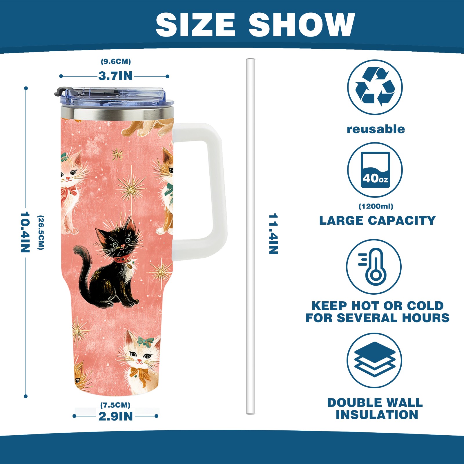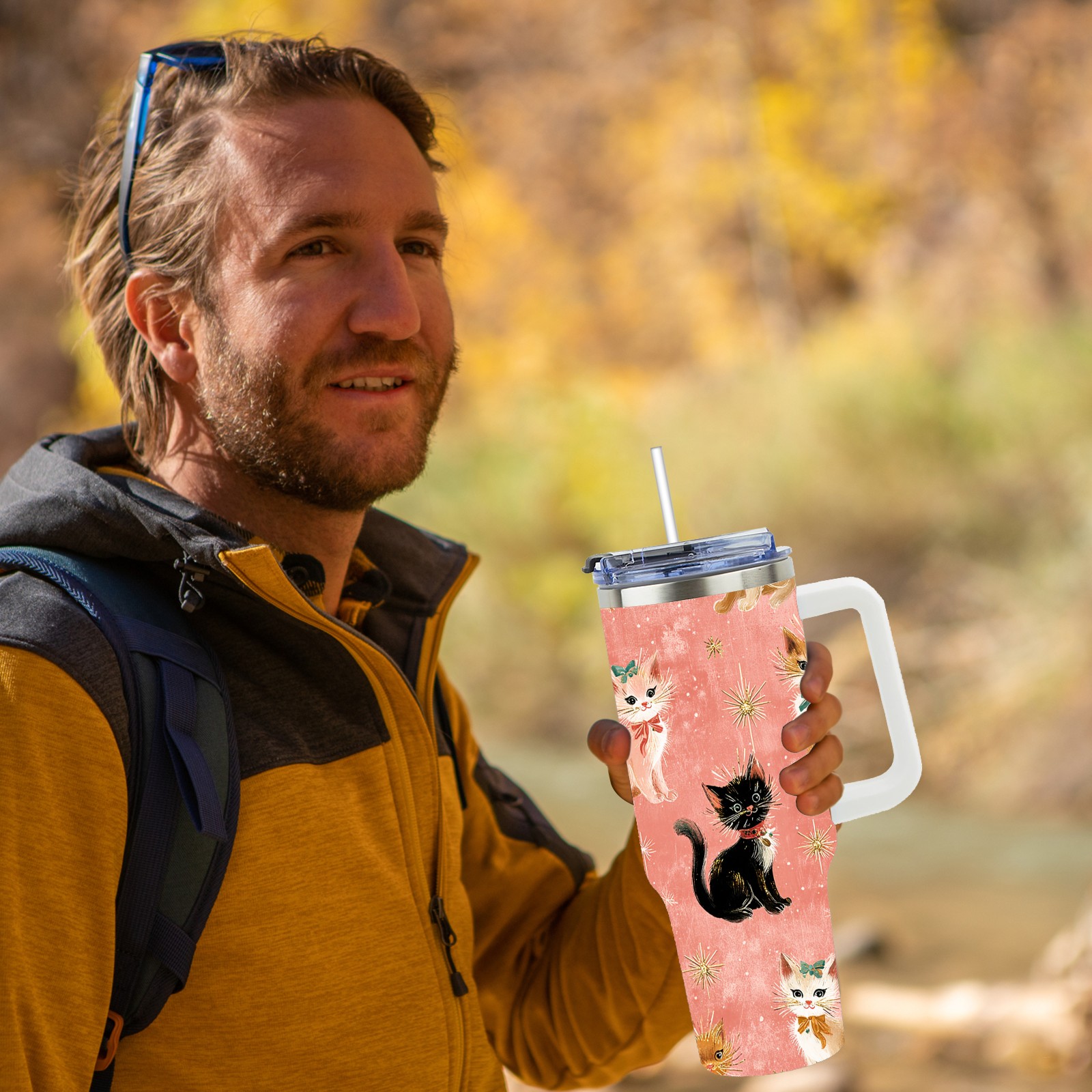 40 унций полностью напечатанный автомобильный стакан Cute Cat Pink