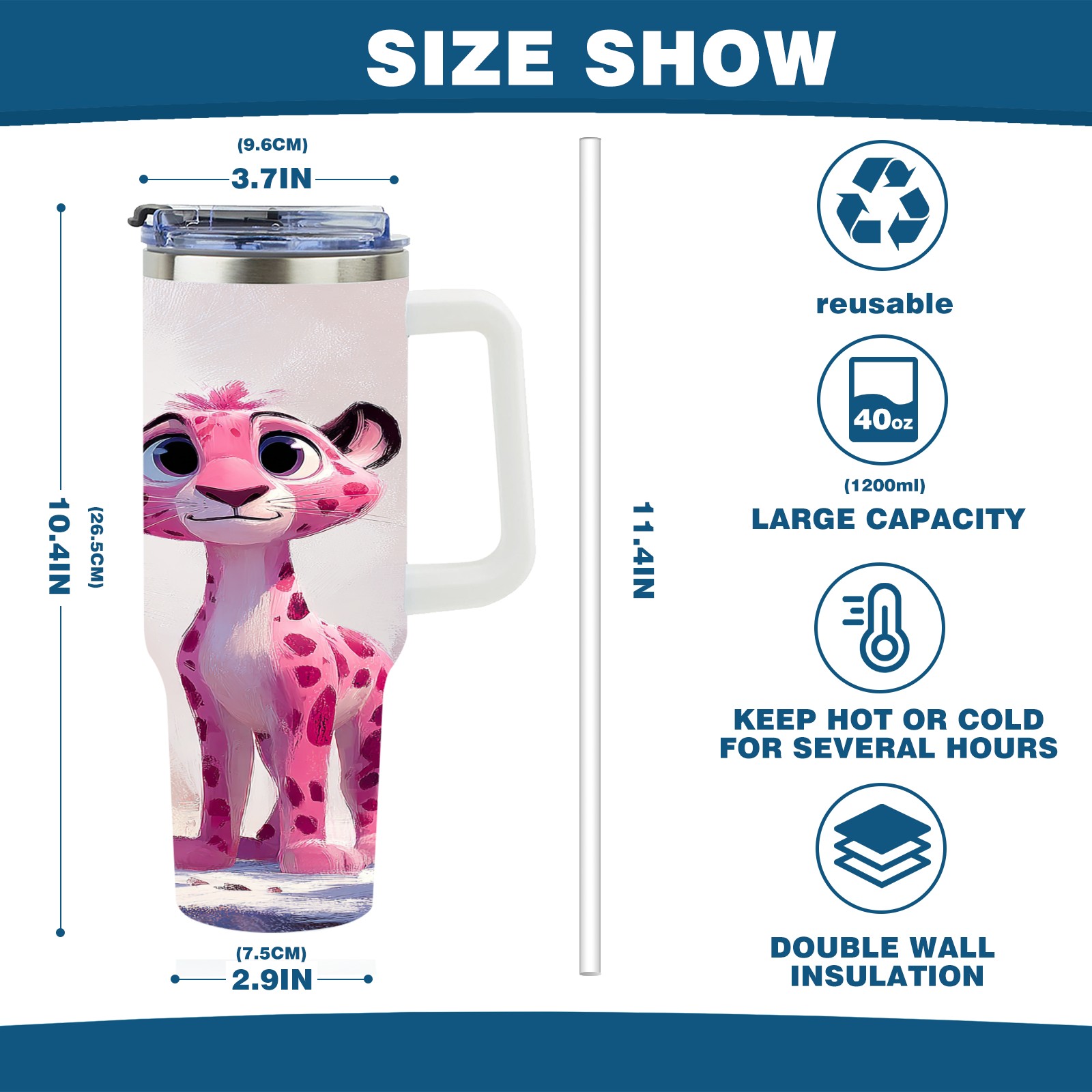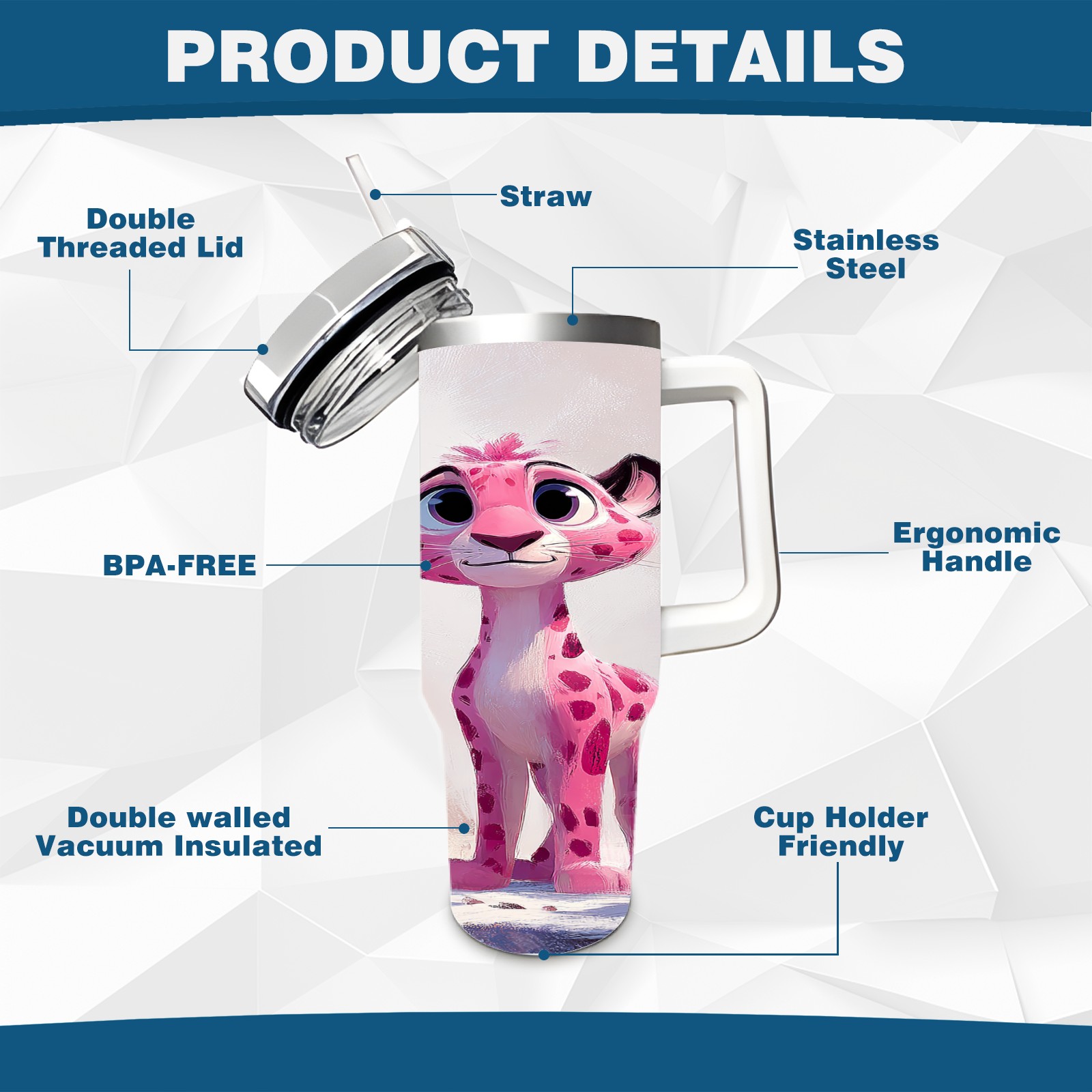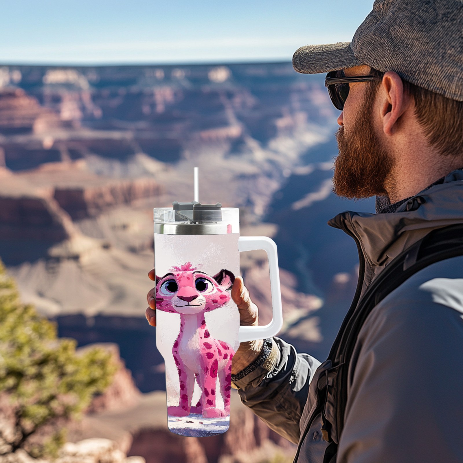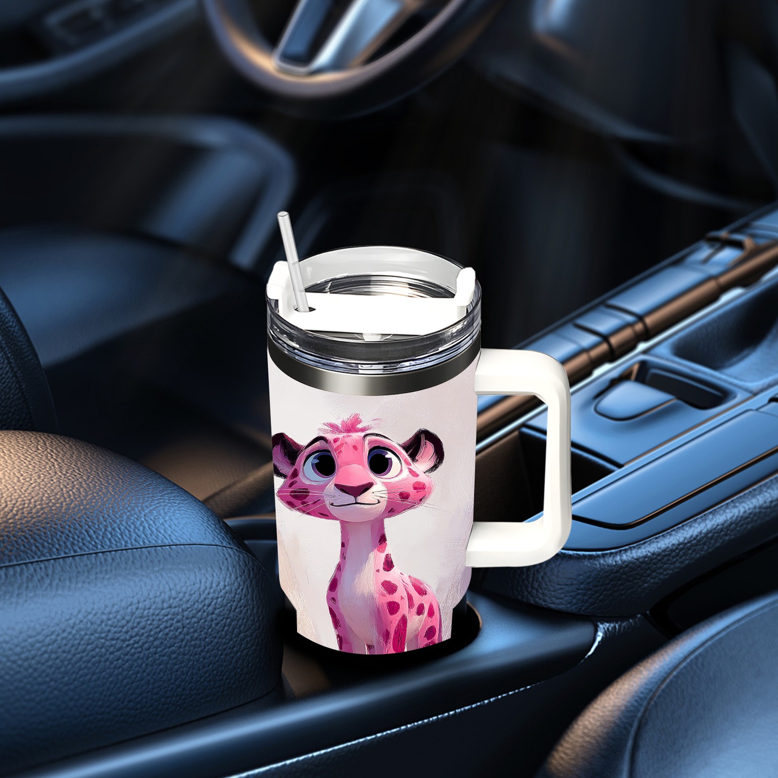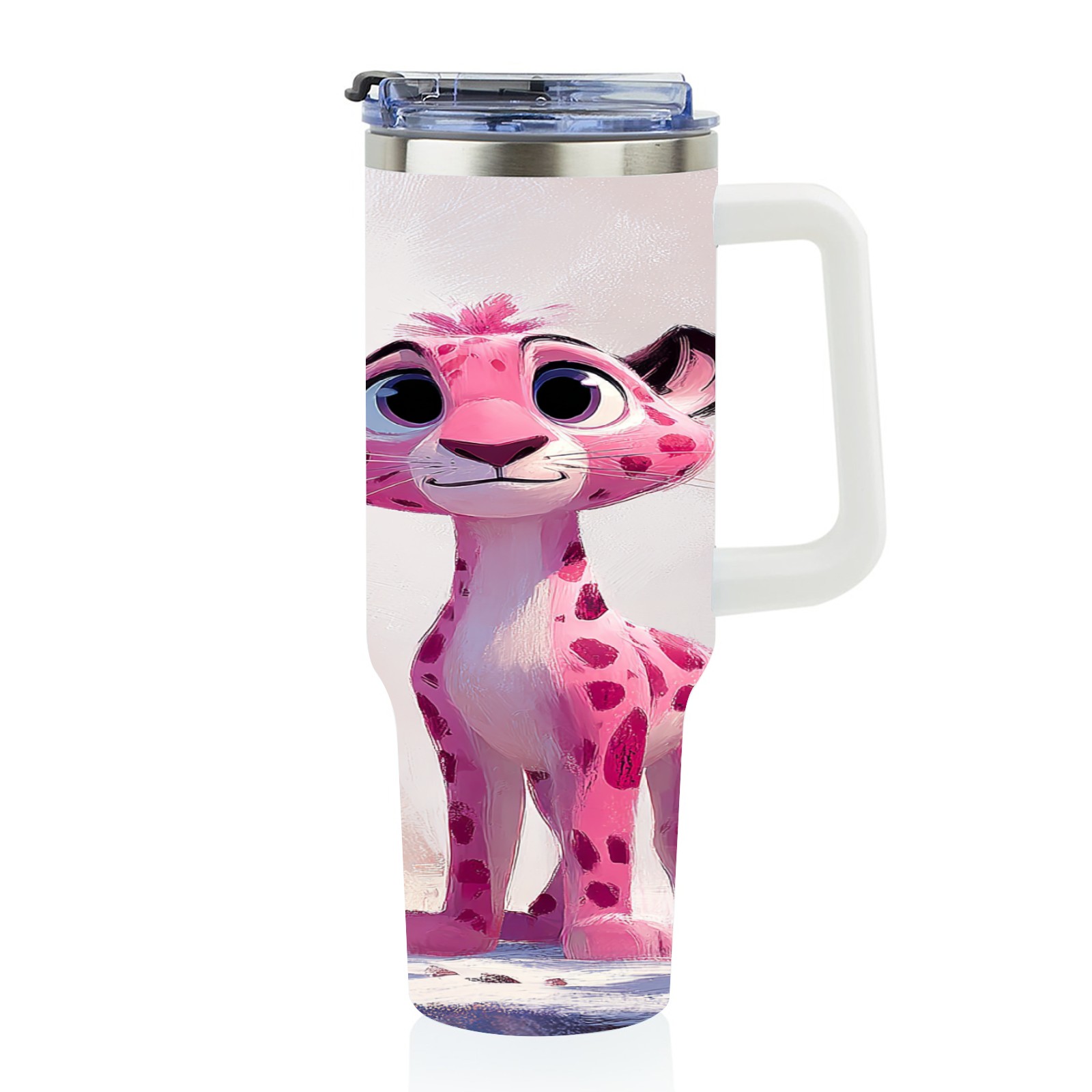 40 унций полностью напечатанный автомобильный стакан Cute Leopard Pink