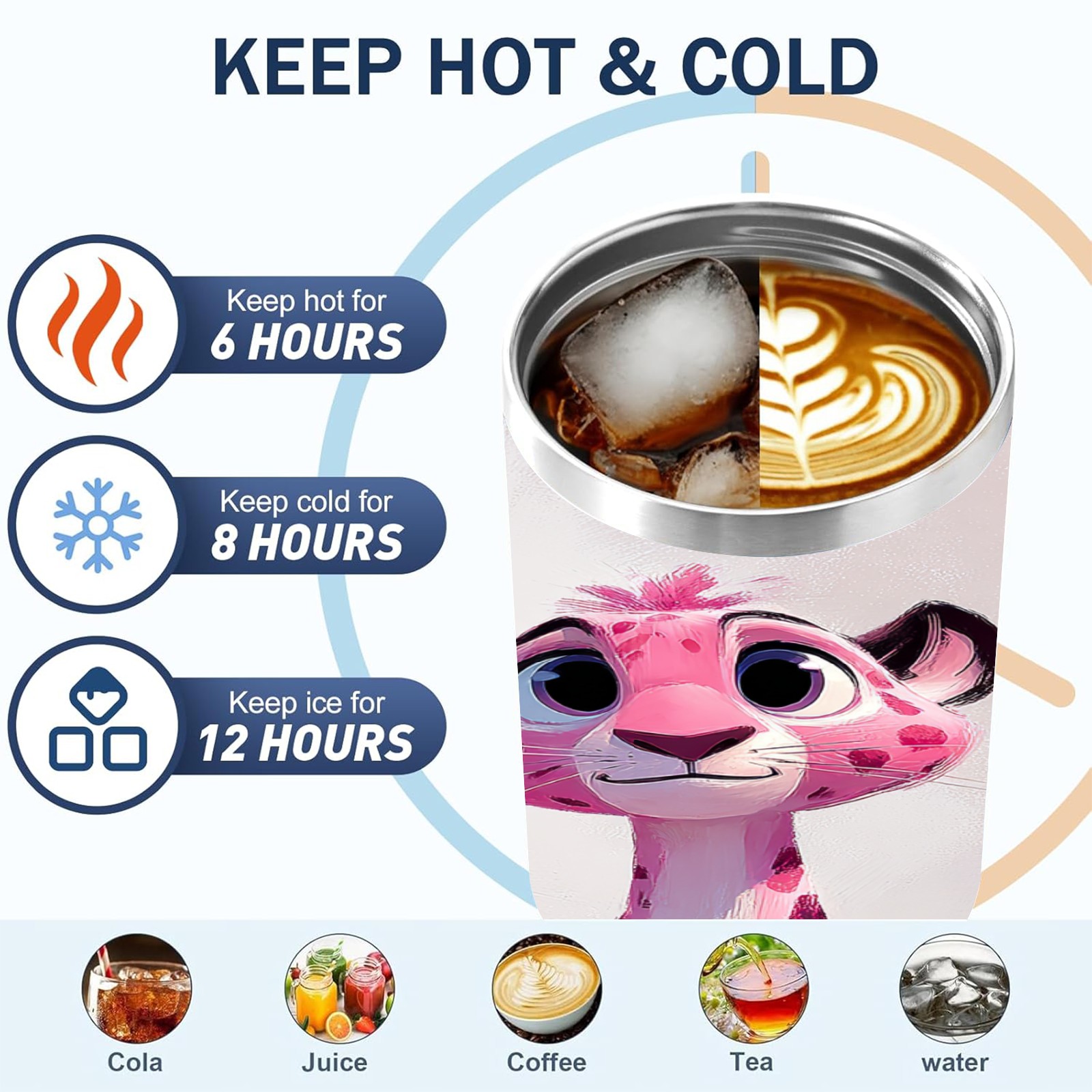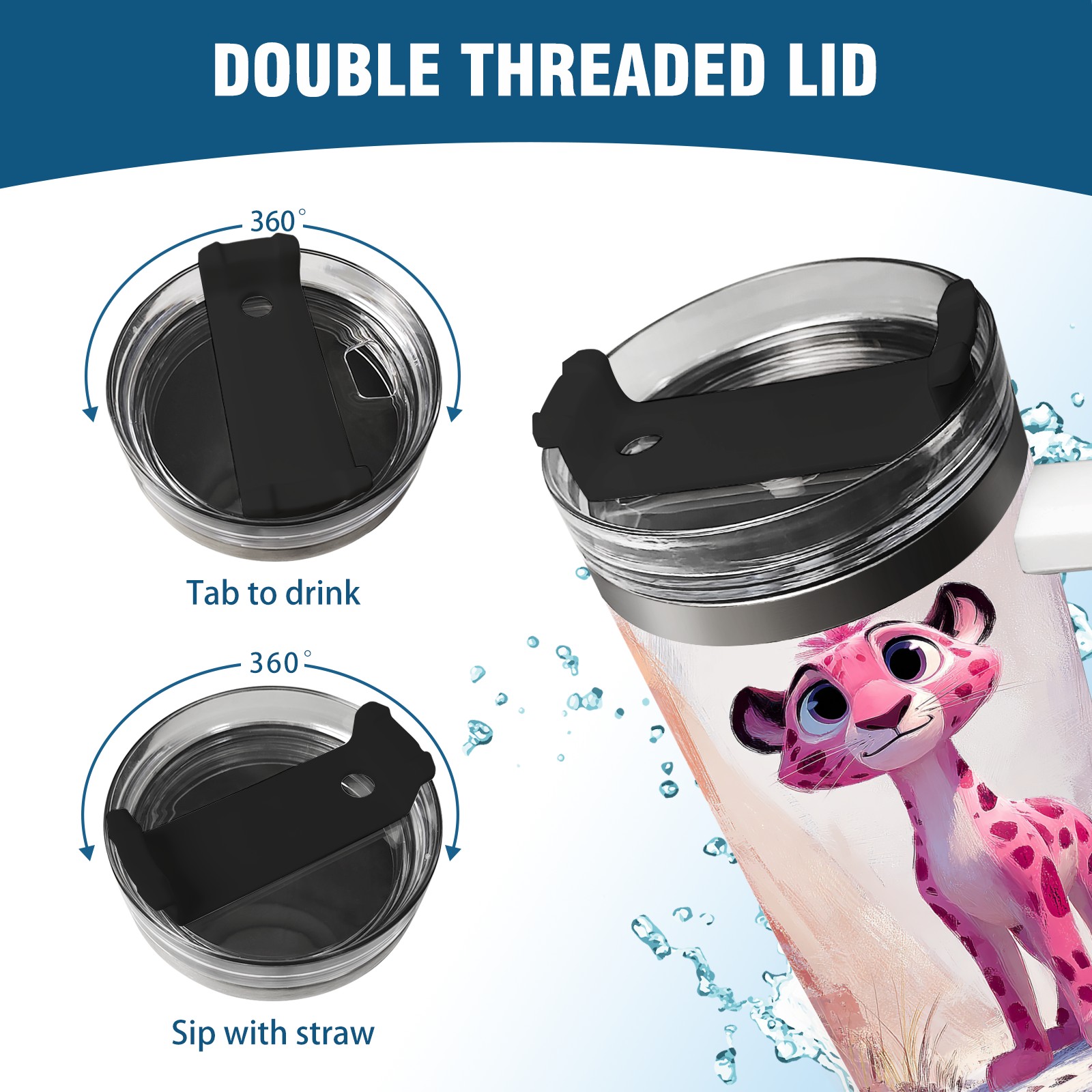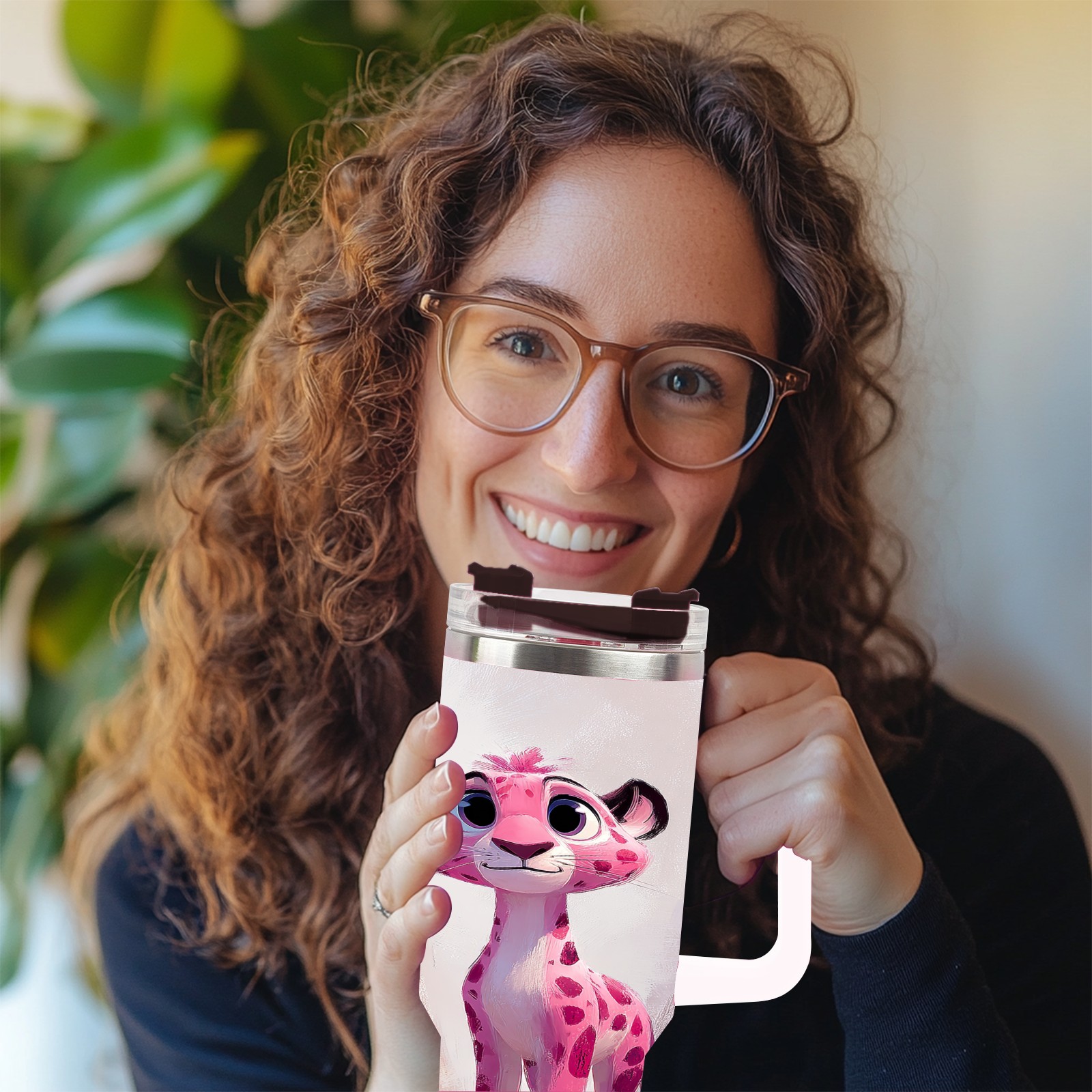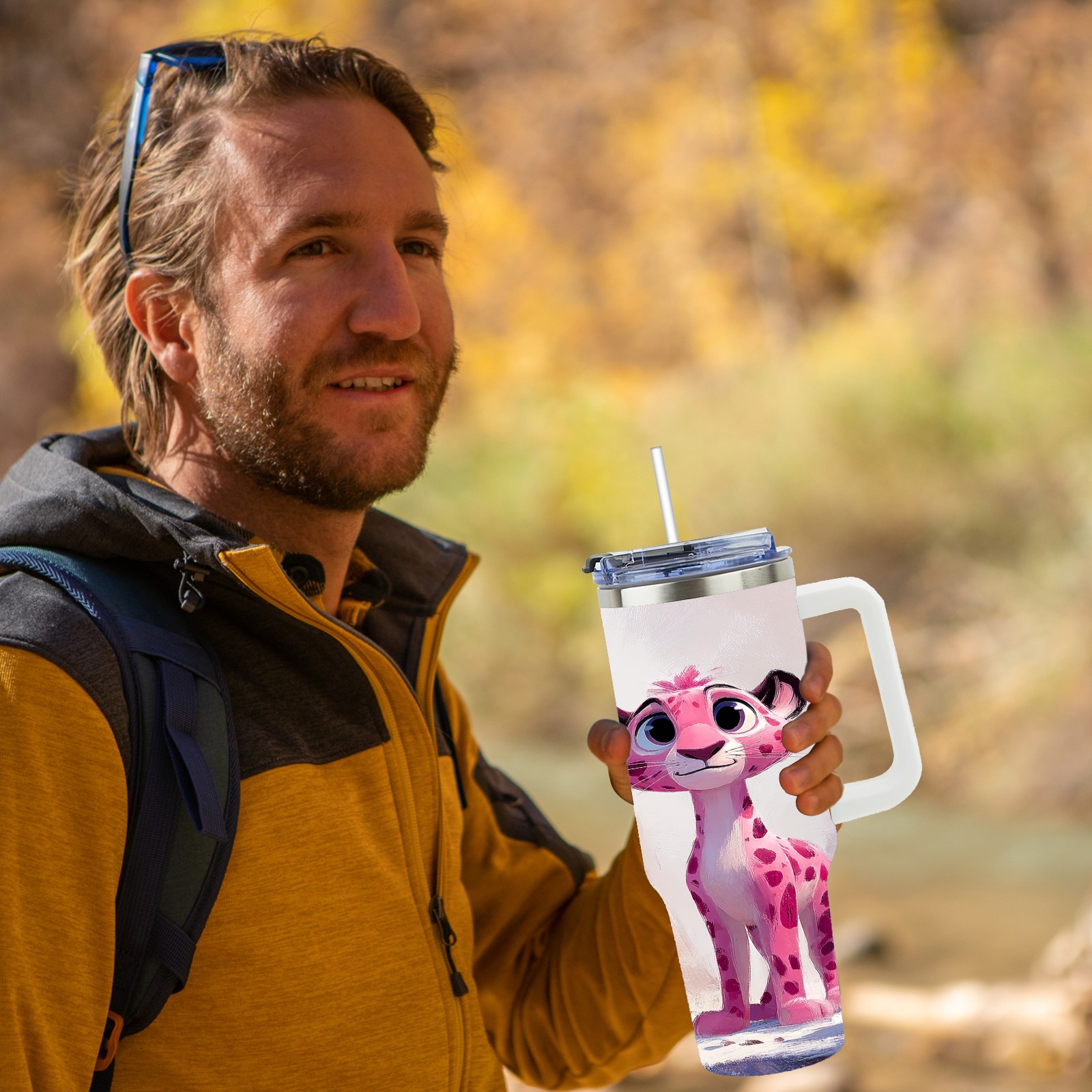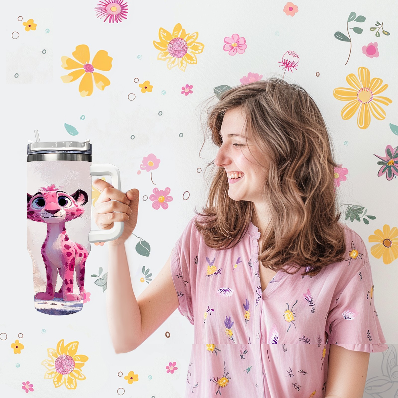 40 унций полностью напечатанный автомобильный стакан Cute Leopard Pink