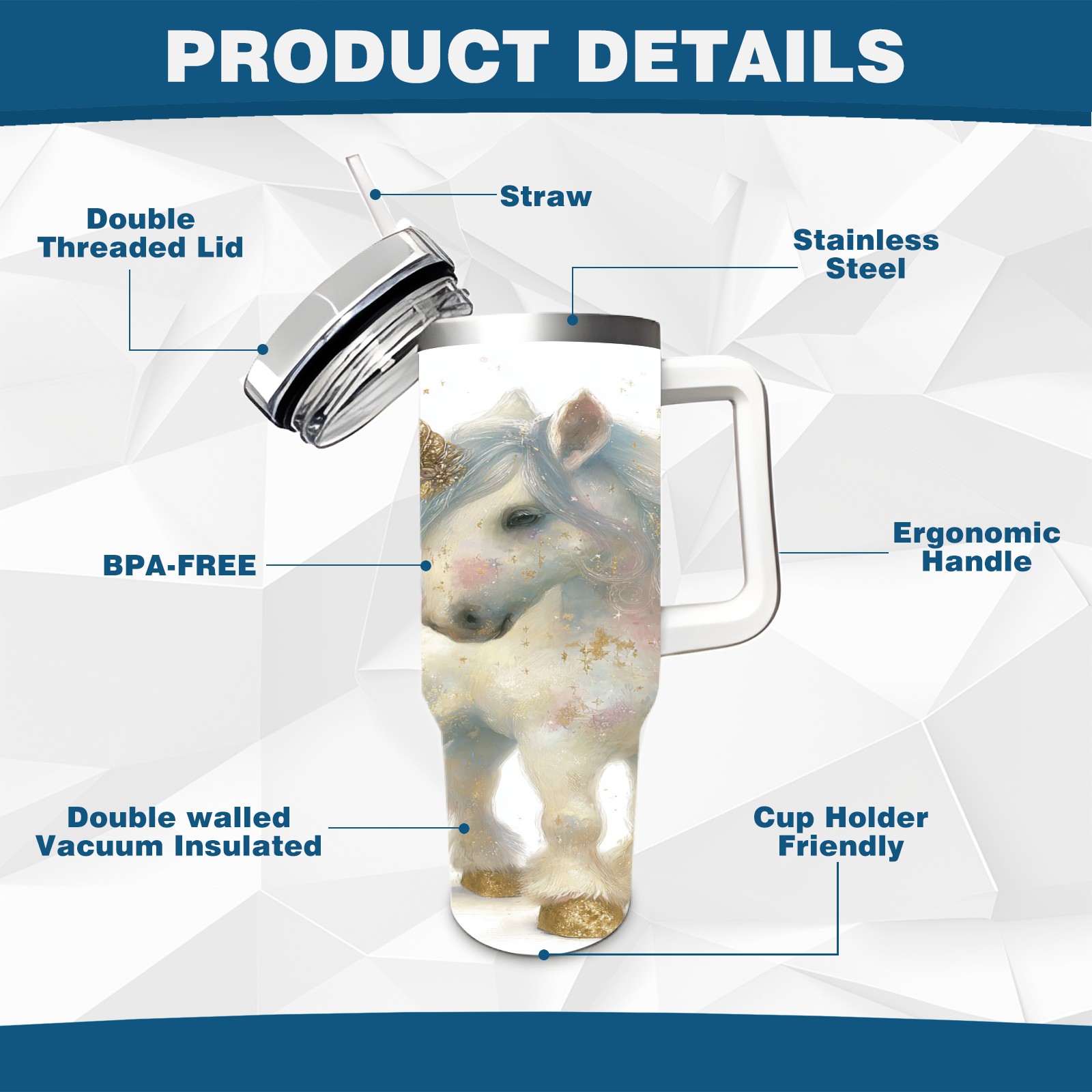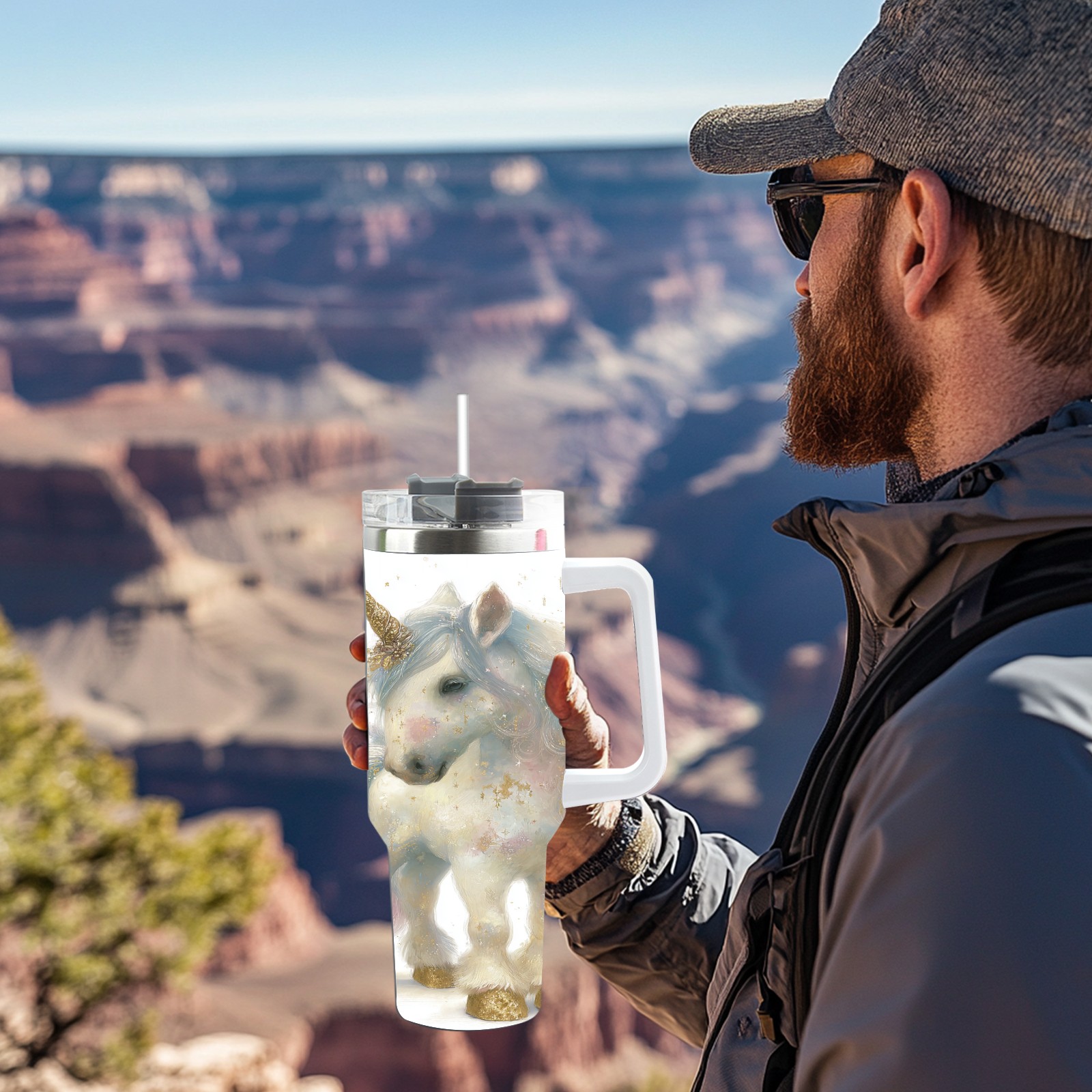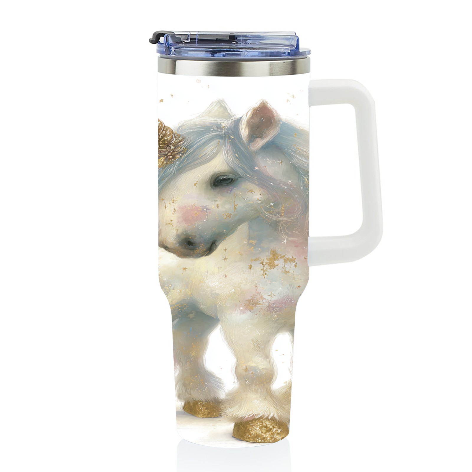 40 унций полностью напечатанный автомобильный стакан Dreamy Unicorn White