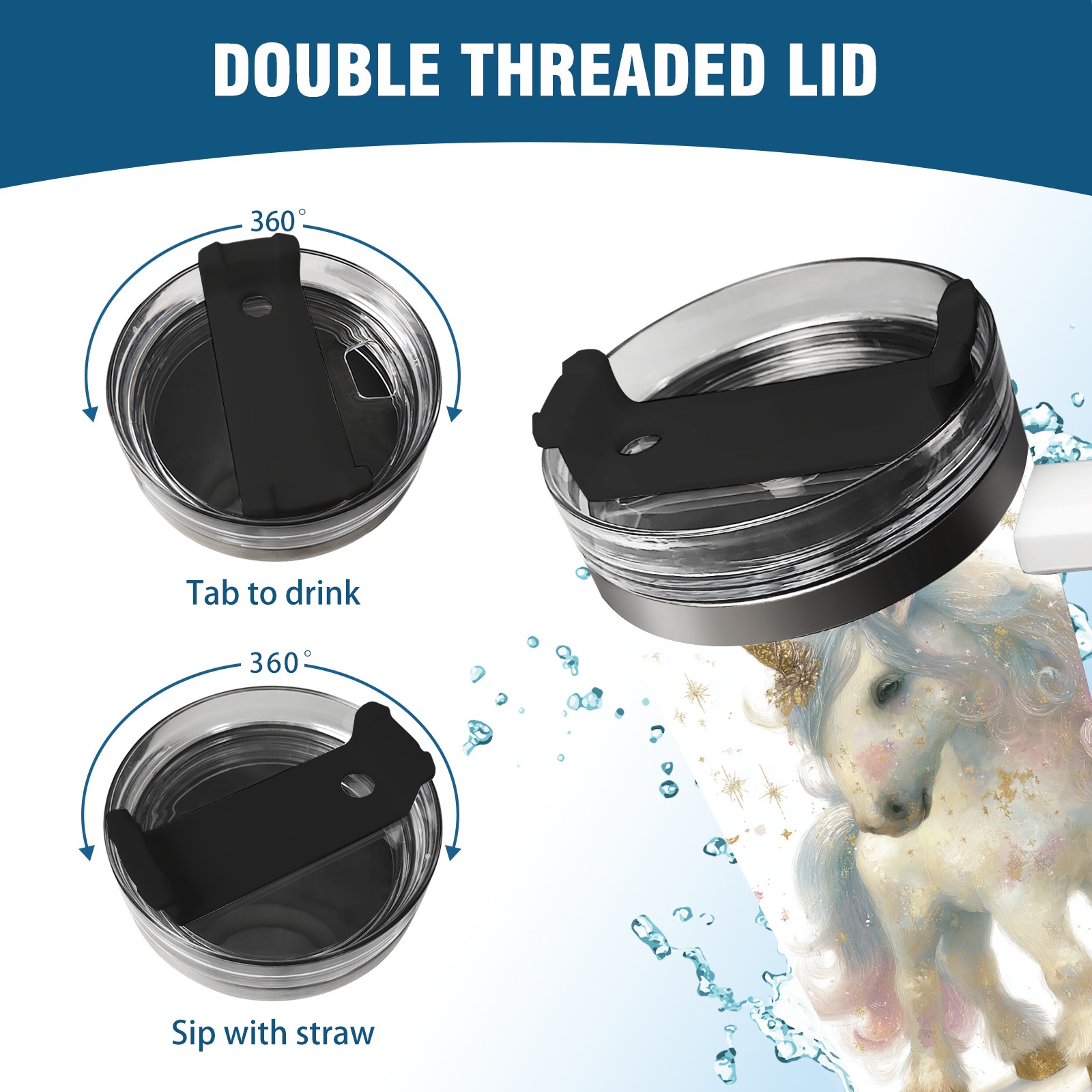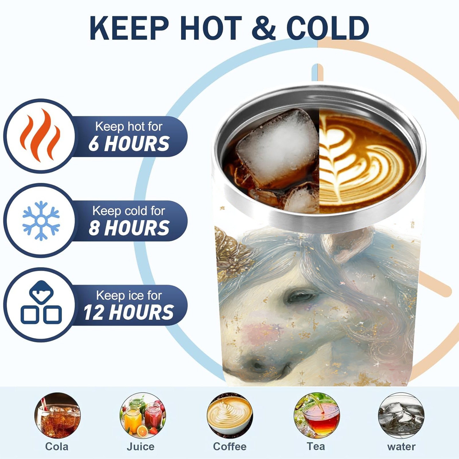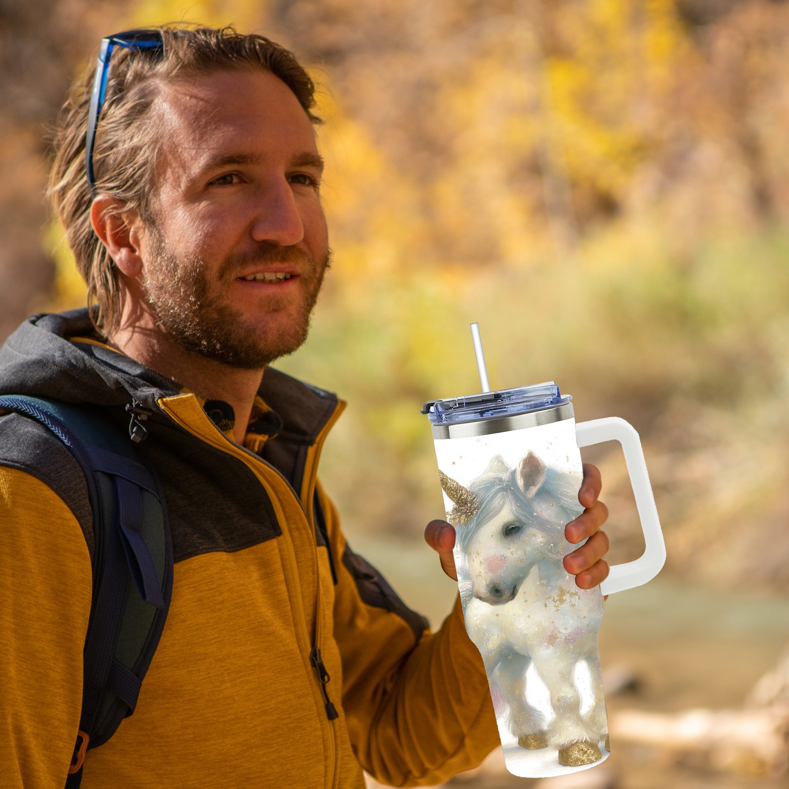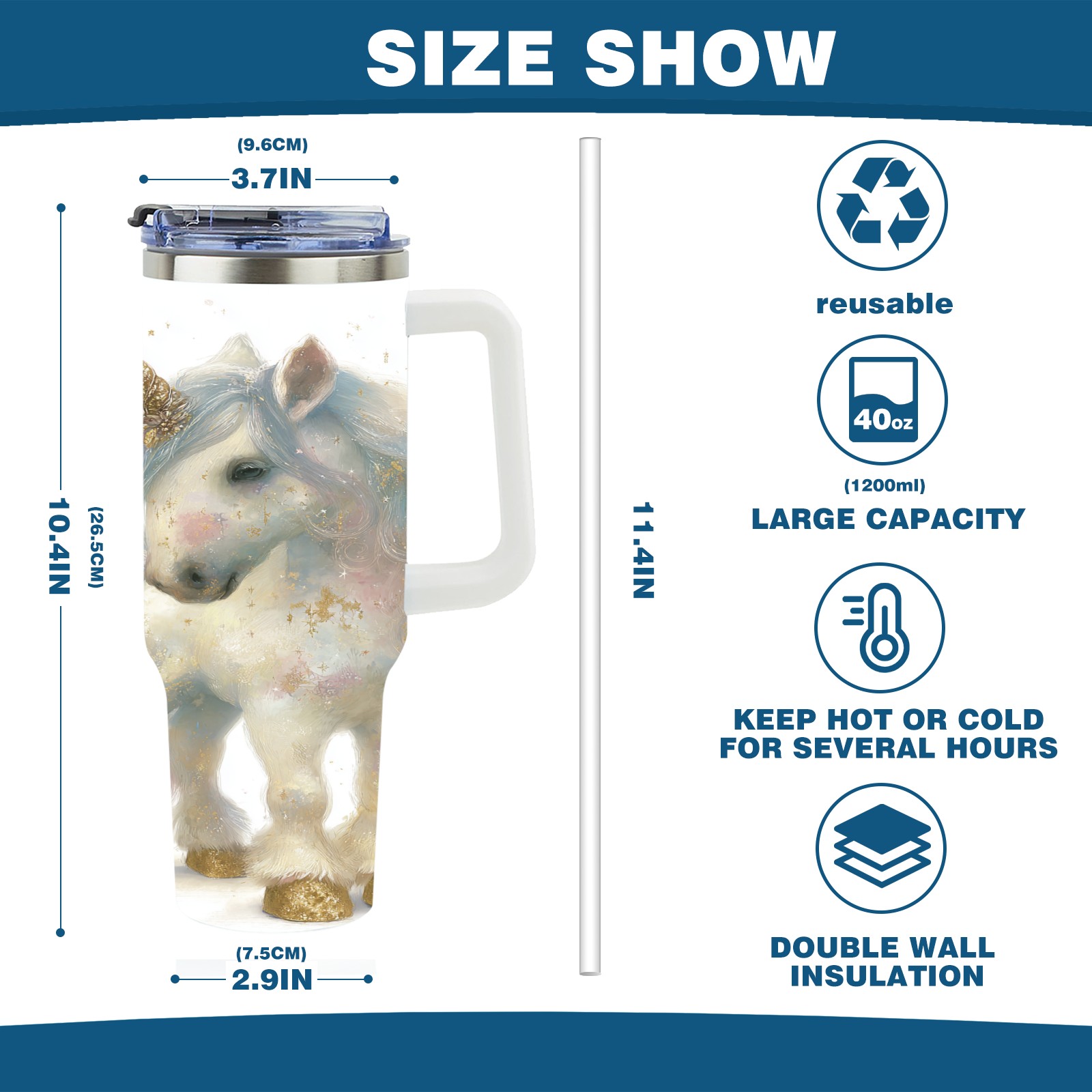 40 унций полностью напечатанный автомобильный стакан Dreamy Unicorn White