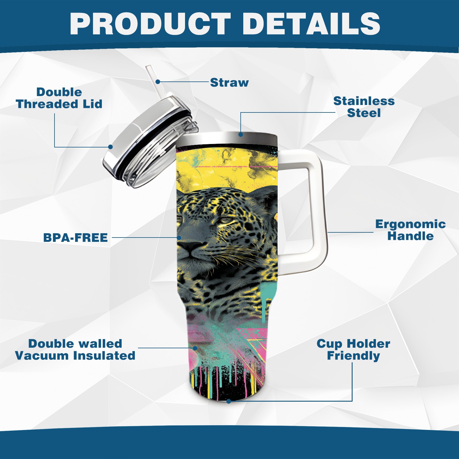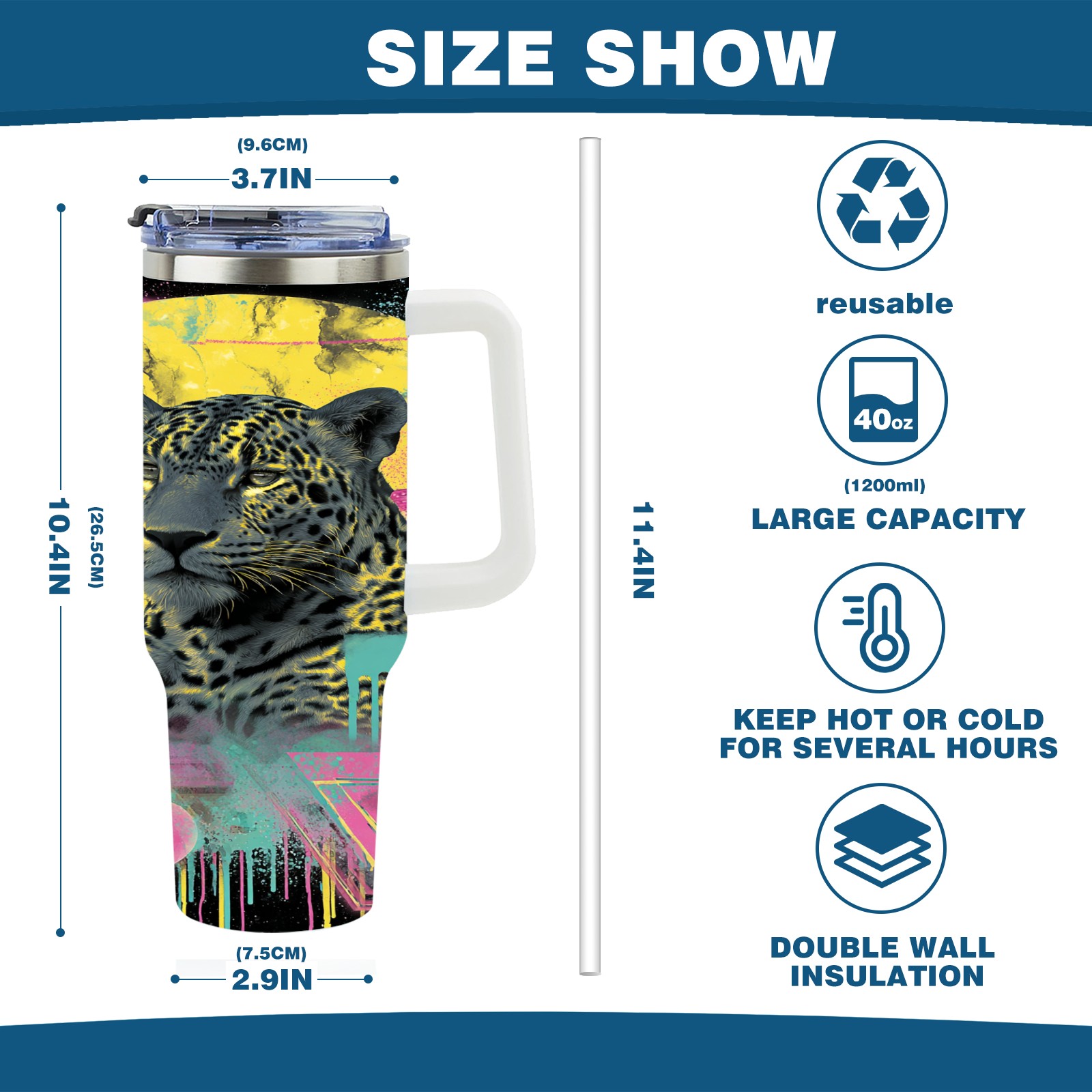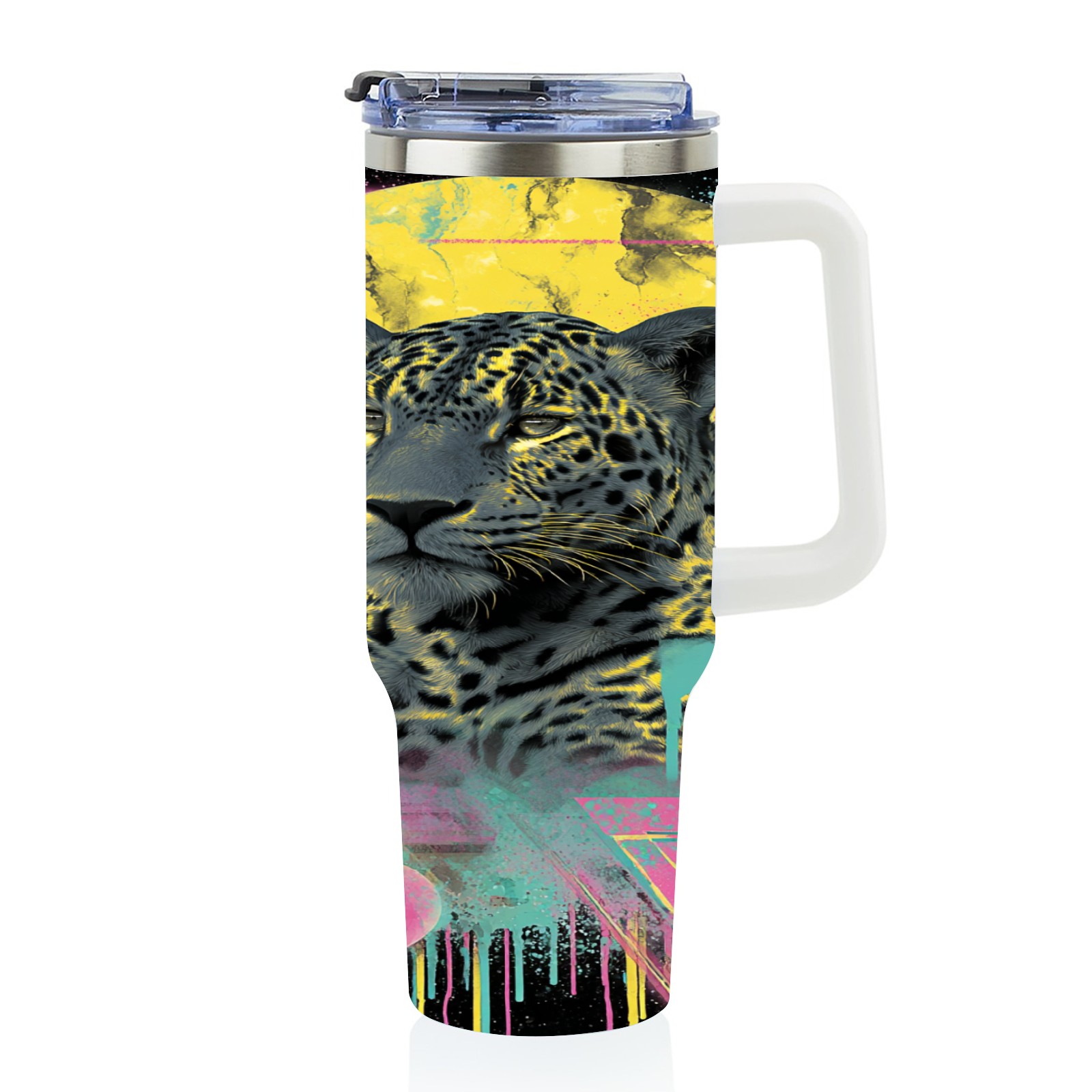 40 унций полностью напечатанный автомобильный стакан Mysterious Leopard Black