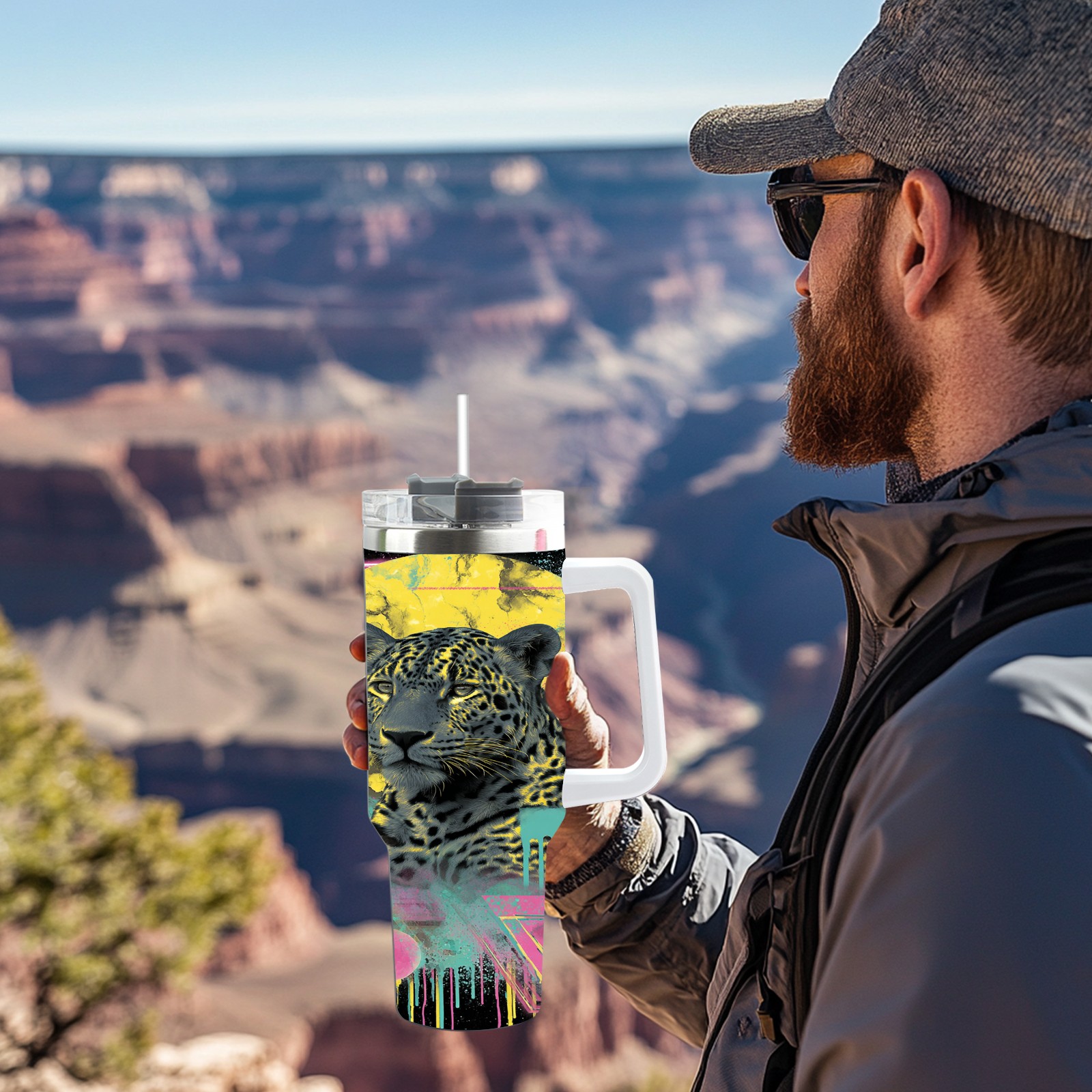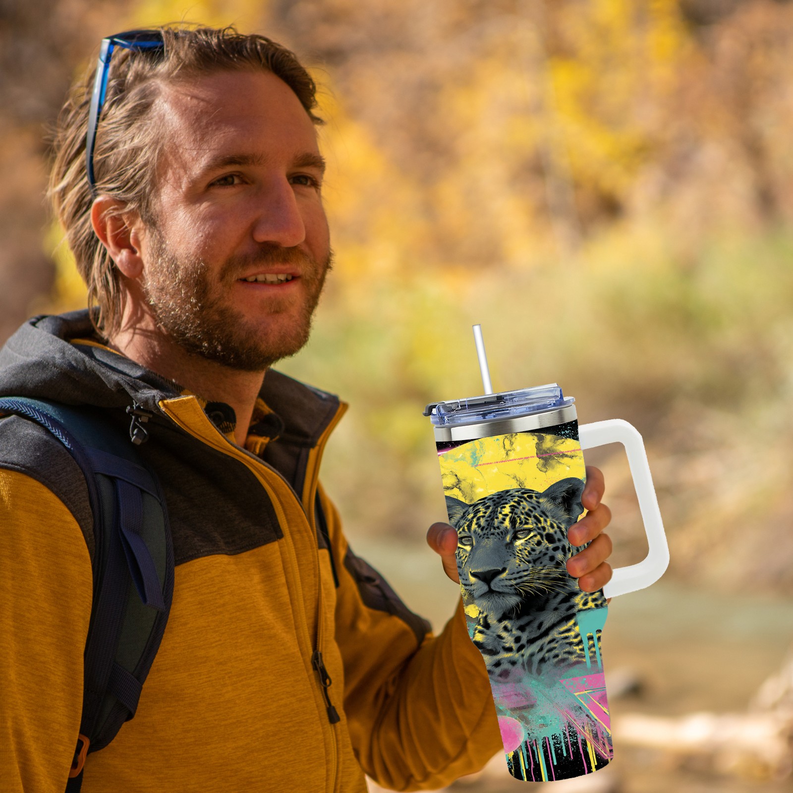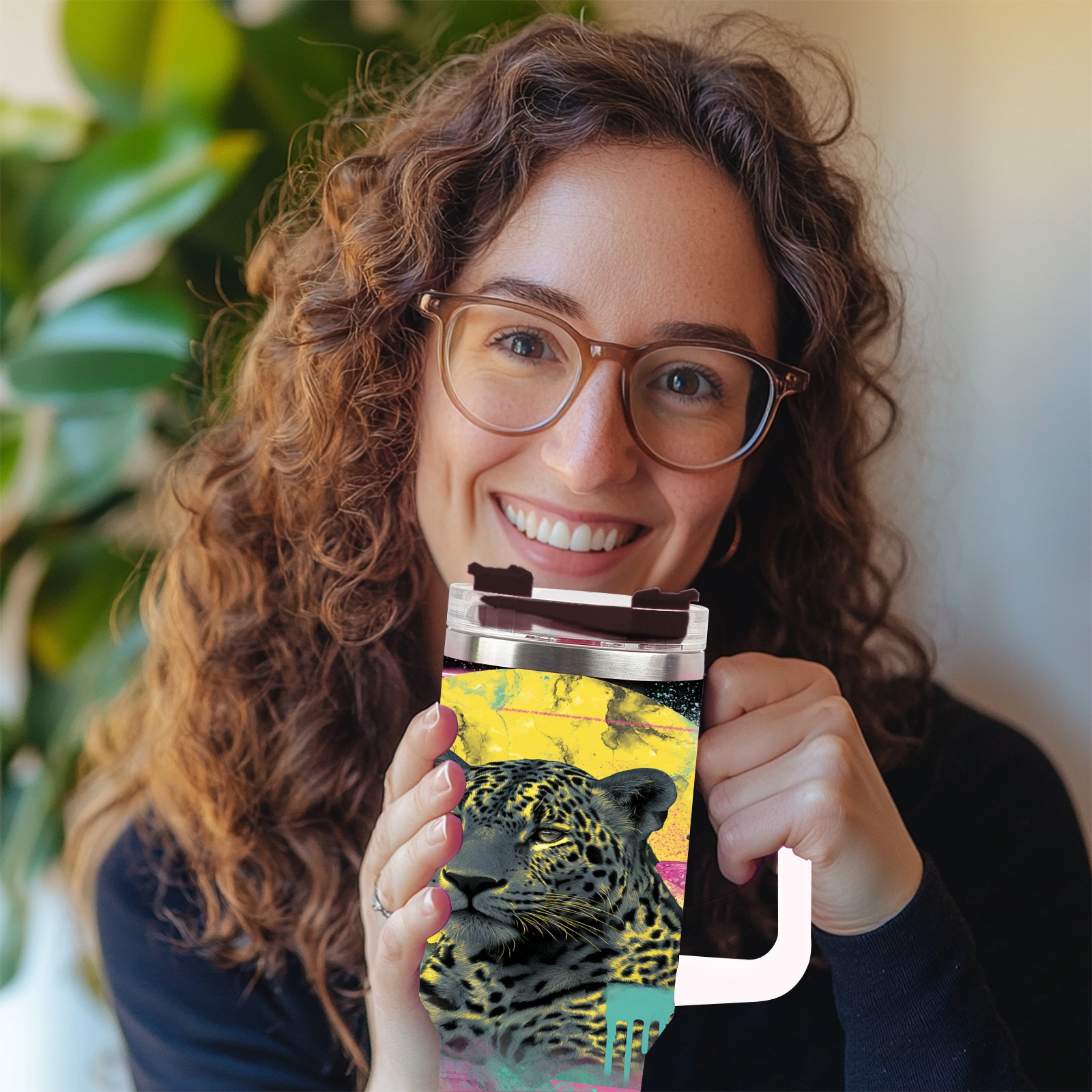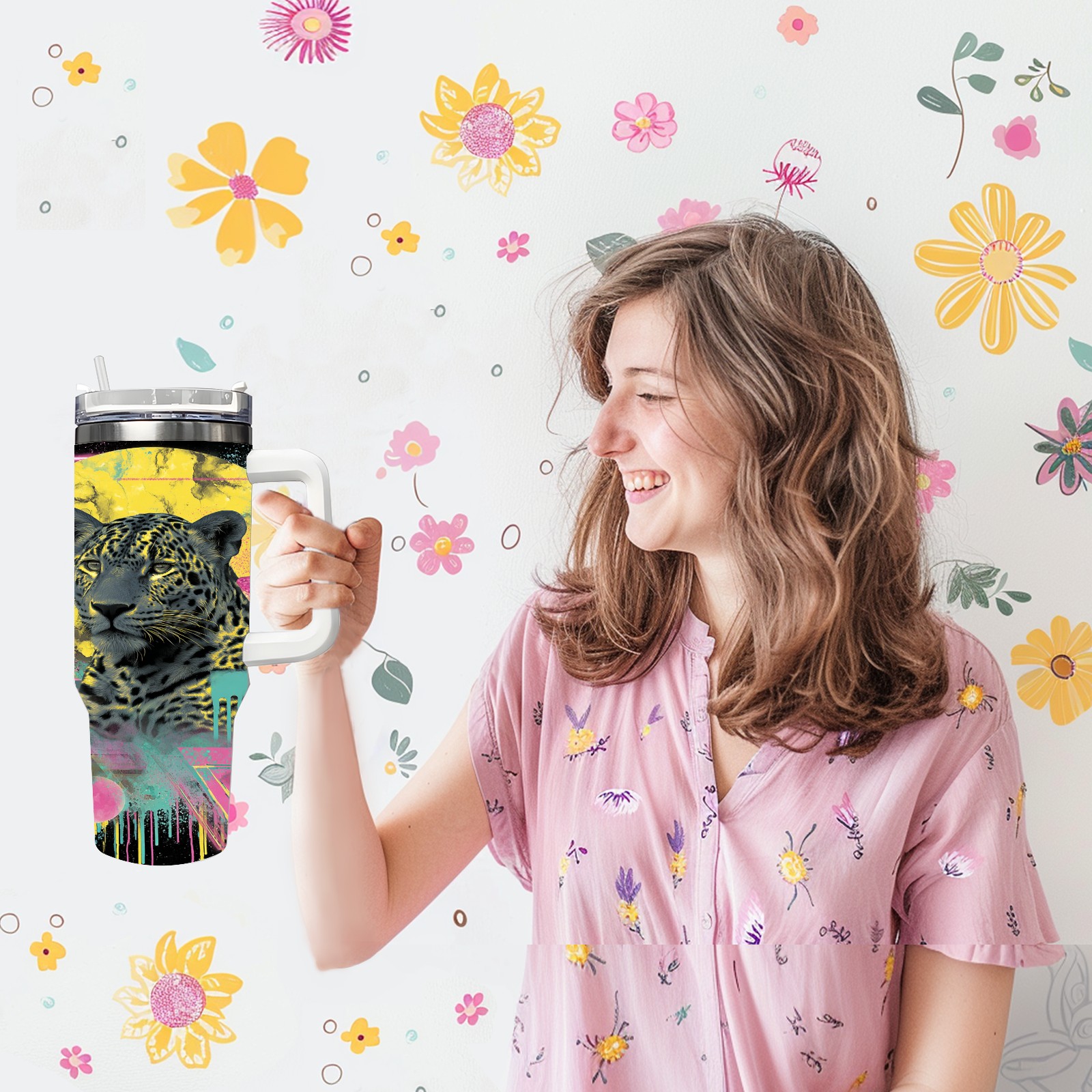 40 унций полностью напечатанный автомобильный стакан Mysterious Leopard Black