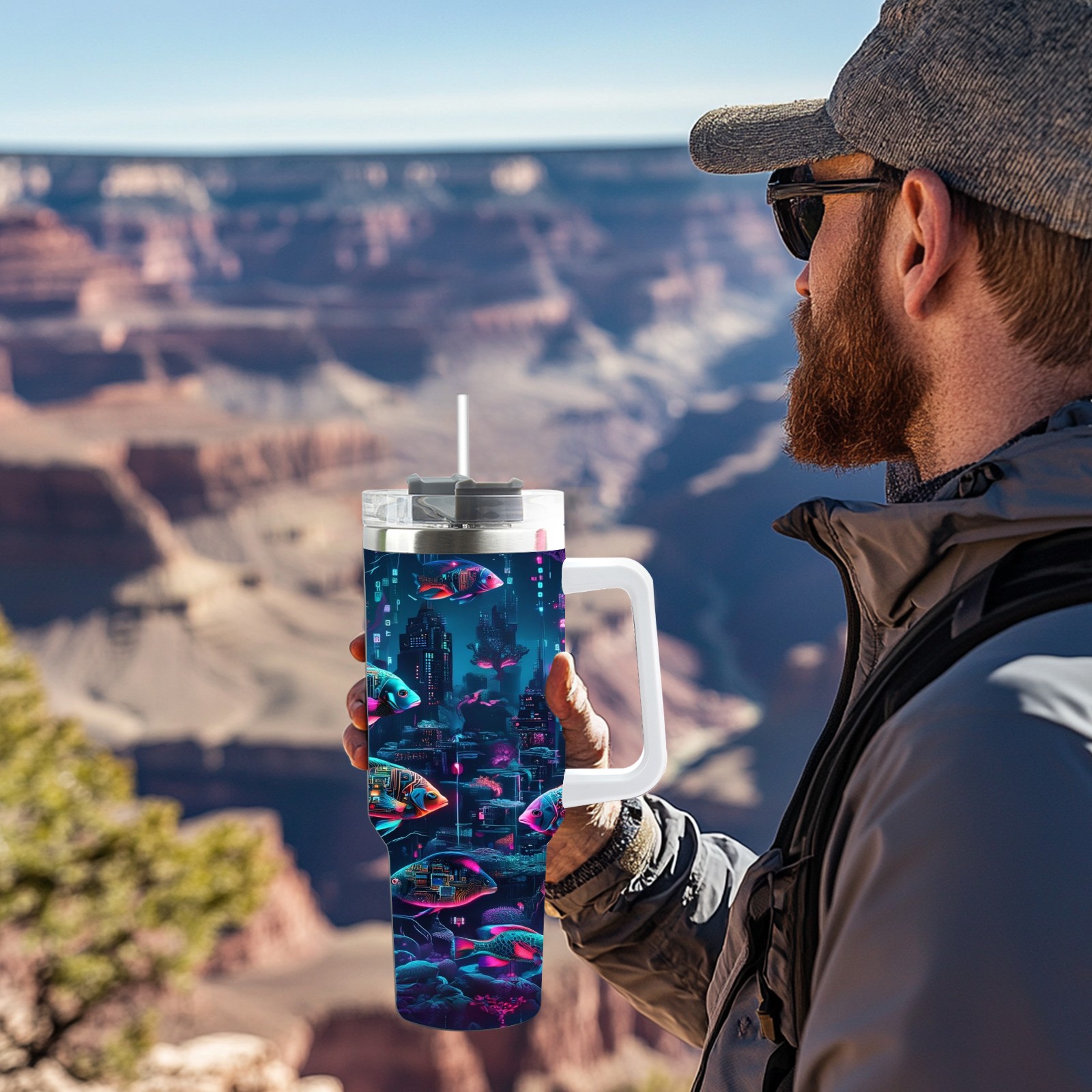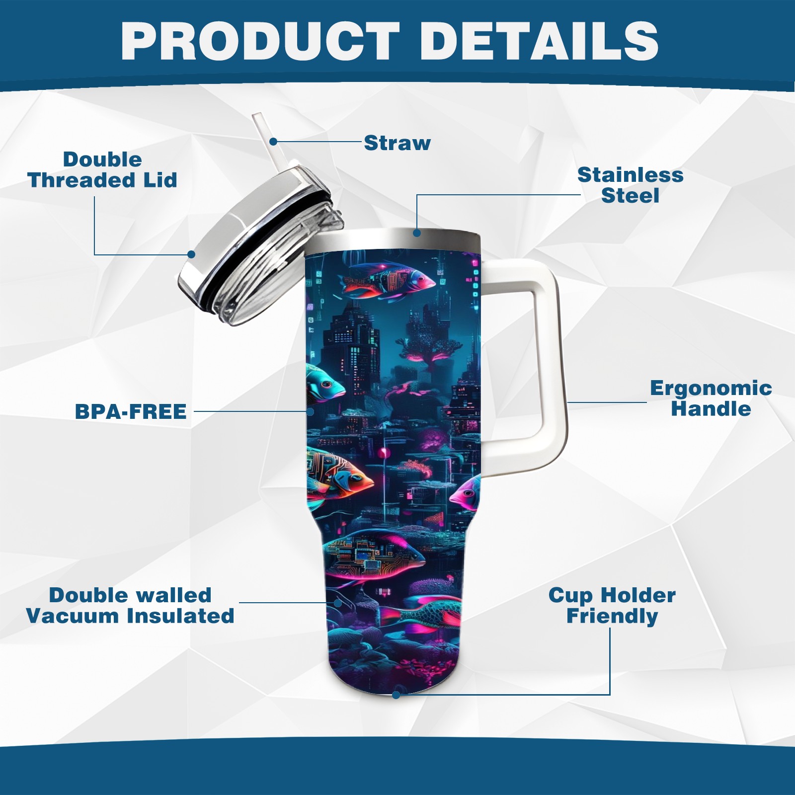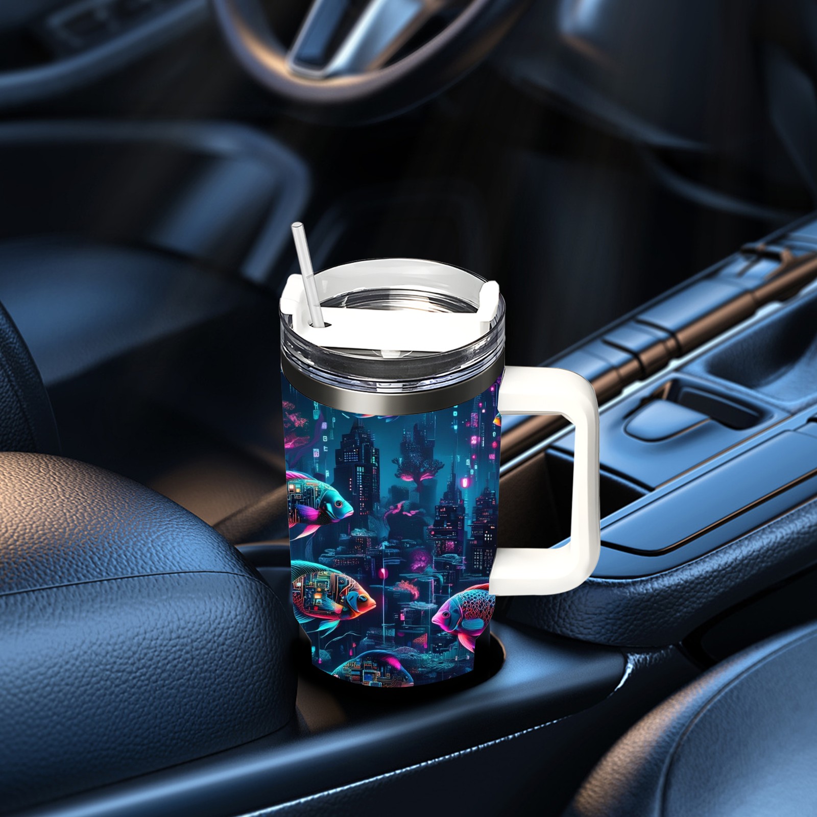 40 унций полностью напечатанный автомобильный стакан Mysterious Fish Purple