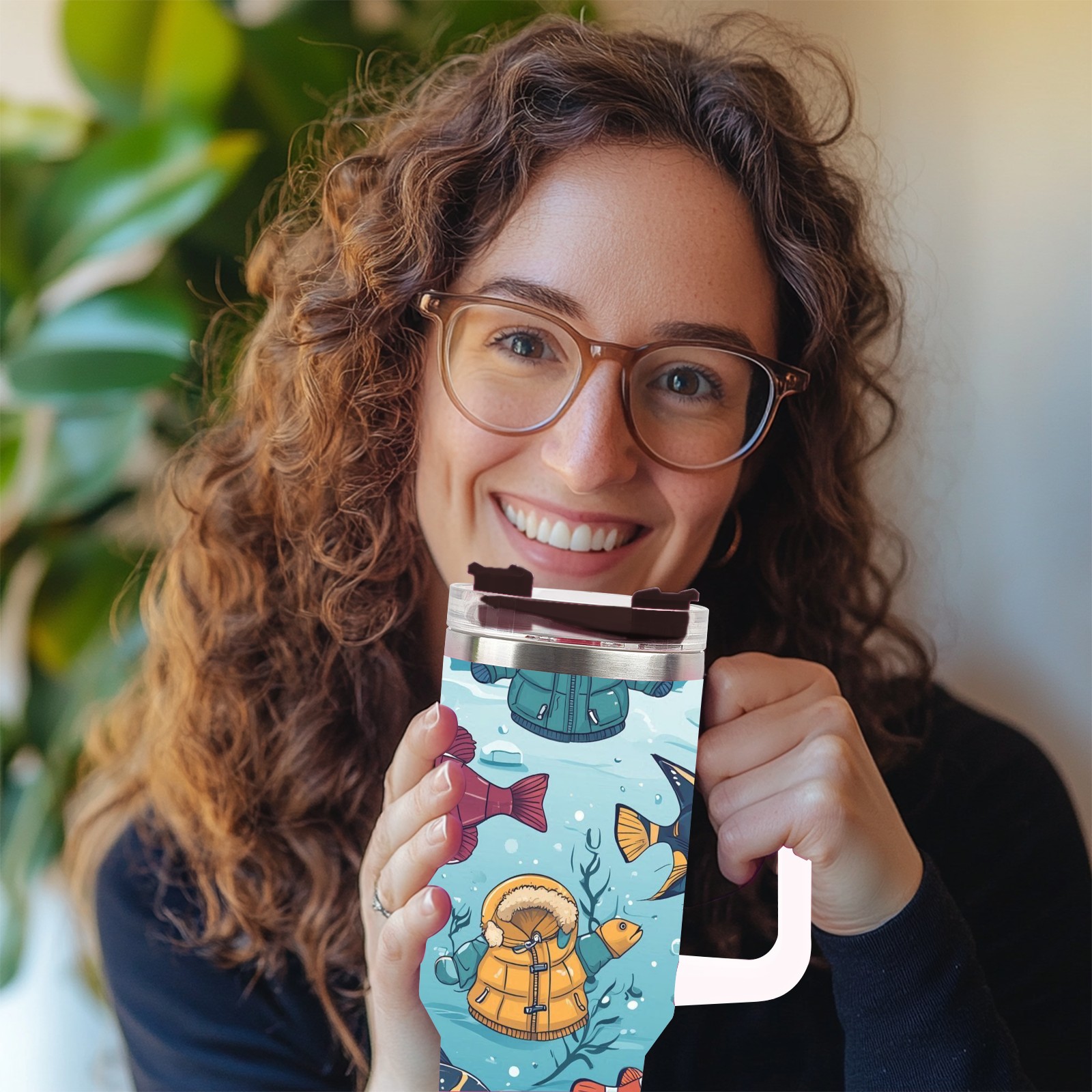 40 унций полностью напечатанный автомобильный стакан Warm Marine Light Blue