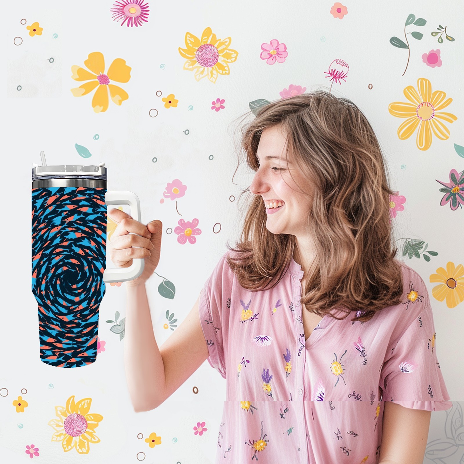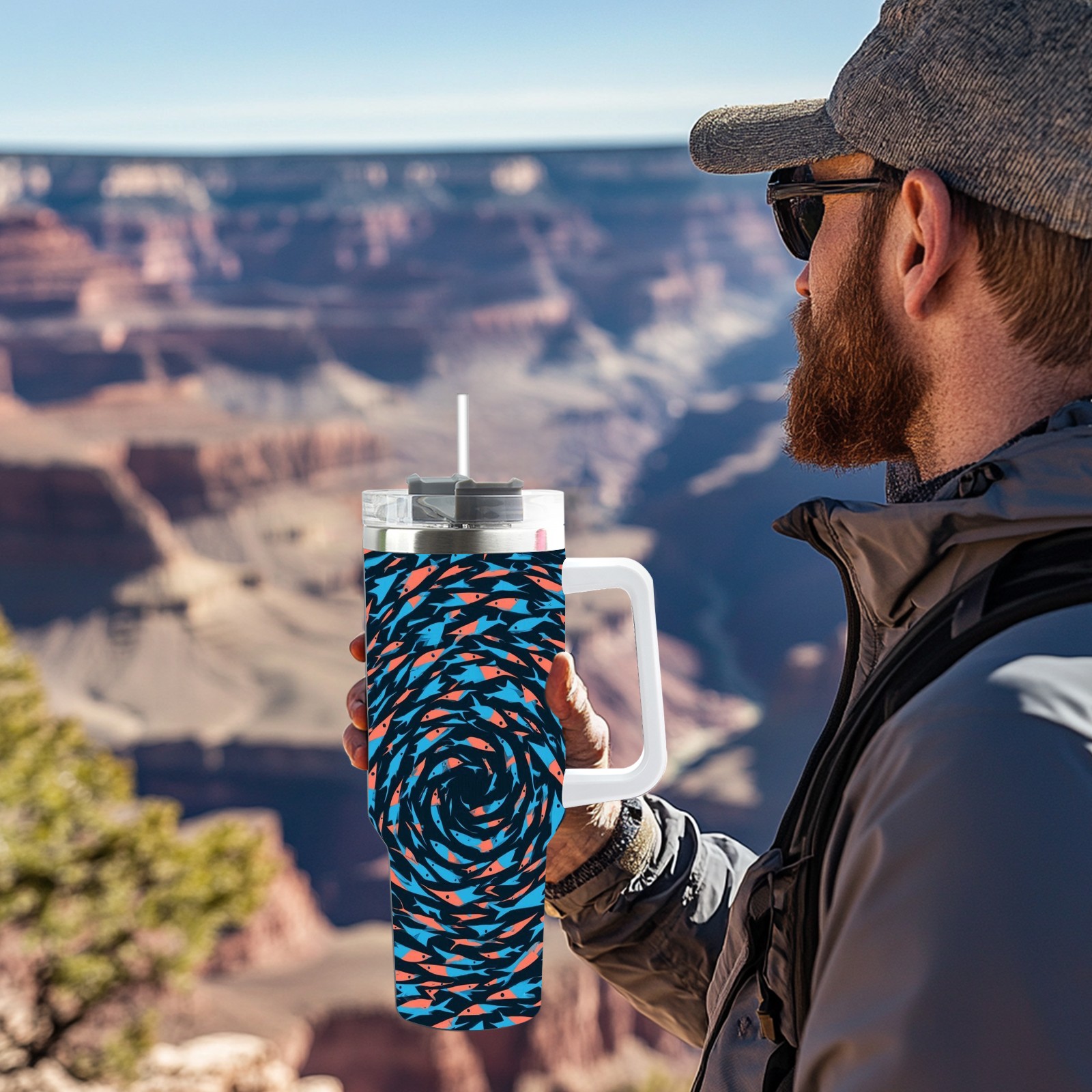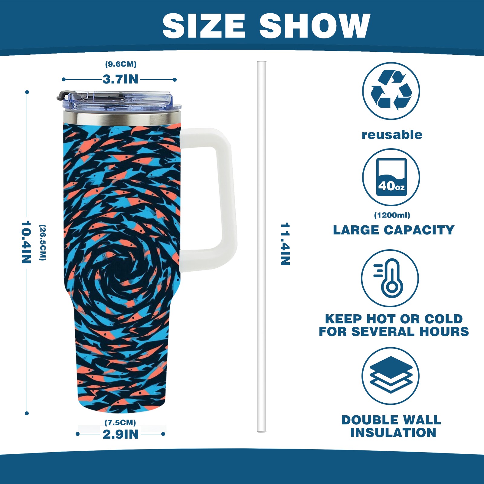 40 унций полностью напечатанный автомобильный стакан Dynamic Spiral Blue