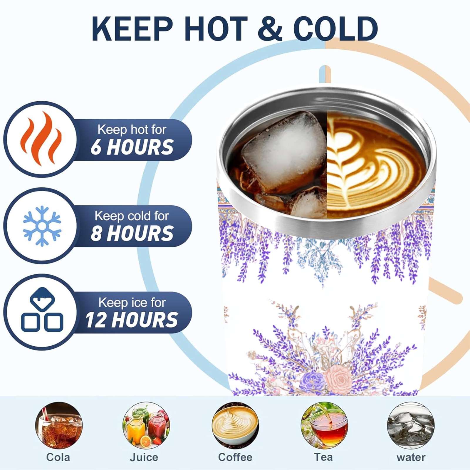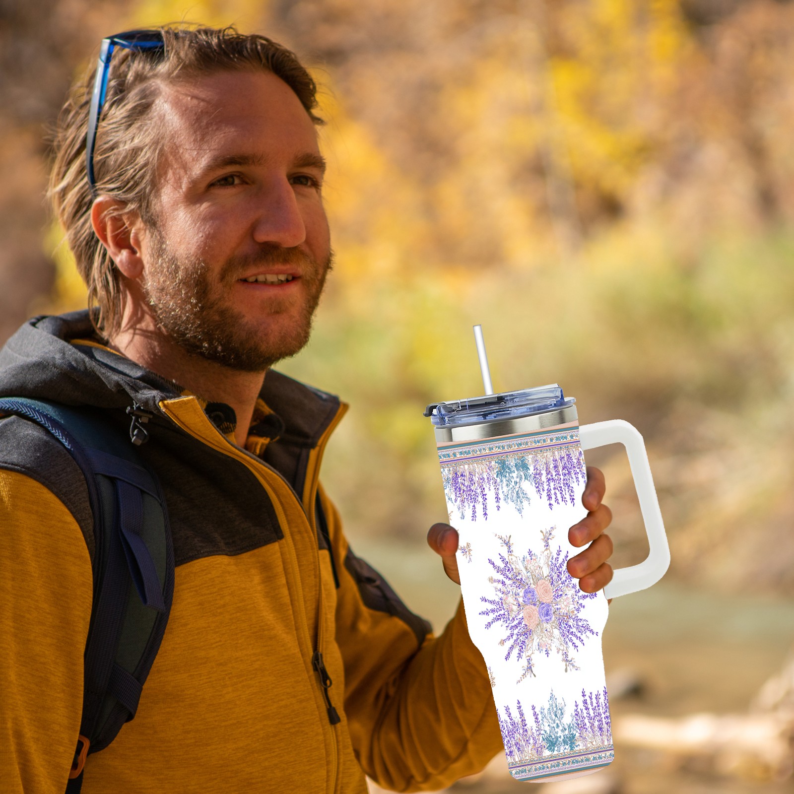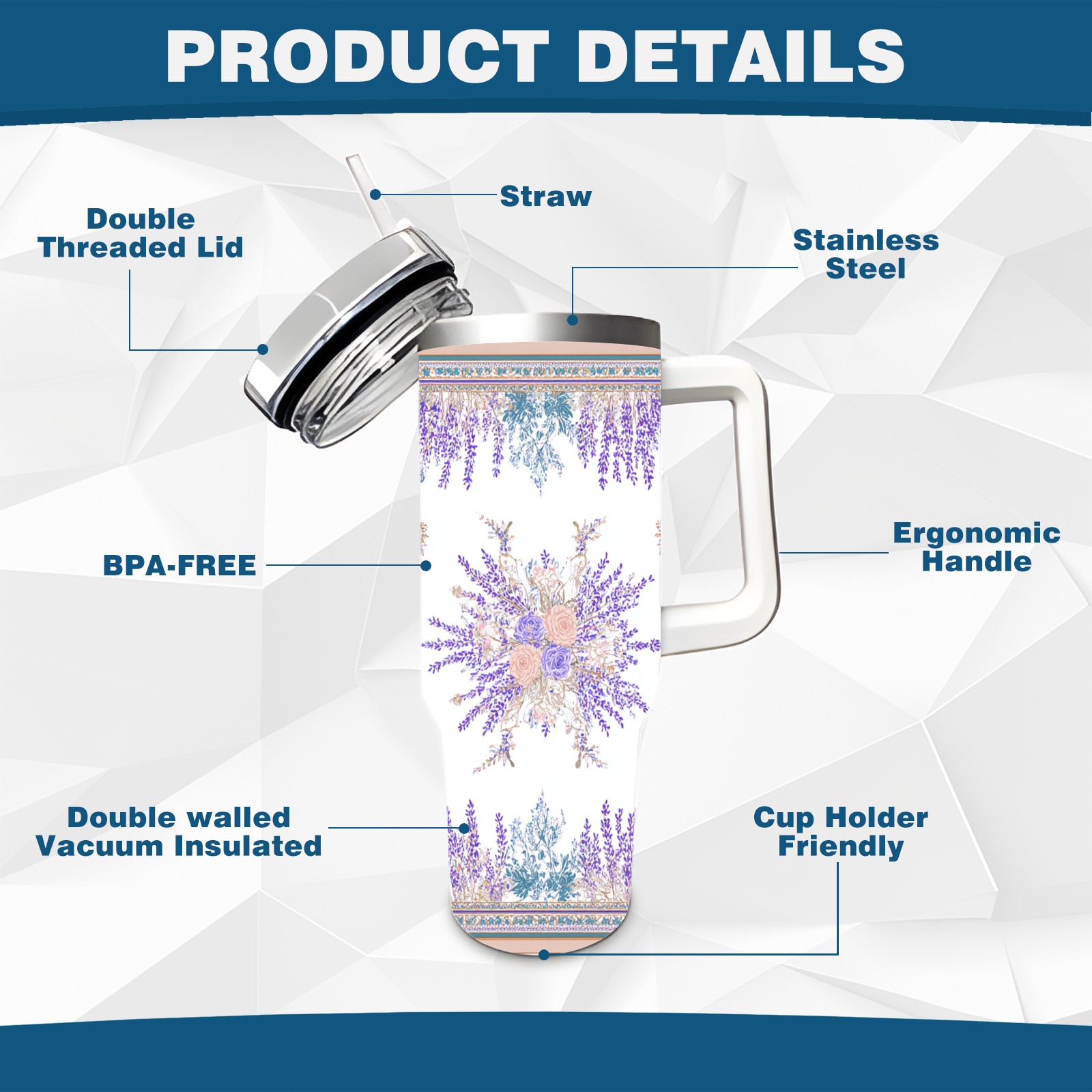 40 унций полностью напечатанный автомобильный стакан Elegant Lavender Purple