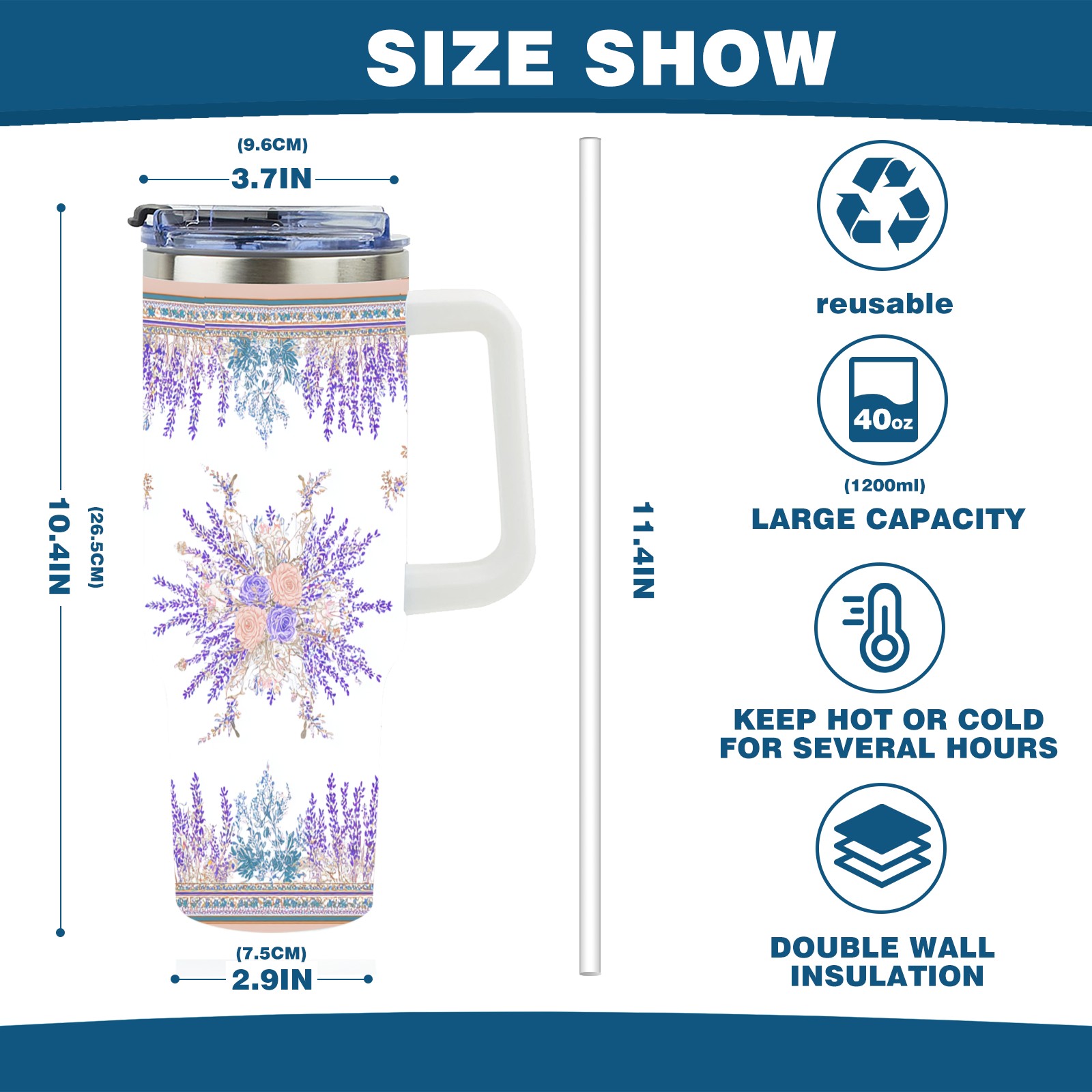 • С большой емкостью 40 унций, он обеспечивает вас гидратацией в течение всего дня, идеально подходит для воды, кофе, сока или других напитков. Эргономичный дизайн идеально вписывается в автомобильные держатели для бутылок, а прочный, герметичный колпачок предотвращает утечки во время передвижения. Путешествие. Антискользящее основание обеспечивает устойчивость, а гладкие поверхности делают уборку легкой — просто мойте вручную или кладите в посудомоечную машину (рекомендуется верхний поддон).