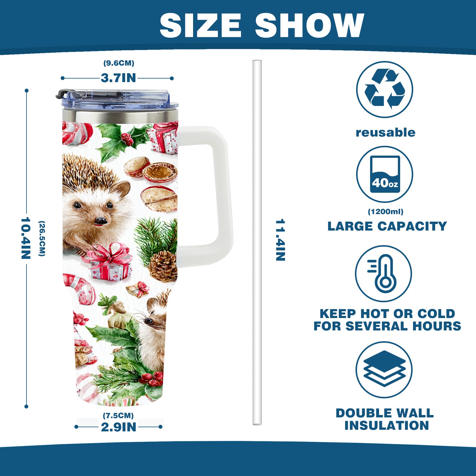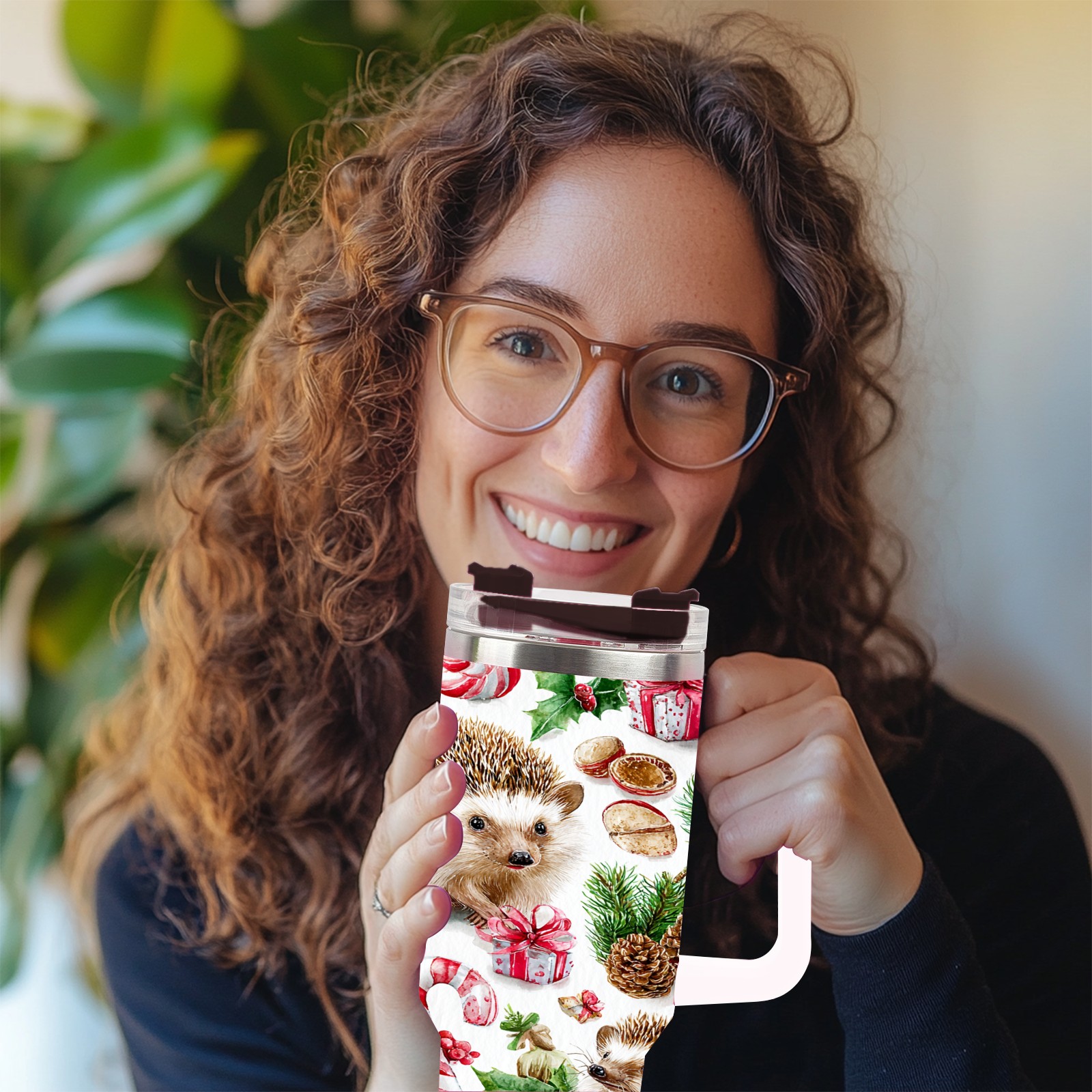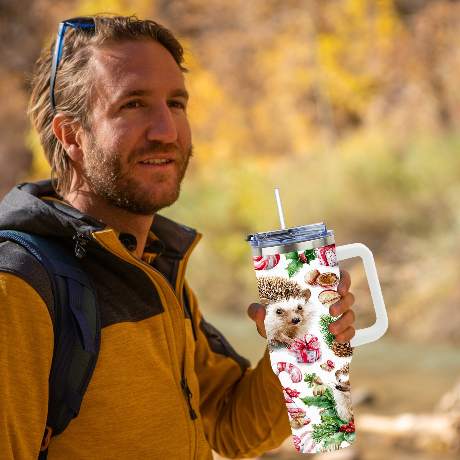 40 унций полностью напечатанный автомобильный стакан Warm Hedgehog Green